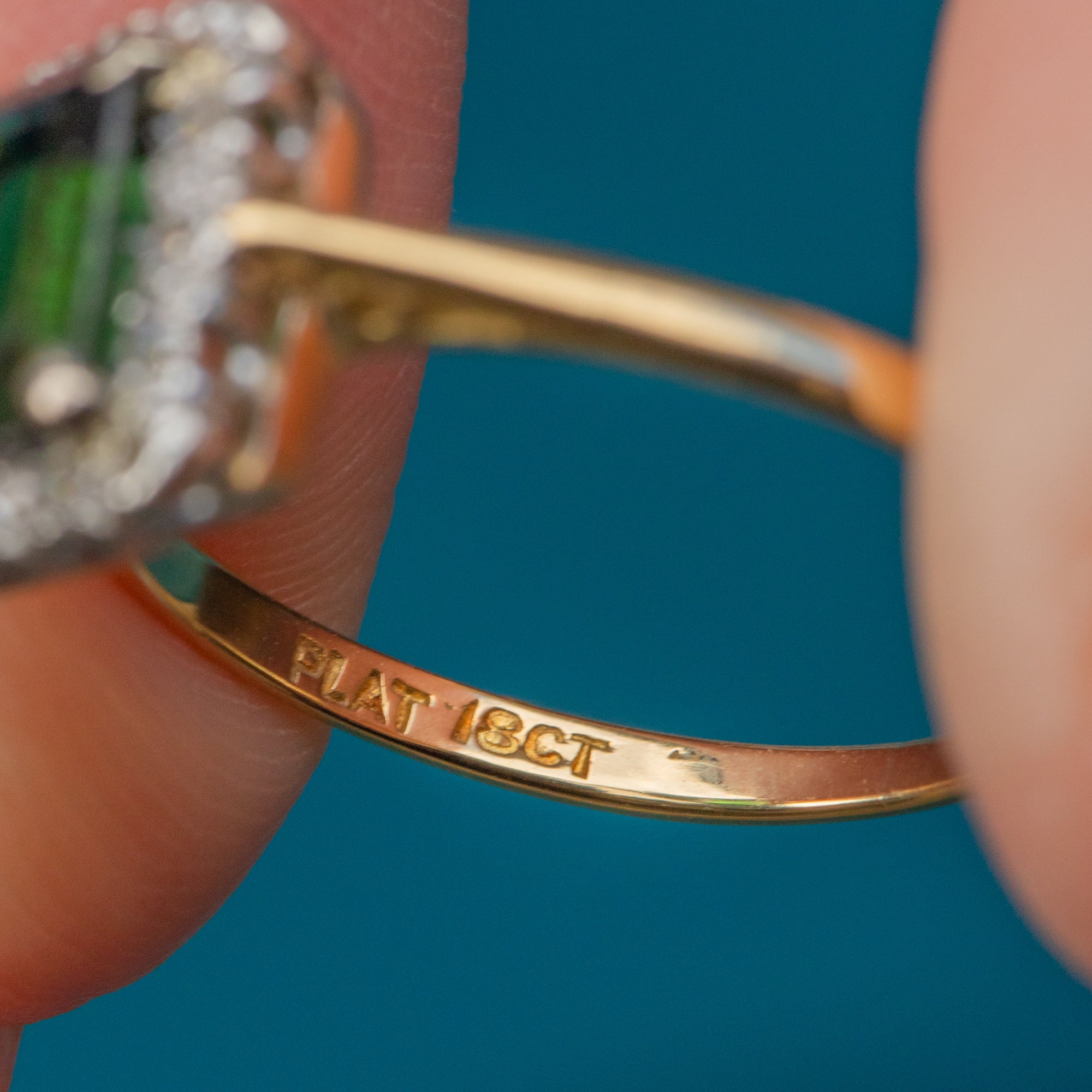 MATERIALS: Tests as 18ct Gold and Platinum, Green Tourmaline, Diamond.