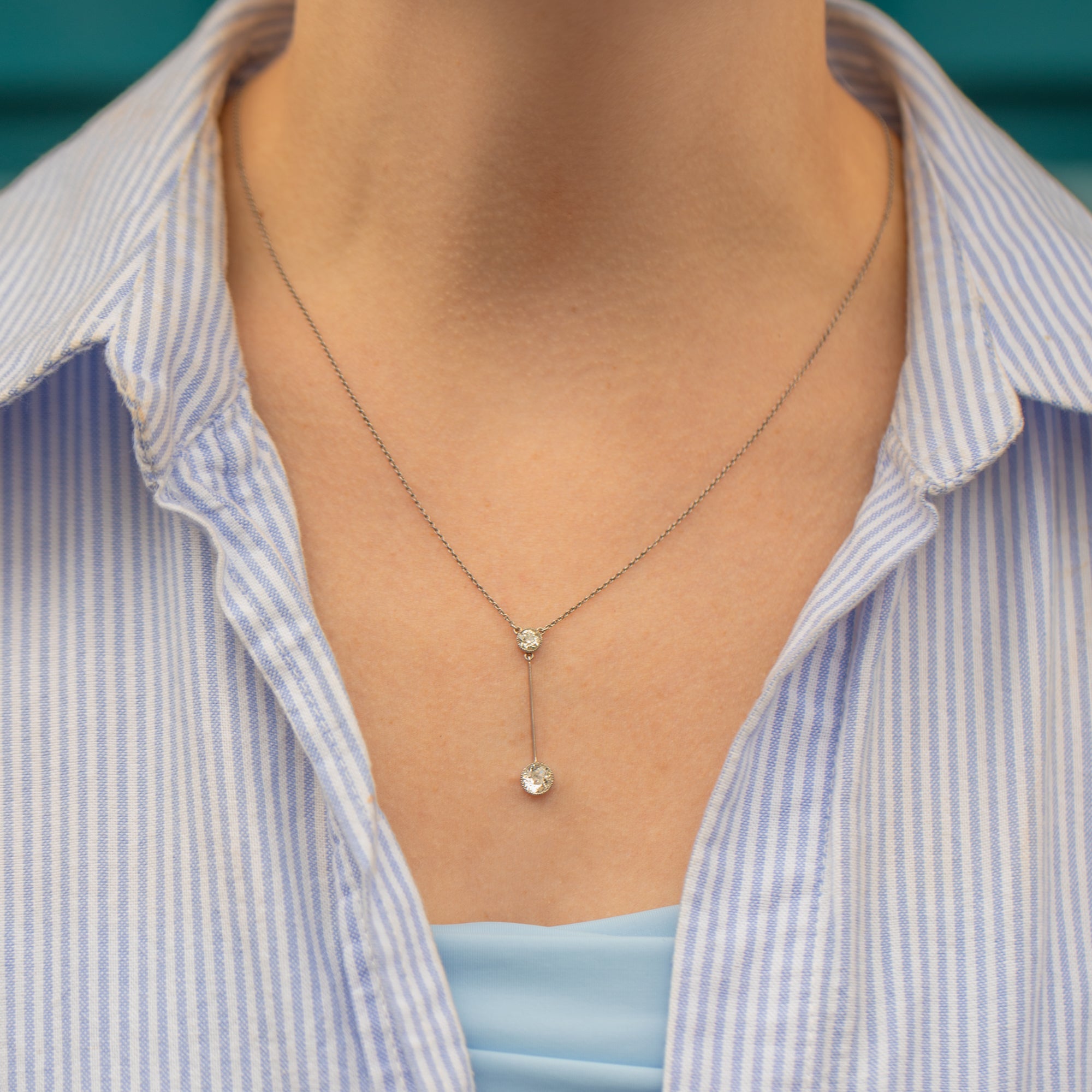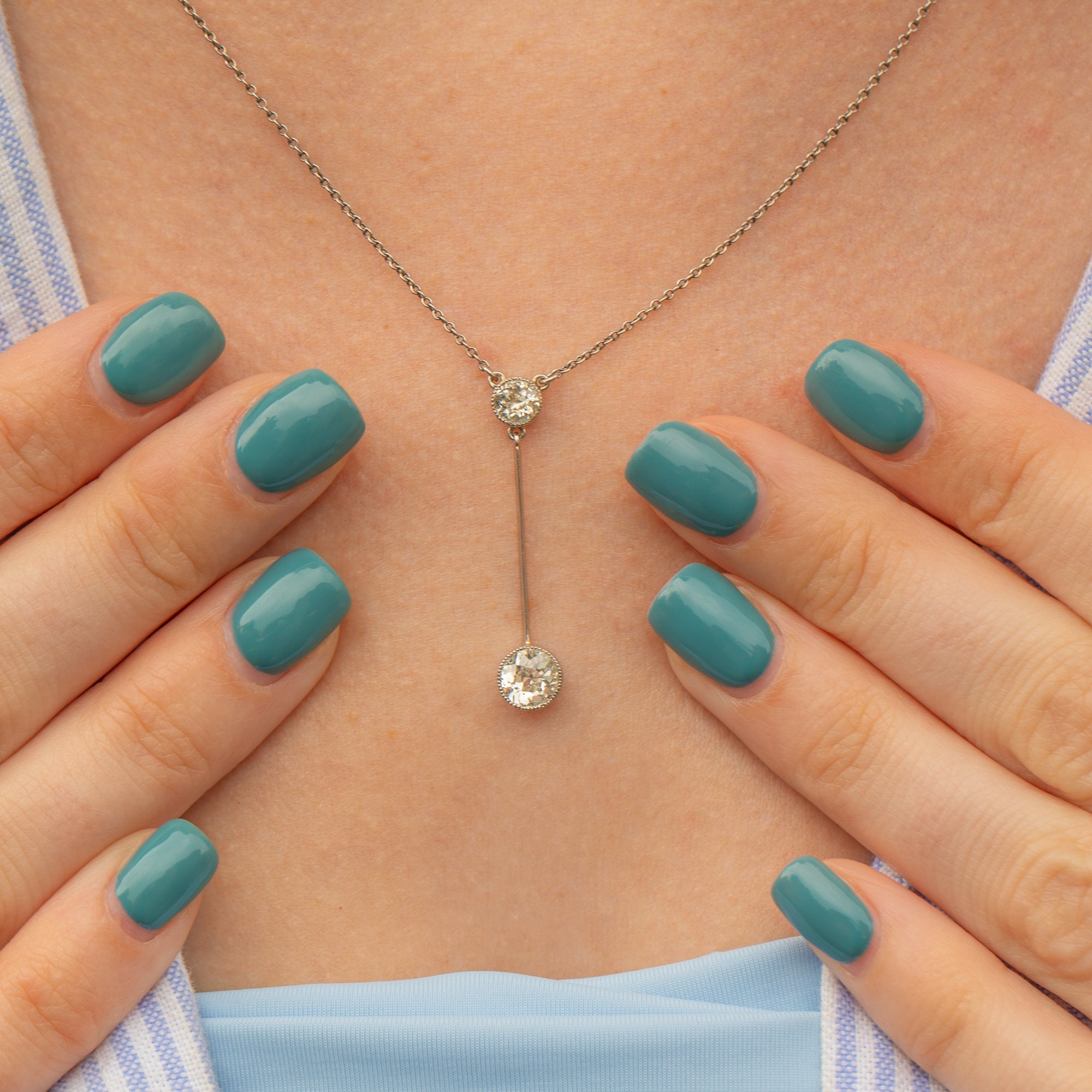 Imagine how good this Art Deco Platinum Old European-cut Diamond drop necklace will look adorning your neck! Crafted from solid Platinum, this chic and elegant Art Deco necklace encapsulates everything for which the era is so revered.