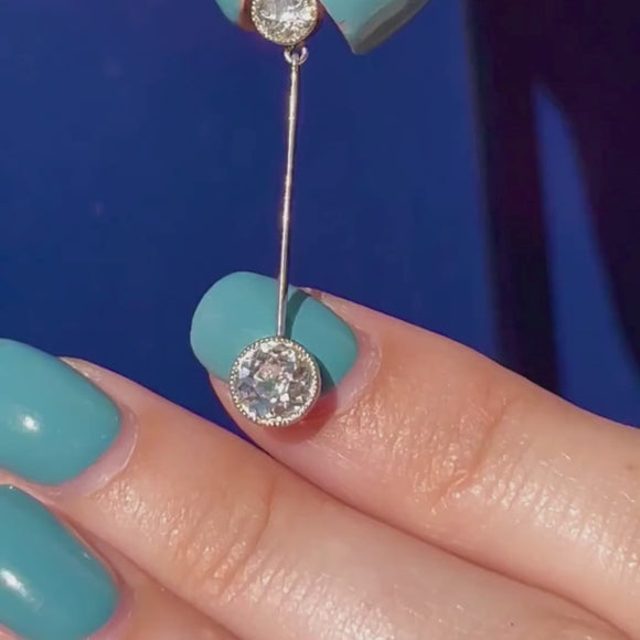 VERY GOOD-EXCELLENT. This Art Deco Platinum Old European-cut Diamond drop necklace is in fabulous condition with sparkling rare old European-cut Diamonds and tons of fire! The Diamonds are secure in their bezel settings and free from any chips or abrasions. The chain has secure links and is finished with a bolt ring, allowing you to wear it with confidence. The extension bolt-ring is a little stiff but rest assured that once shut, the necklace is secure around your neck. This gorgeous antique necklace is ready to be worn with pride for years to come!