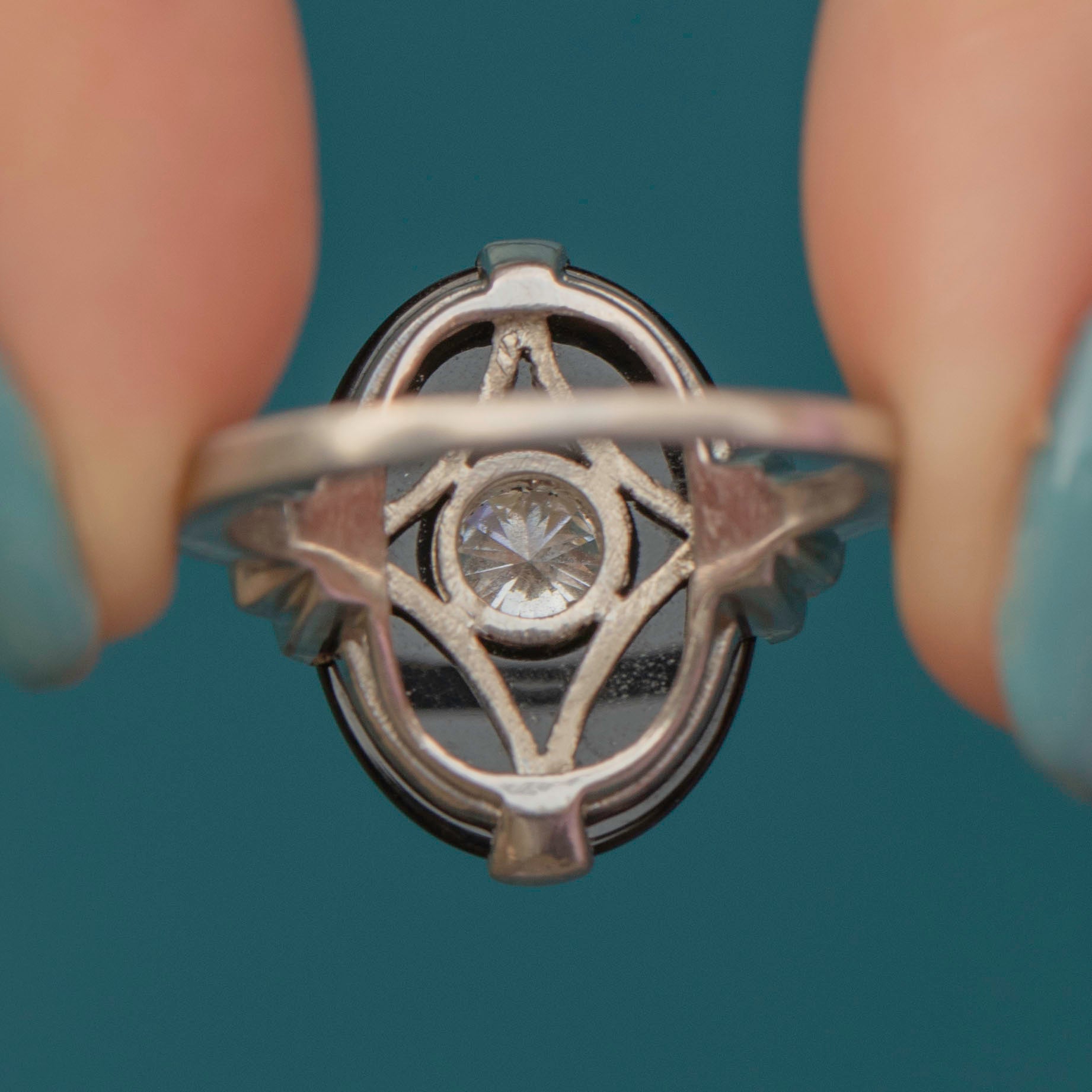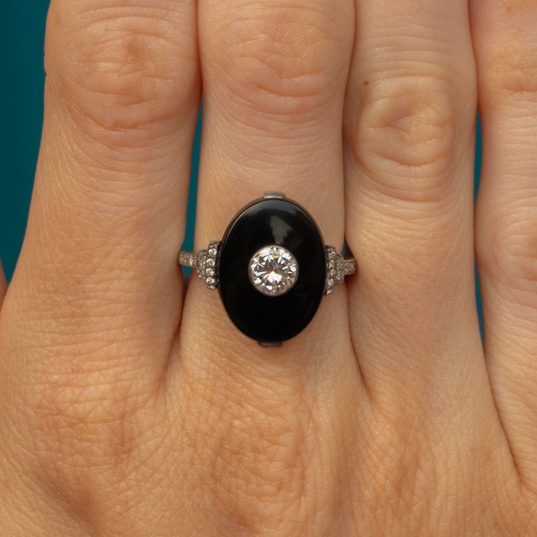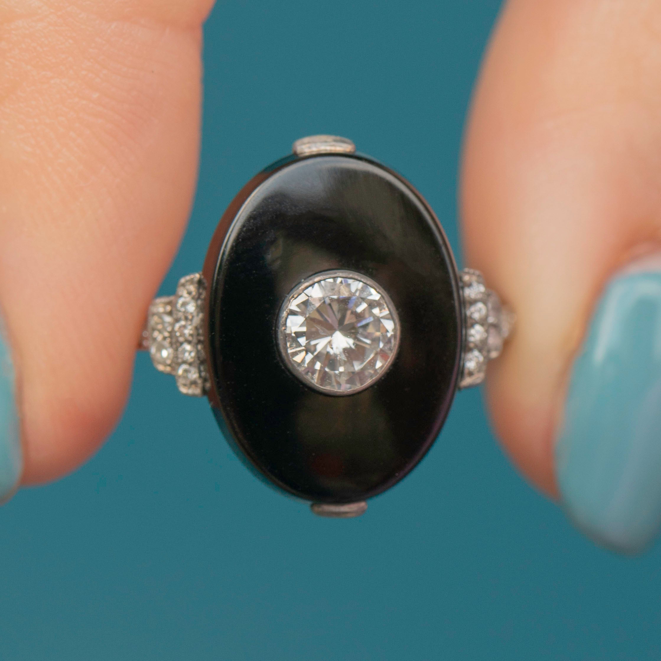 MATERIALS: Tests as Platinum, Onyx, Diamond (0.60ct).