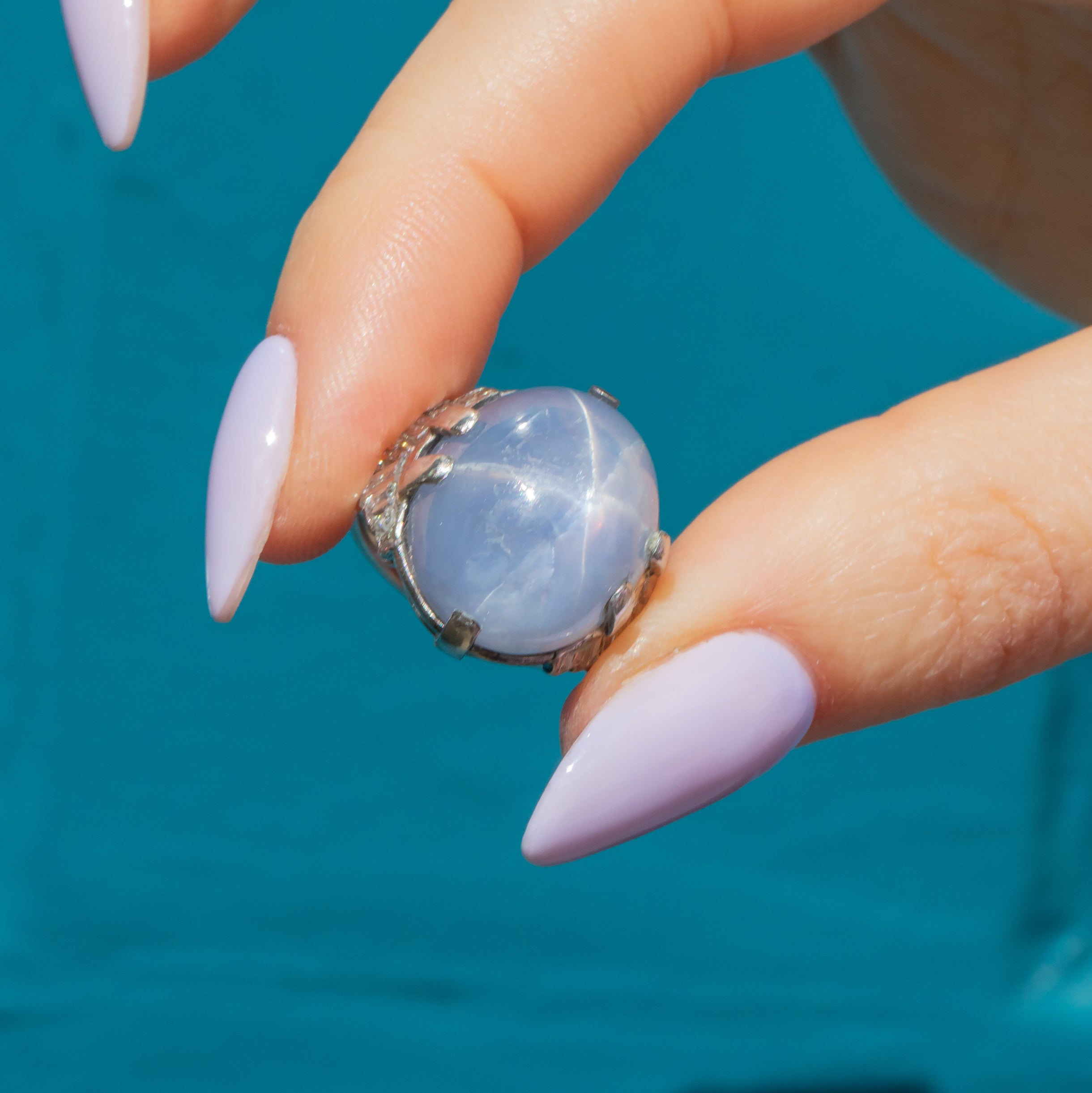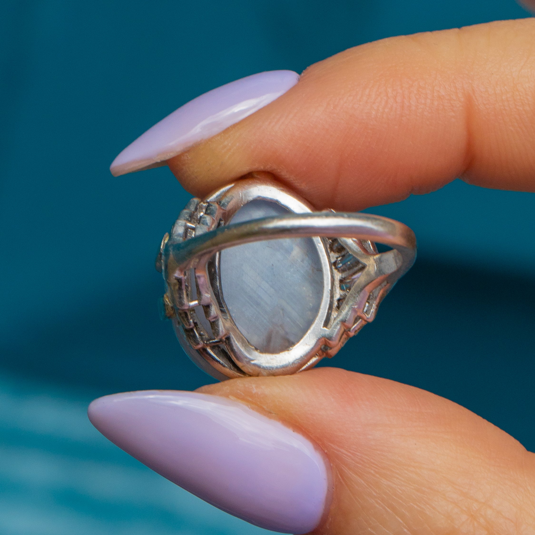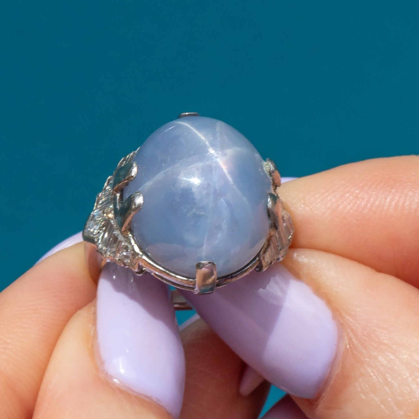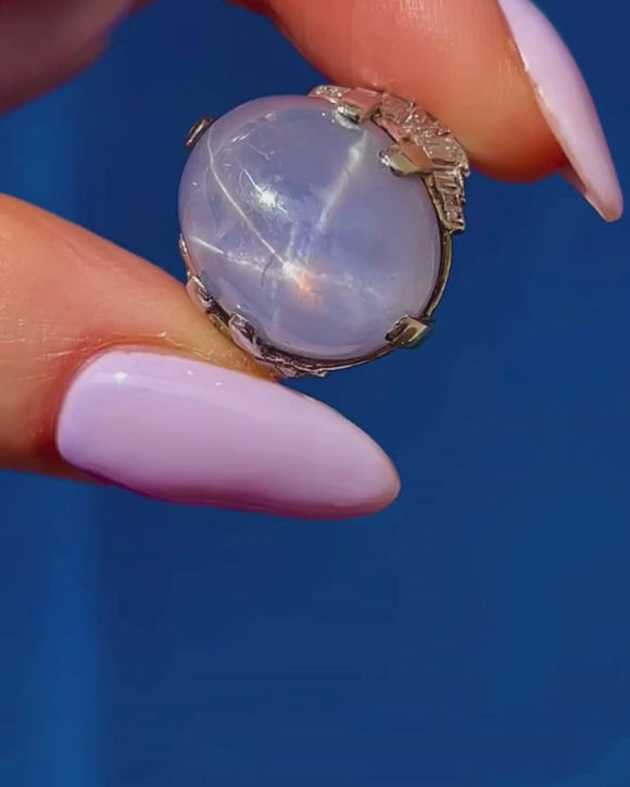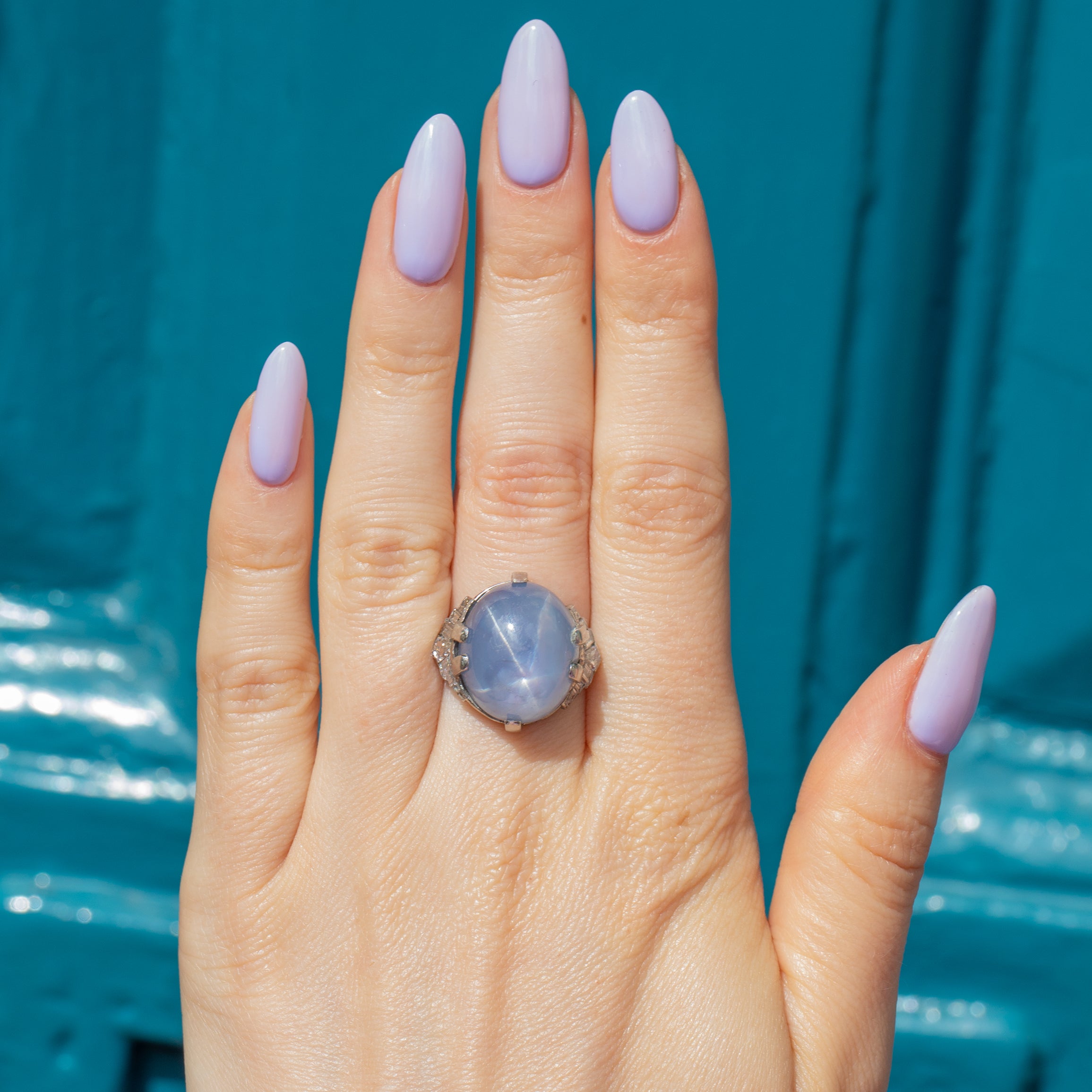 Art Deco Platinum Star Sapphire Diamond Cocktail Ring 19.95ct, Caldwell