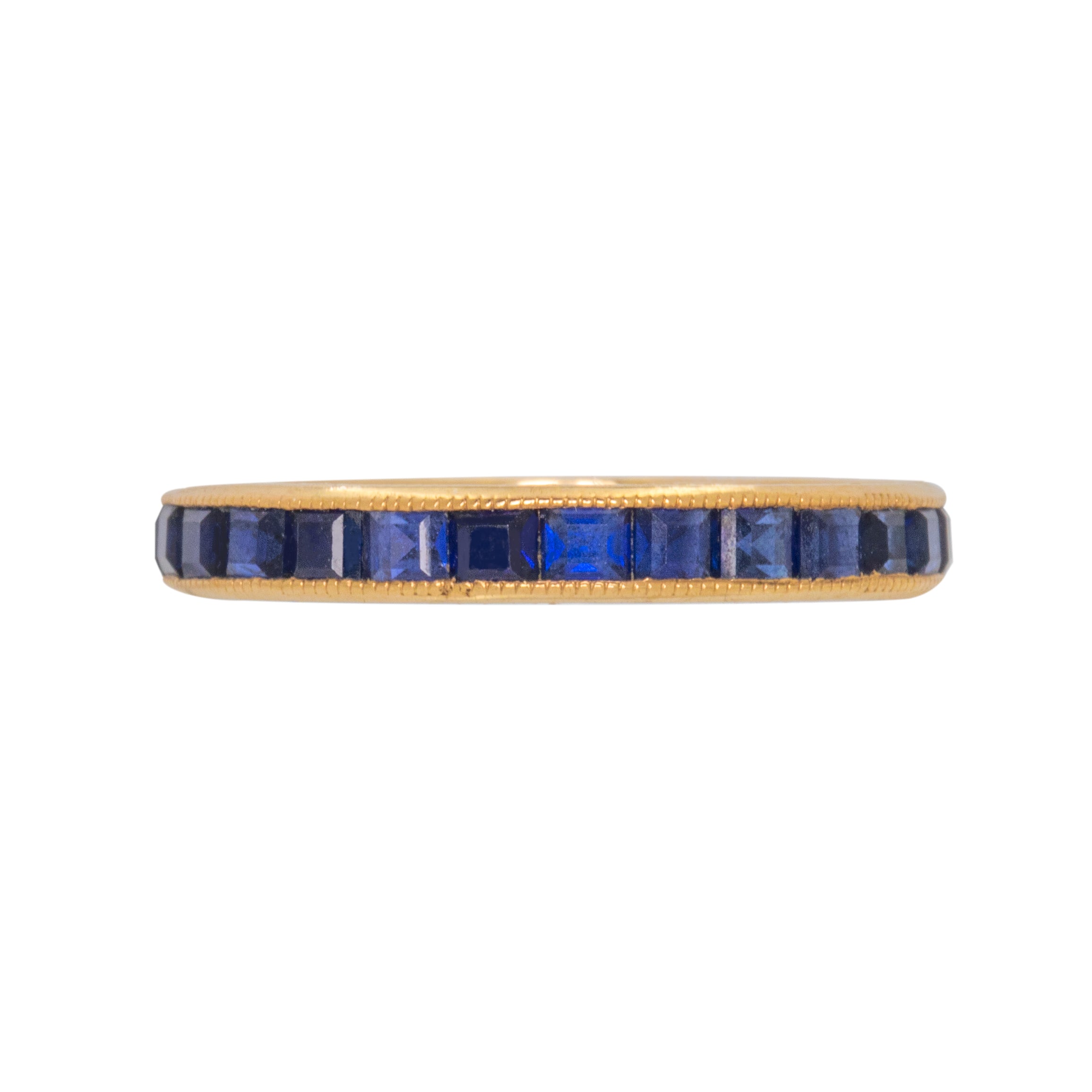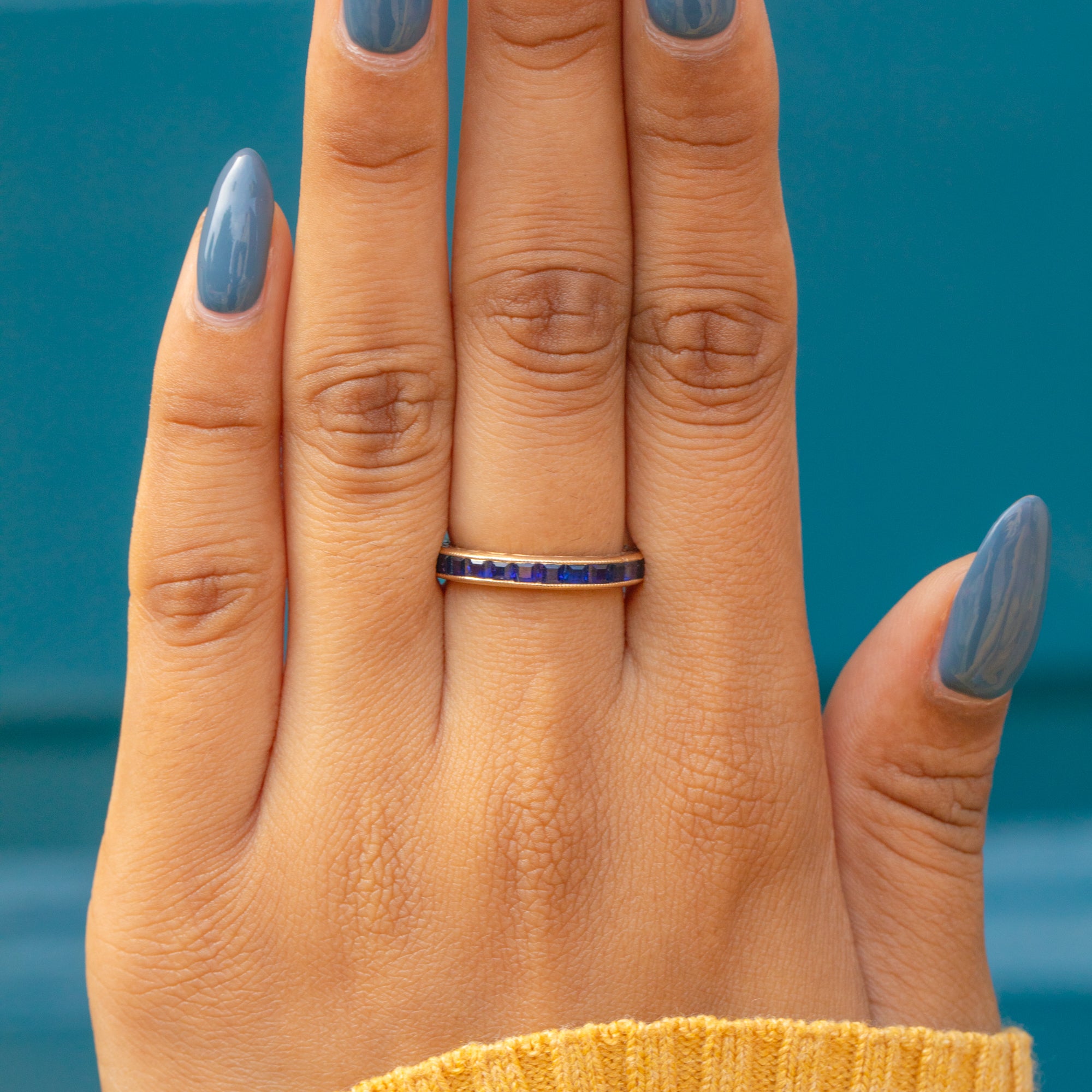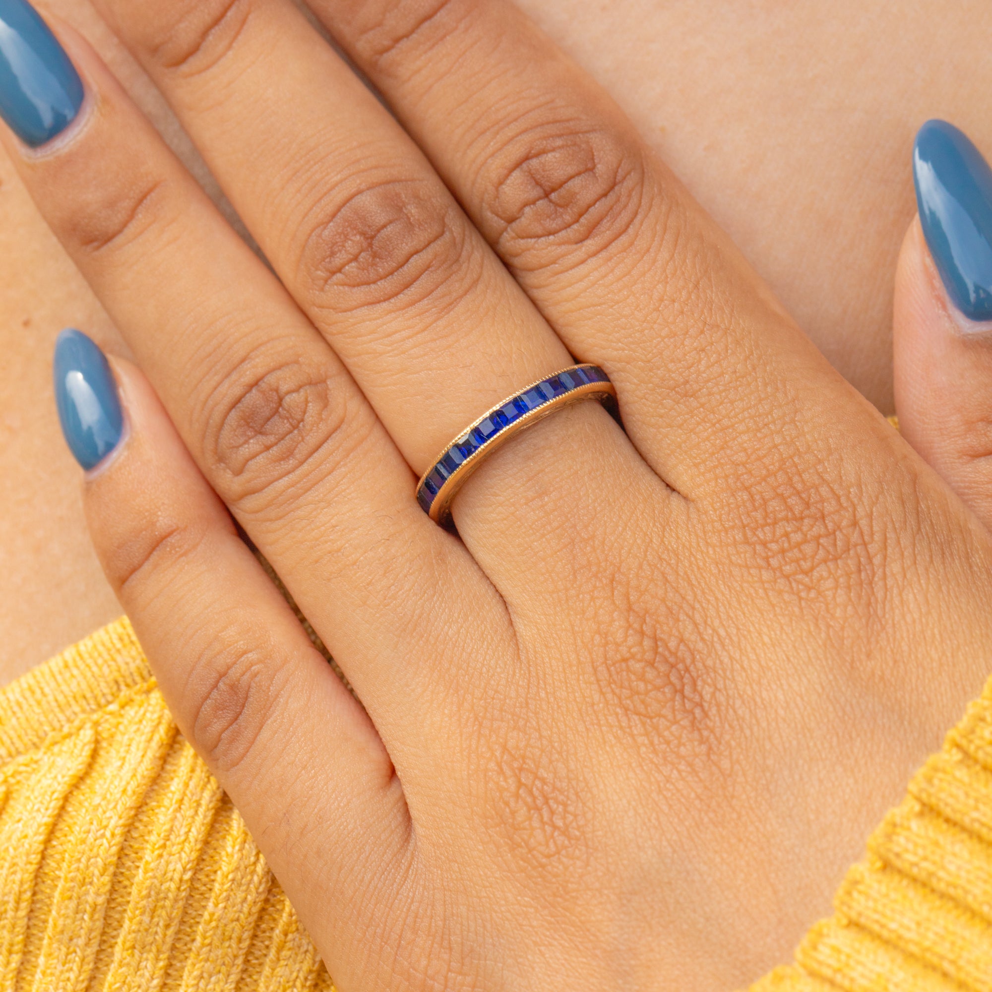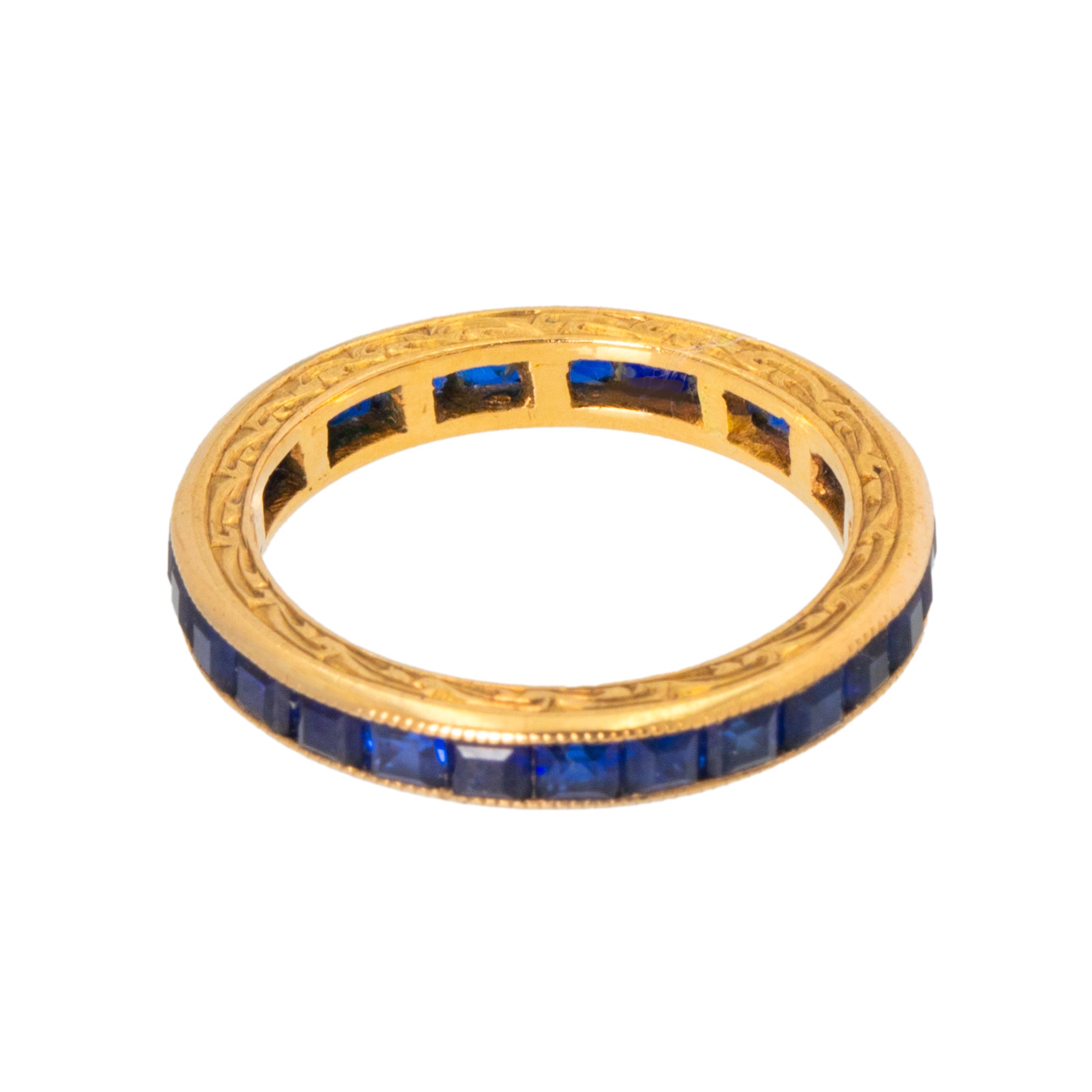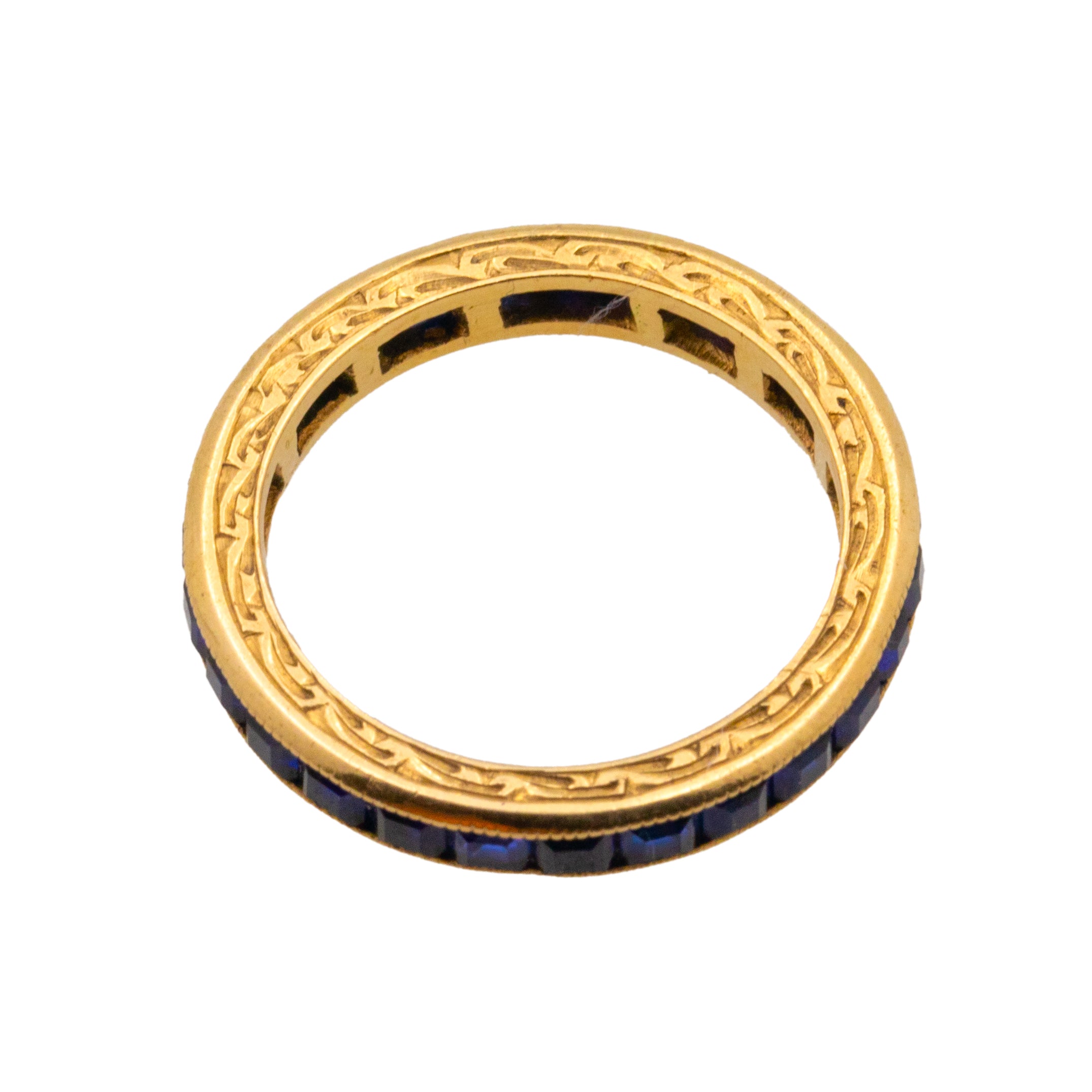 アールデコ サファイア エタニティリング、彫刻入り 9ct ゴールドバンド