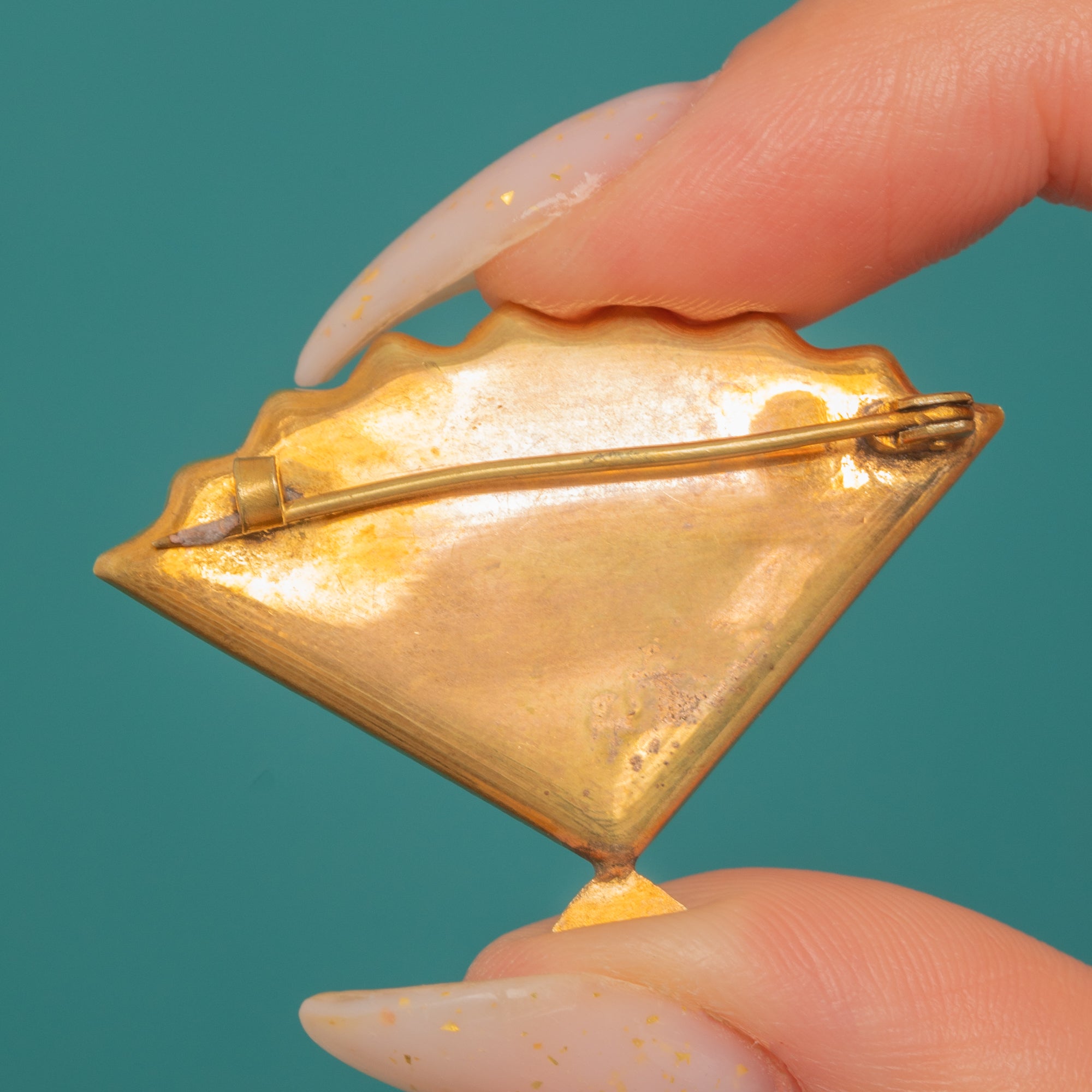 MEASUREMENTS: Brooch is 26mm long x 36mm wide.