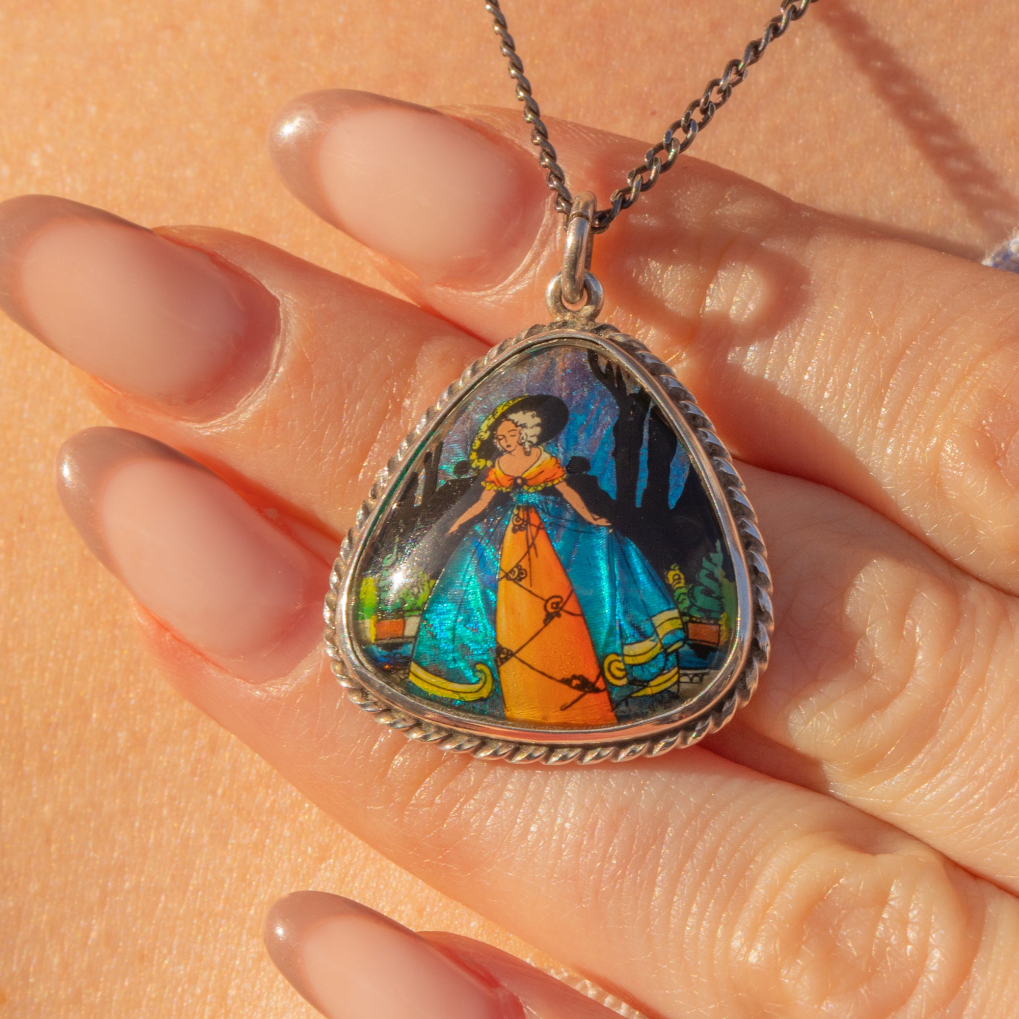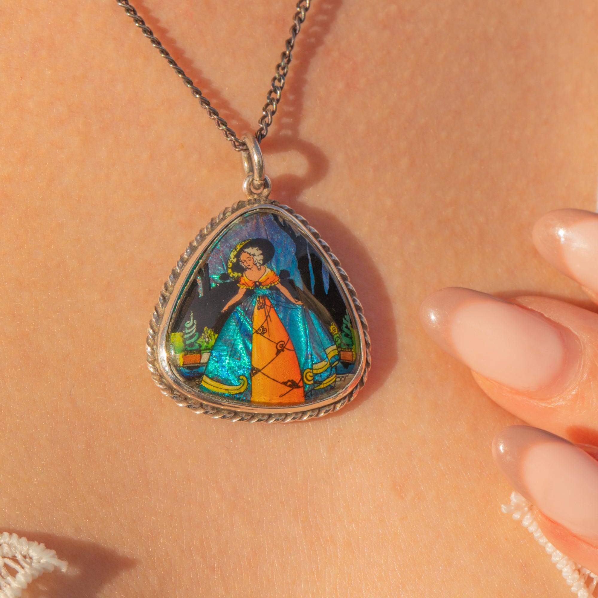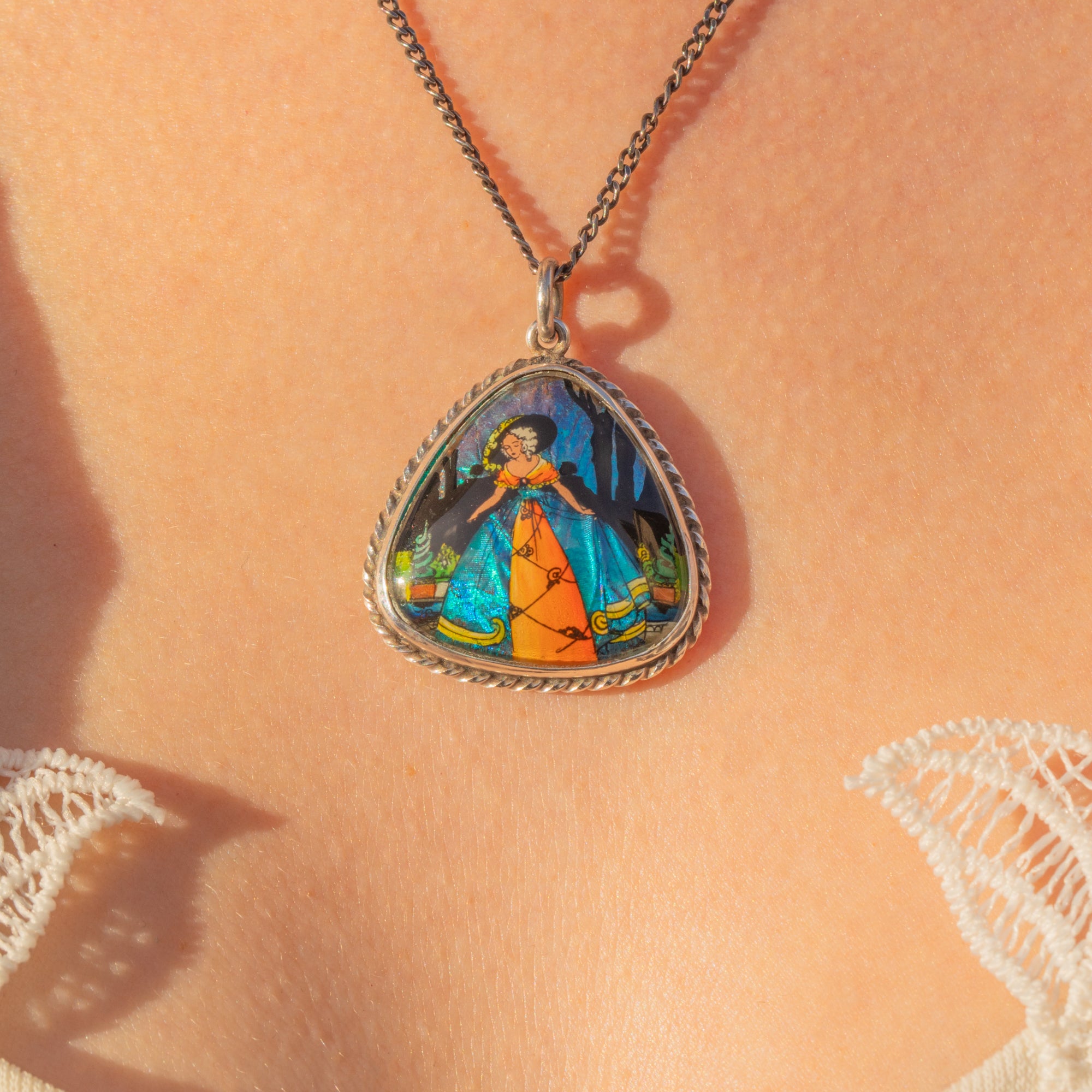 This Art Deco Silver butterfly wing crinoline lady pendant will quickly become the most charming piece in your antique jewellery collection!