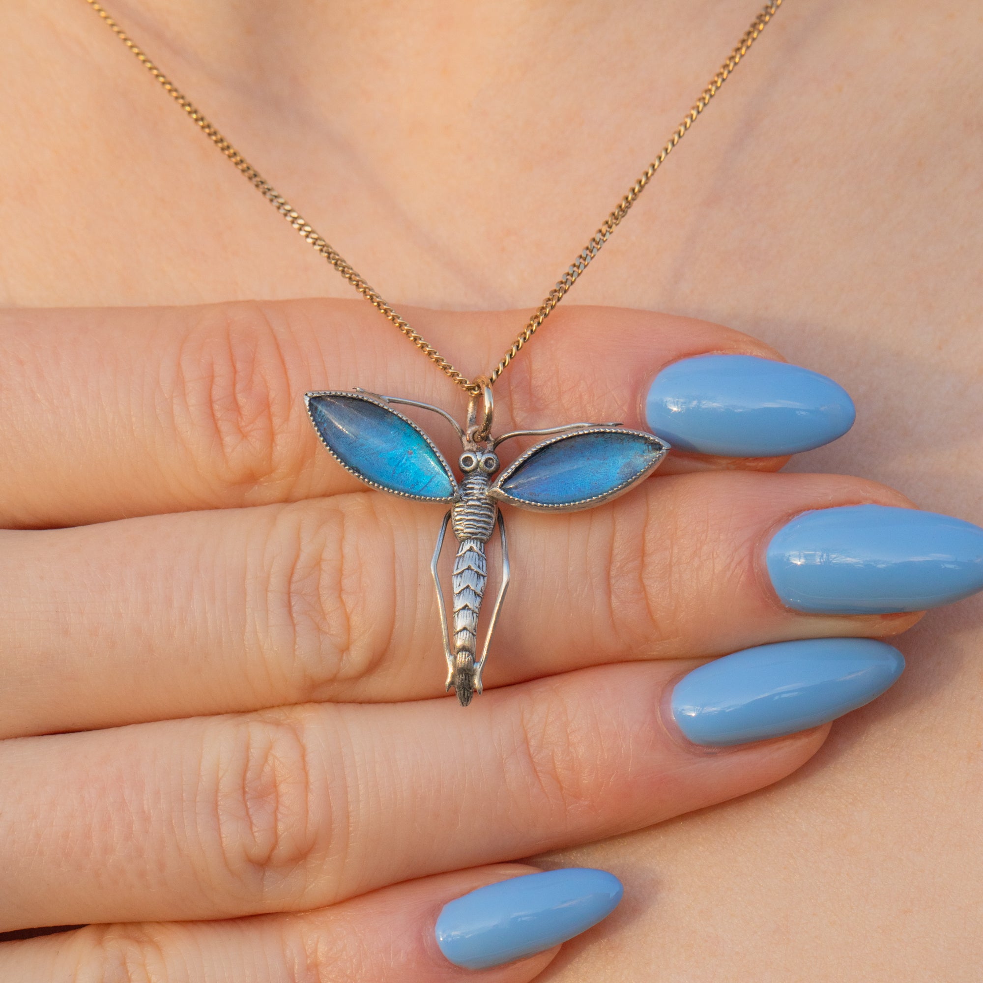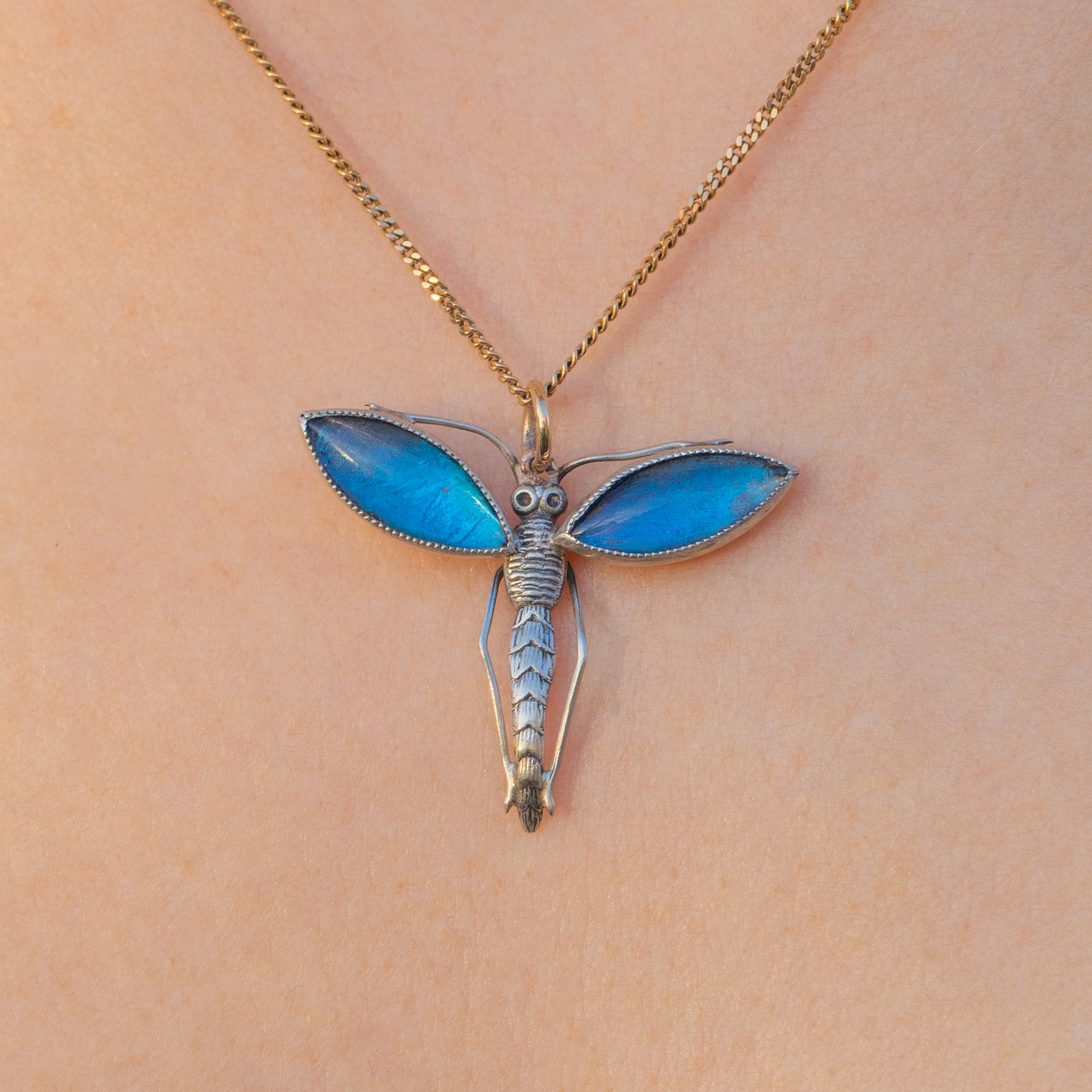 Art Deco Silver Butterfly Wing Dragonfly Pendant