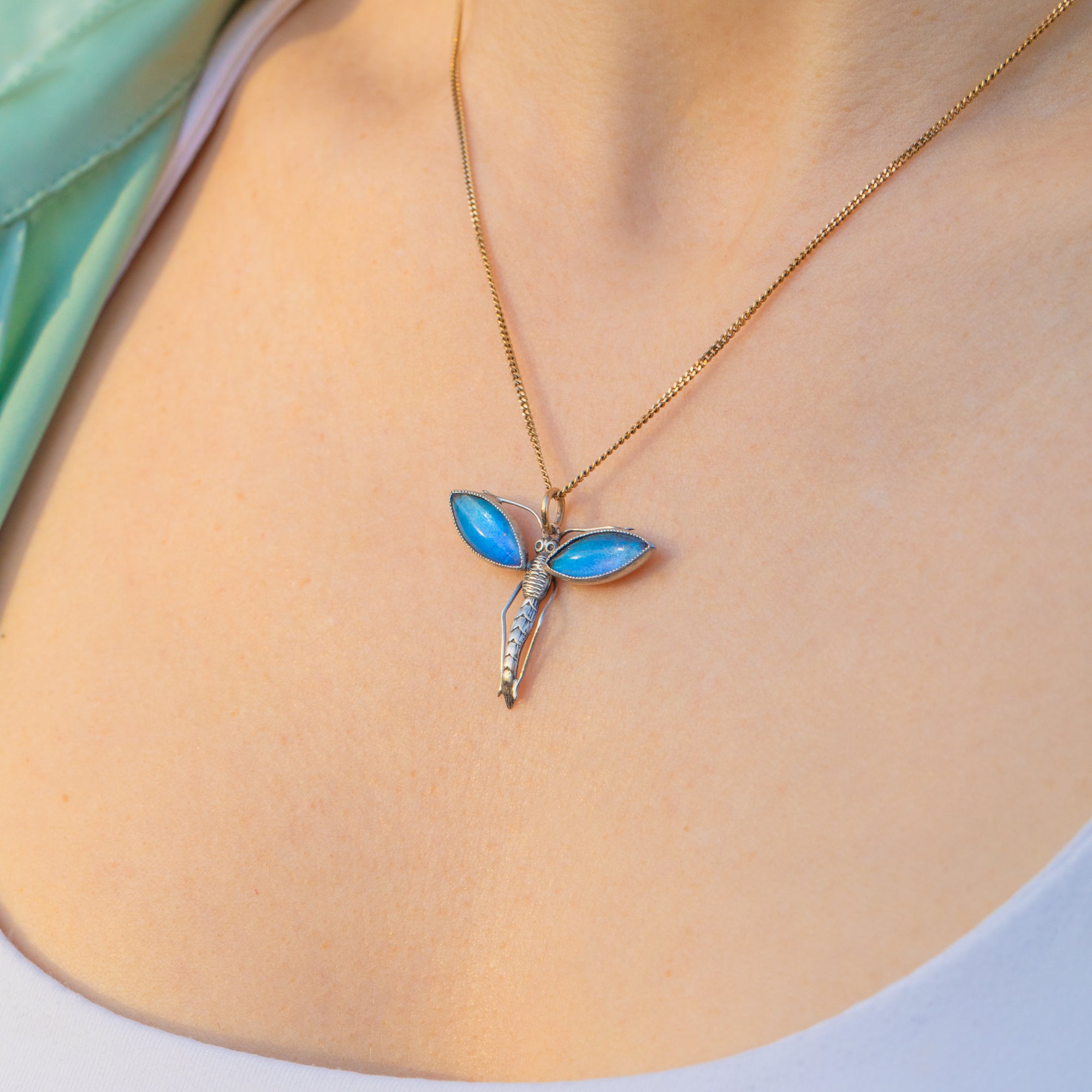 This Art Deco Silver butterfly wing dragonfly pendant is simply gorgeous!