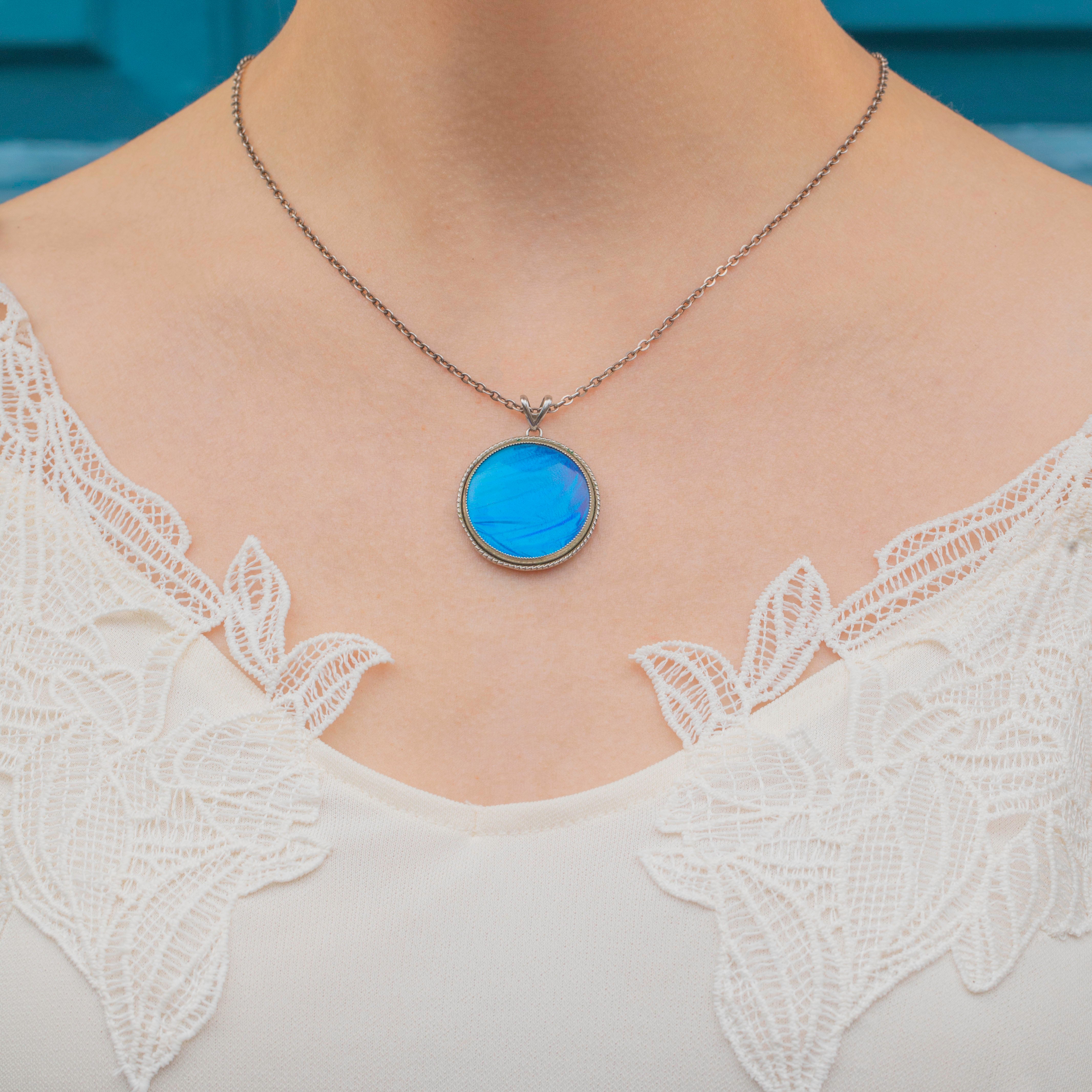 Butterfly wing jewellery was highly fashionable during the 1920s, symbolic of transformation and metamorphosis! This eye-catching pool of Cerulean blue will be the envy of all of your friends.
