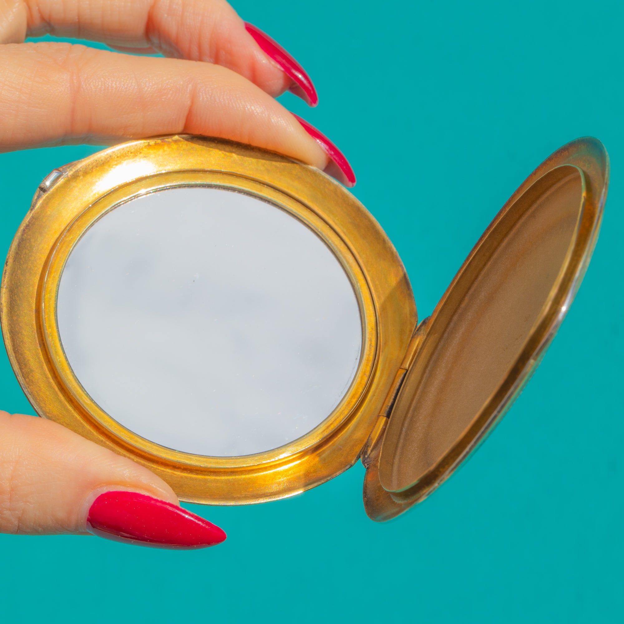 蓋を開けると、ぴったりと収まるミラーが現れ、さらにメッシュのシフターとファブリックパフが付属し、本格的なヴィンテージの華やかさを添えます。バーミンガムの鮮明なホールマークが品格を高め、スタイル黄金期の魅力と実用性を兼ね備えたコレクタブルな逸品です。
