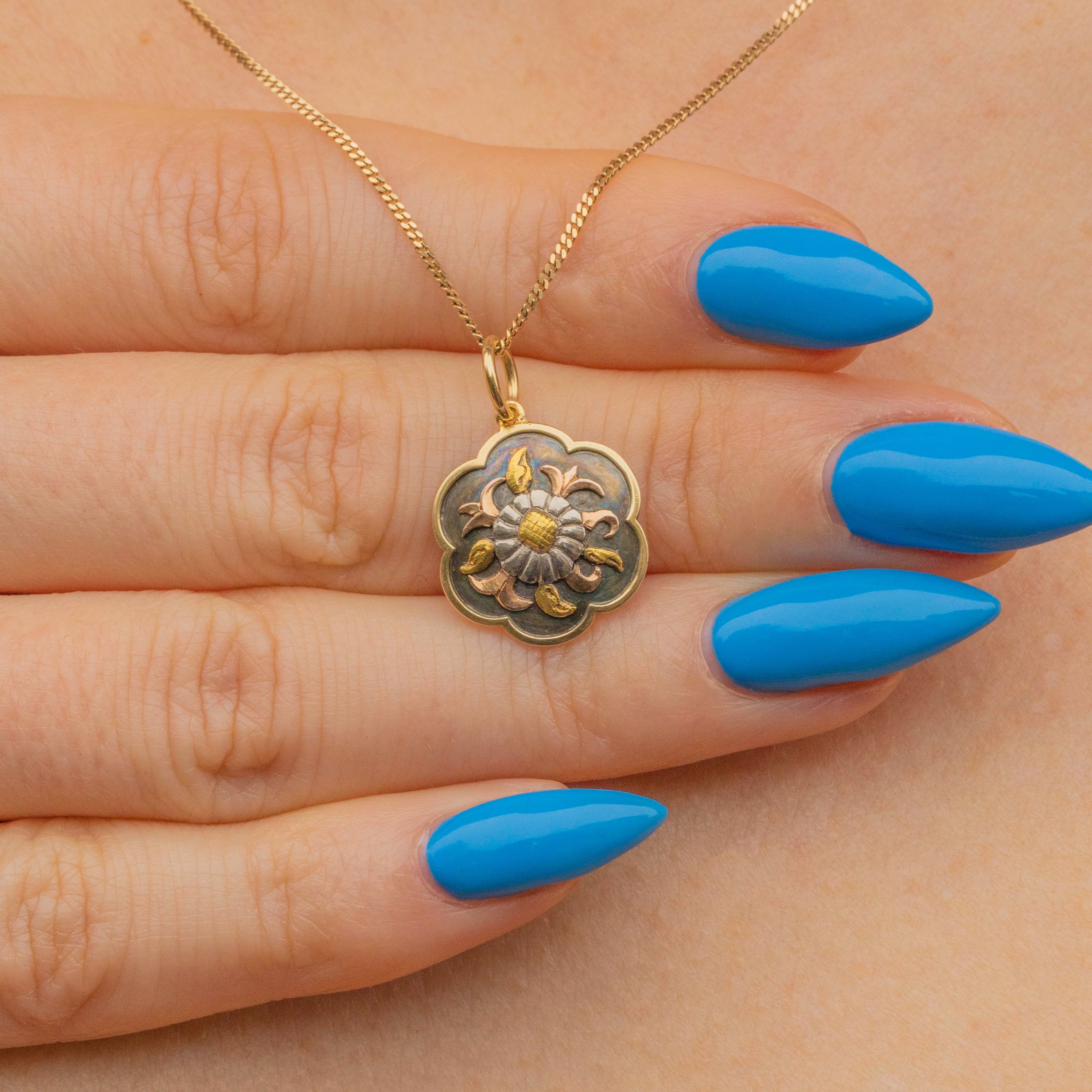 This is such a sweet Art Nouveau 18ct Gold daisy flower pendant! Celebrating the daisy flower, this pendant is symbolic of new beginnings and hope.