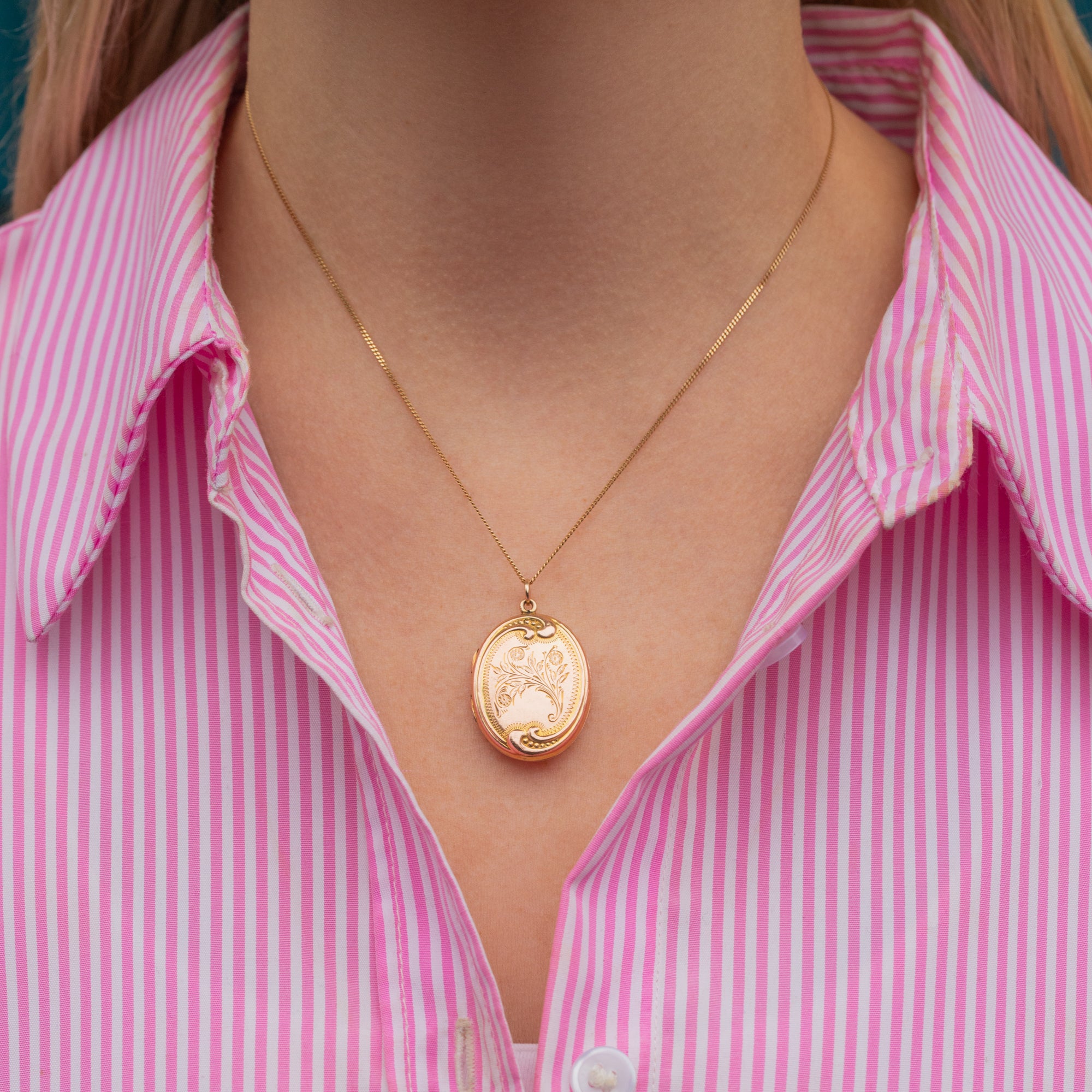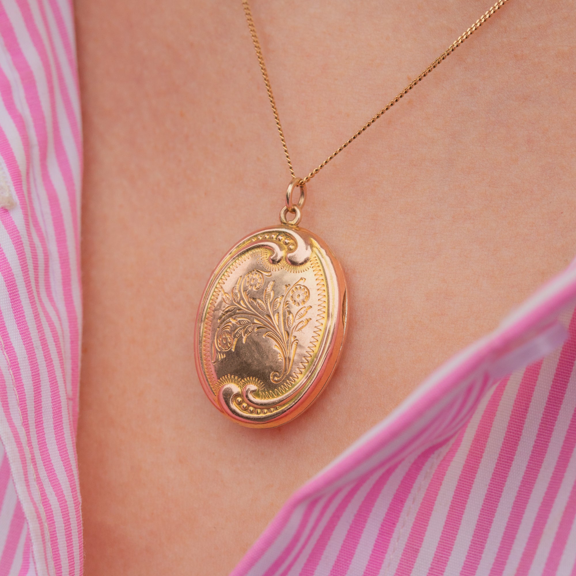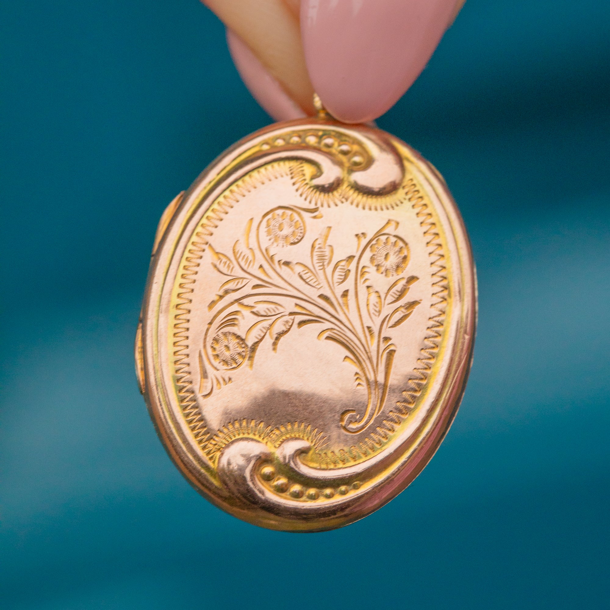 Add a sprinkle of charm to your collection with this Art Nouveau 9ct Gold engraved oval locket!
