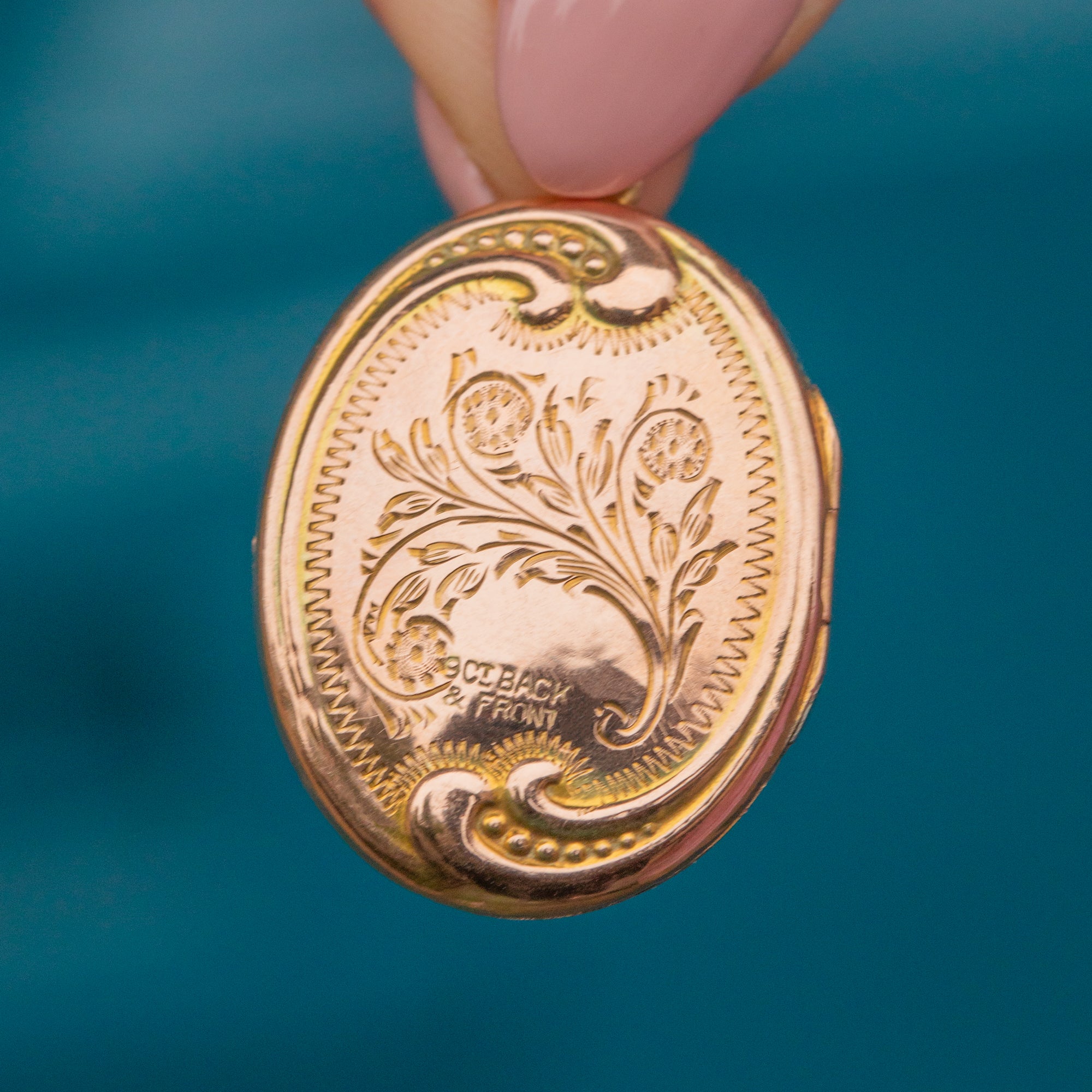 Art Nouveau 9ct Gold Engraved Oval Locket