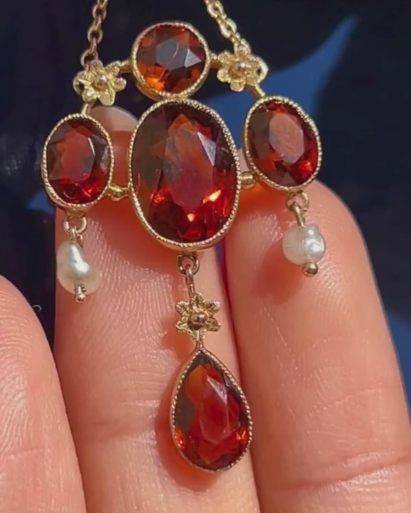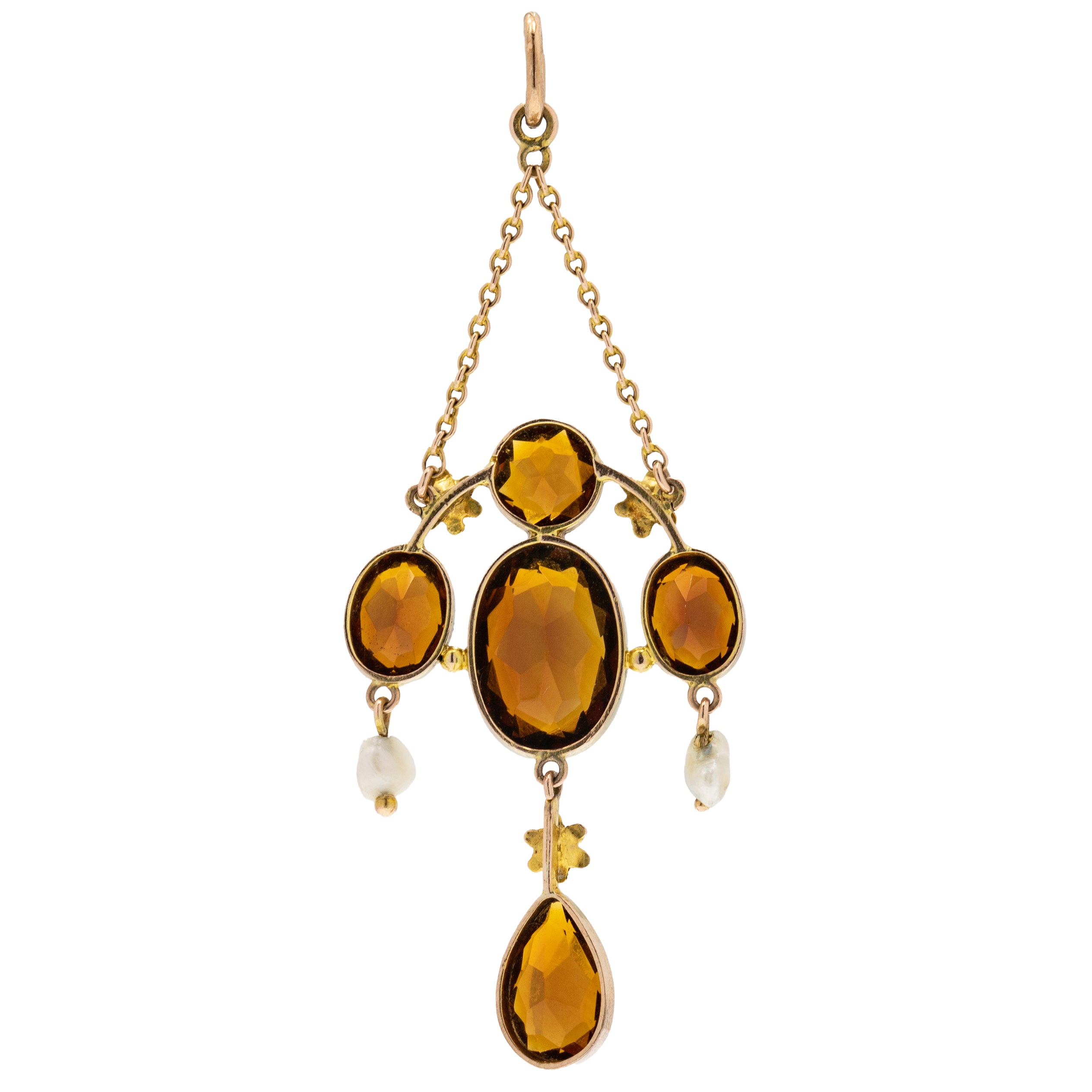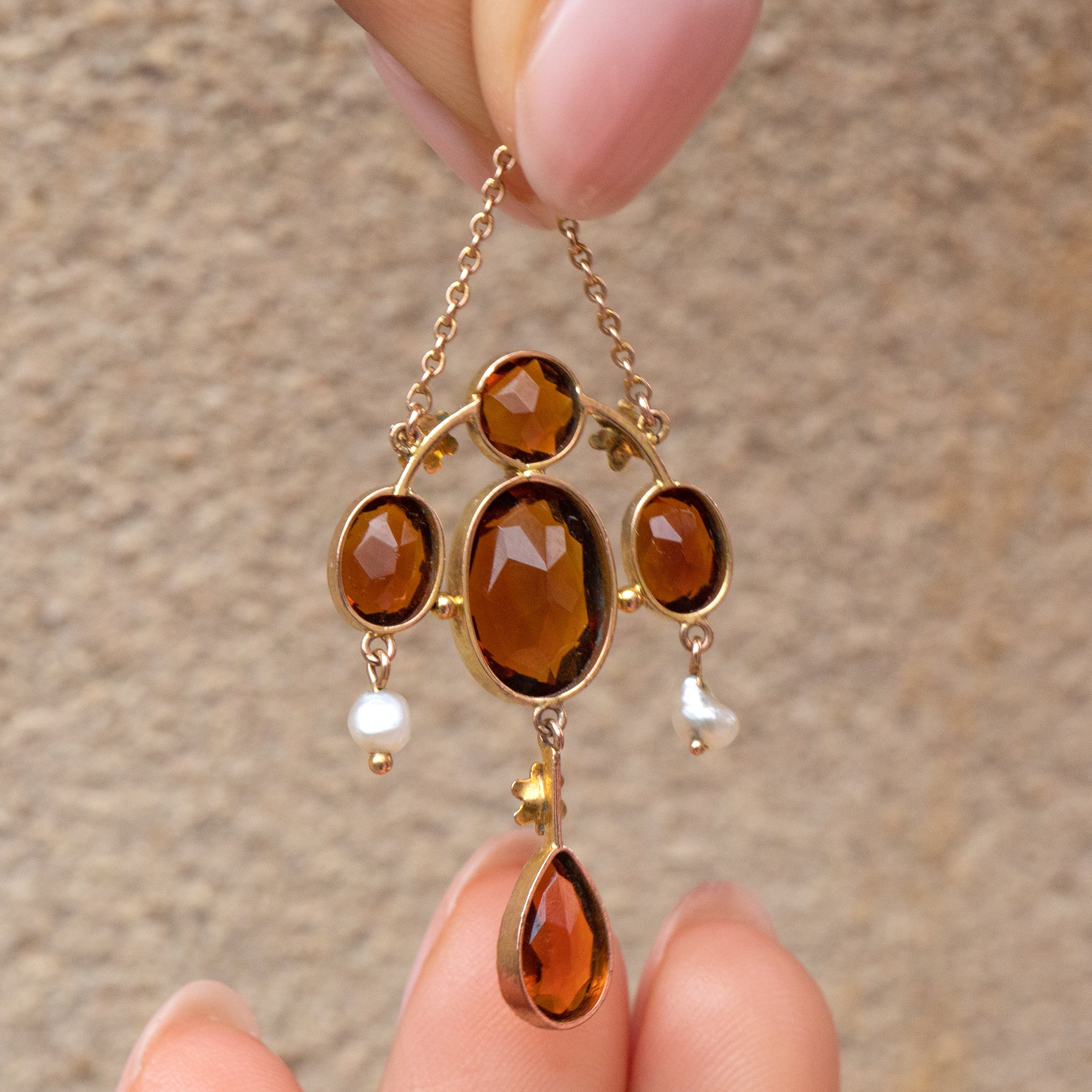 アールヌーボー 9ct ゴールド マデイラ シトリン ドロップ ペンダント、2.57ct