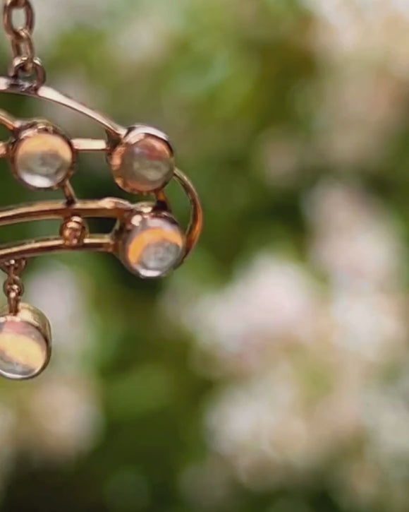 アールヌーボー 9ct ゴールド ムーンストーン バタフライ 一体型 ネックレス、2.80ct.