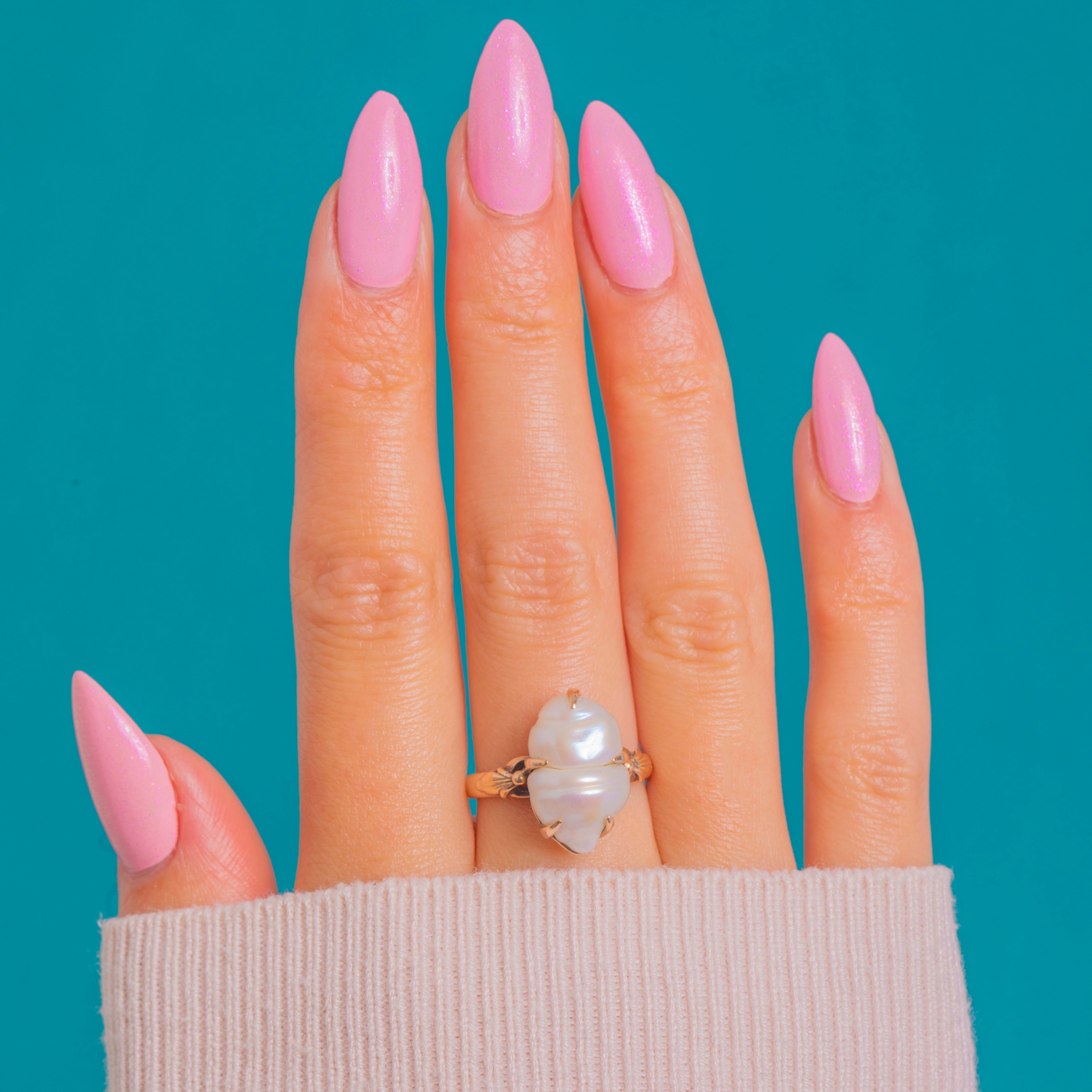 柔らかな曲線を描く爪や優美な植物モチーフなど、手作業による繊細な仕上げが魅力を一層引き立てます。パールは虹色の光沢を放ち、大胆でありながらこの上なくフェミニンな存在感を演出——Art Nouveauデザインへの優雅なオマージュです。