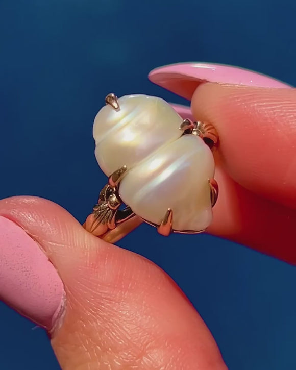 Art Nouveau時代 14ctゴールド バロックパールリング