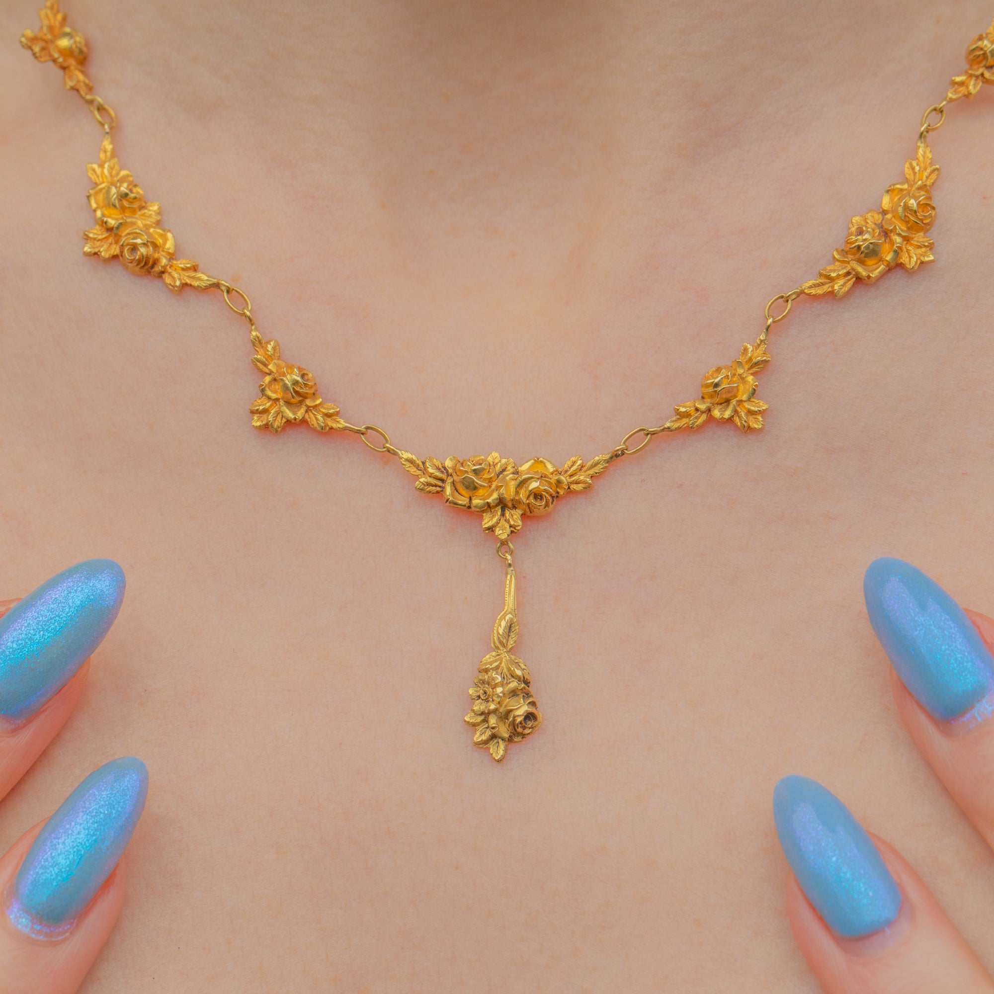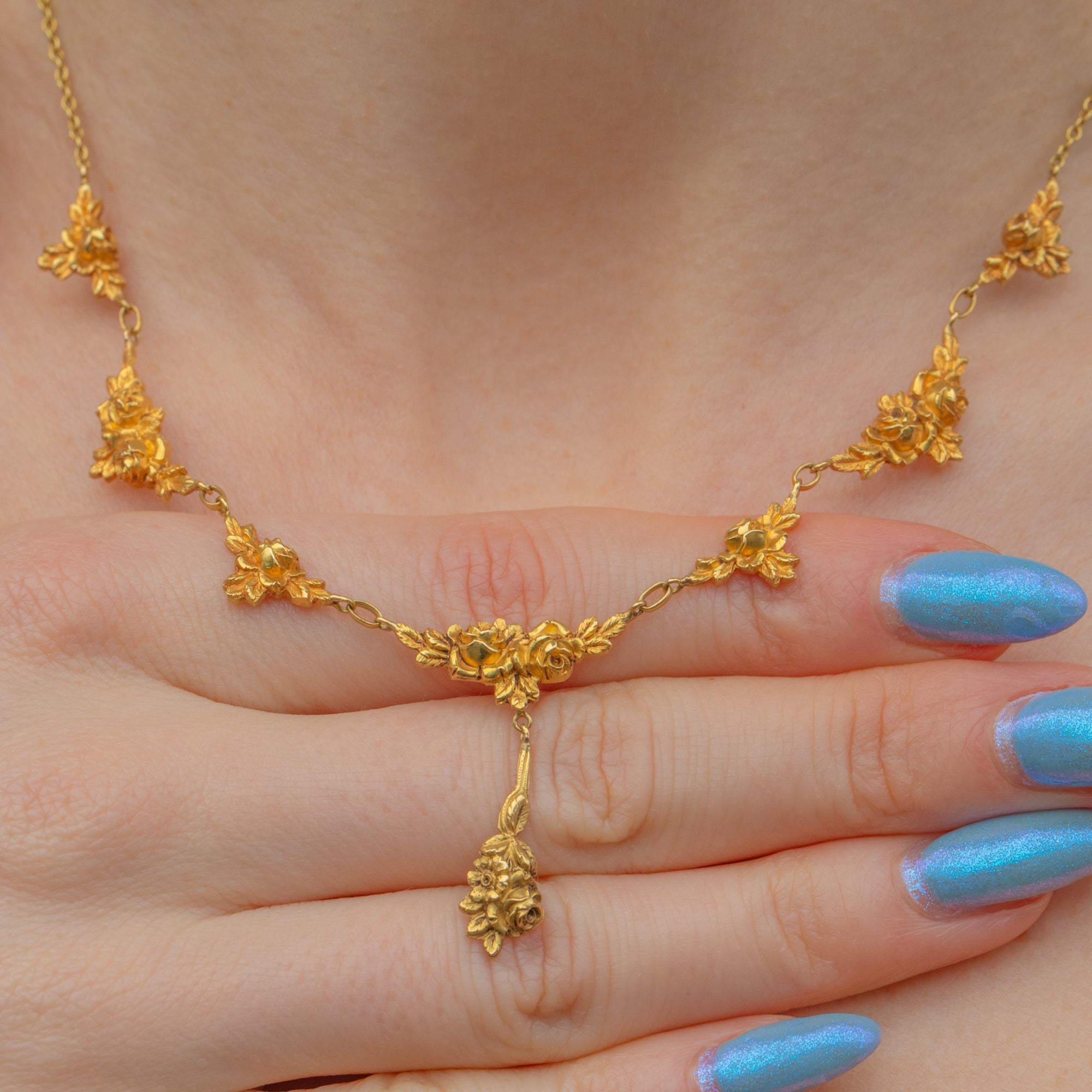 Art Nouveau French 18ct Gold Roses Necklace