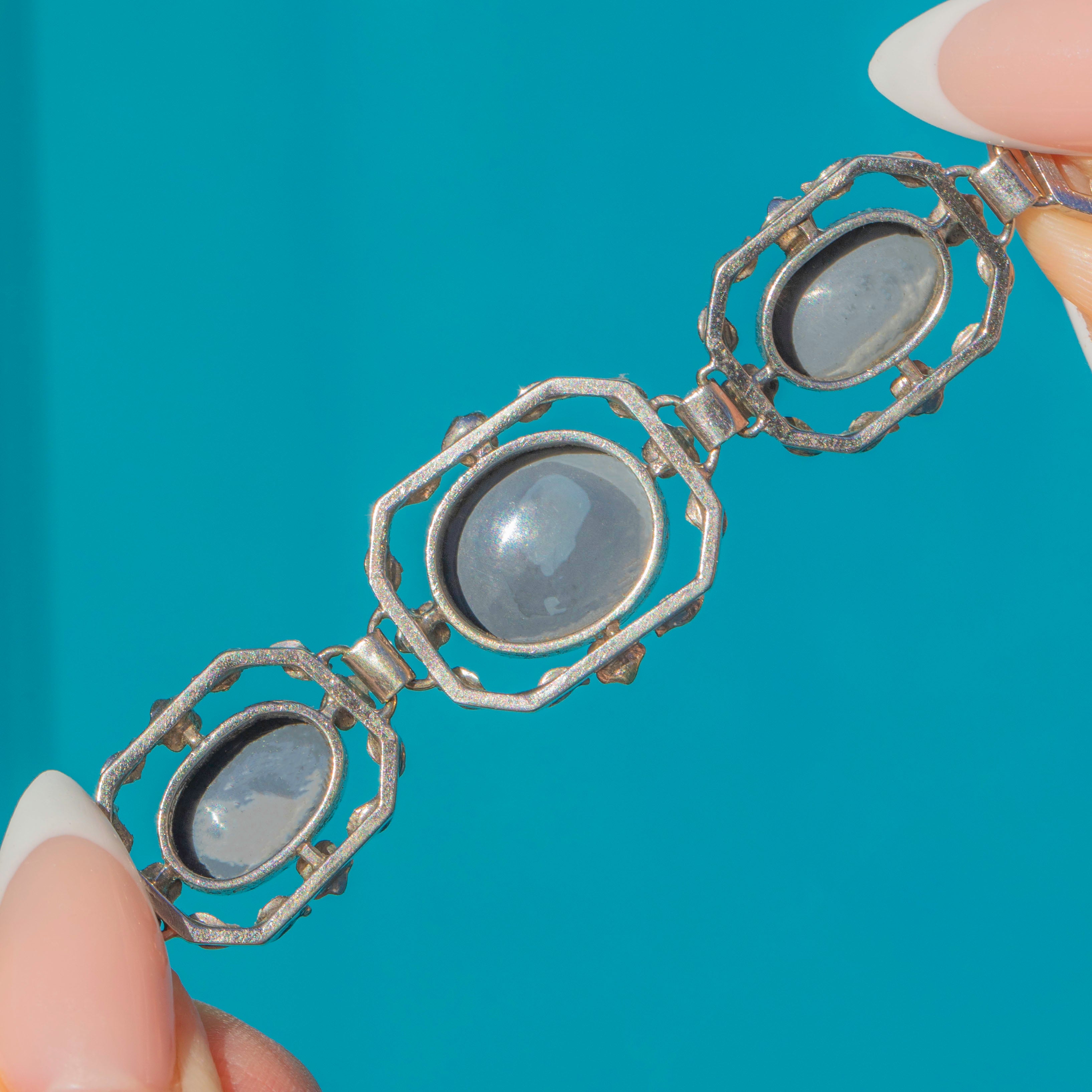 Arts & Crafts Era 9ct White Gold Black Opal Bracelet - Attributed Joseph Lawrence