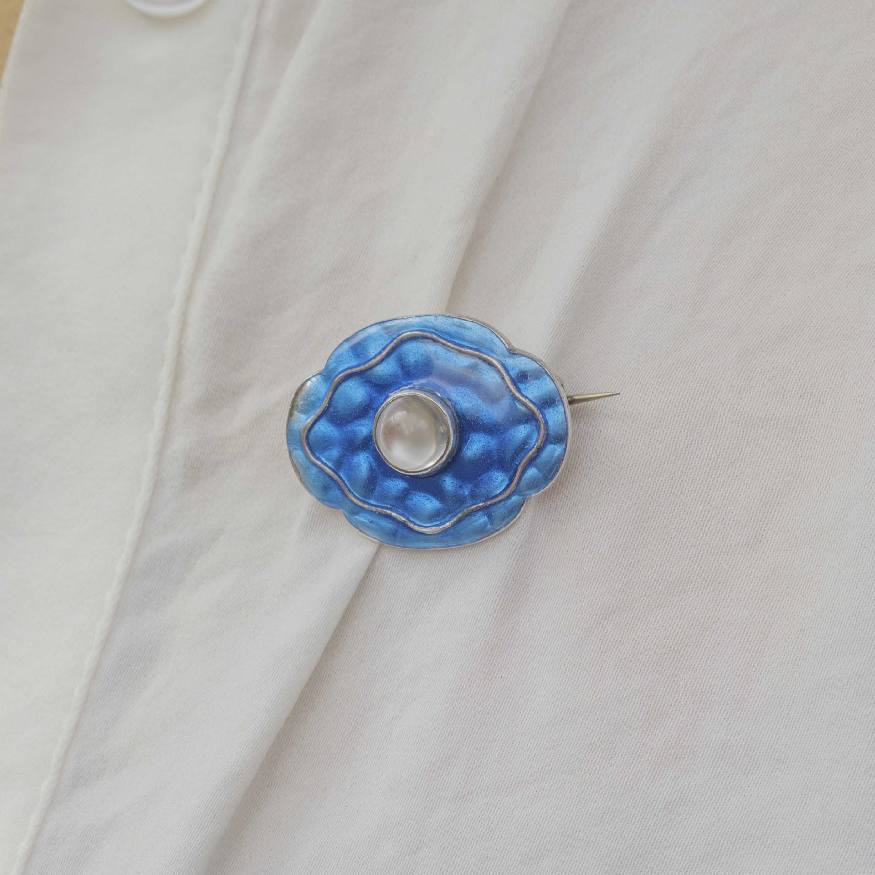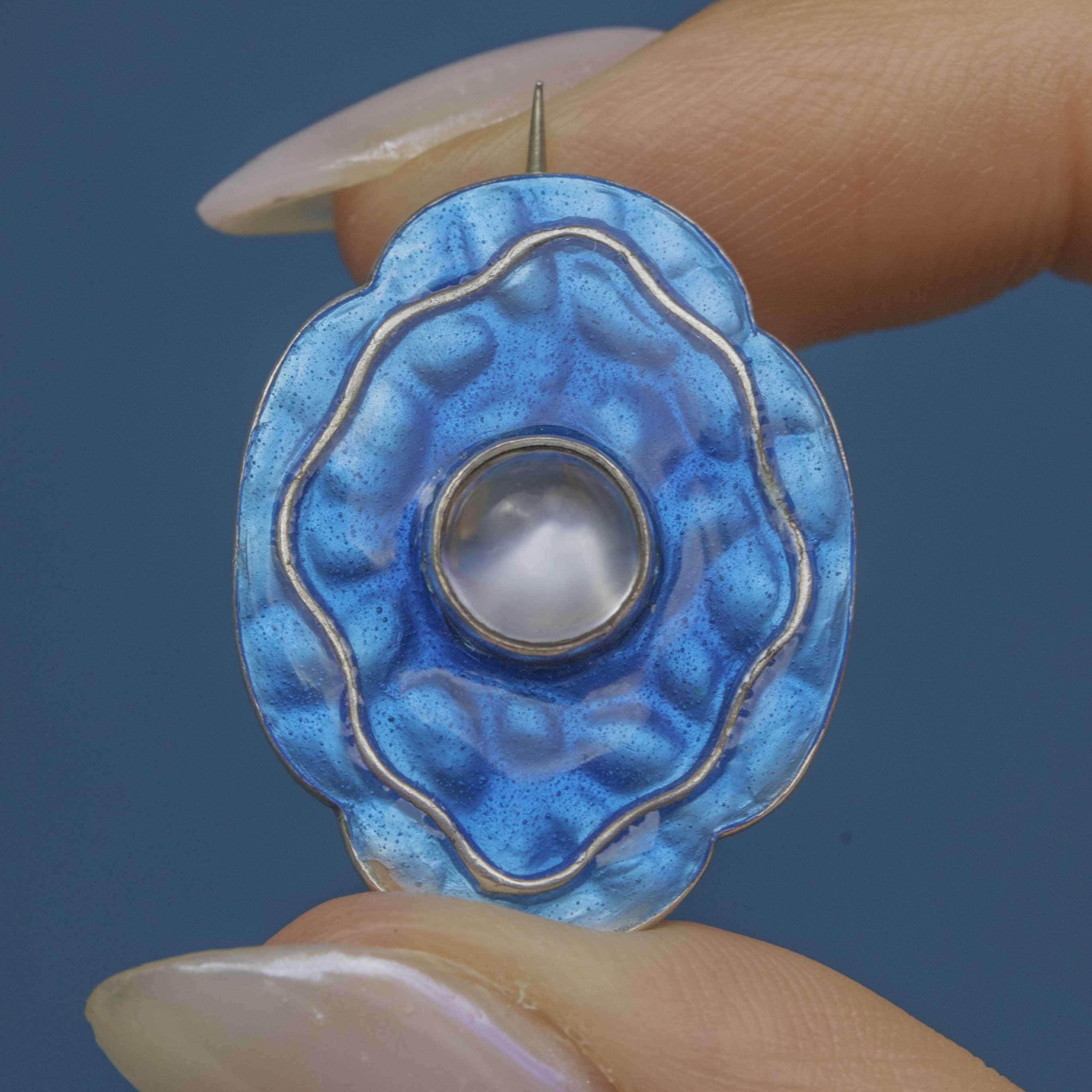 Arts & Crafts Murrle Bennett Blue Enamel & Moonstone Brooch