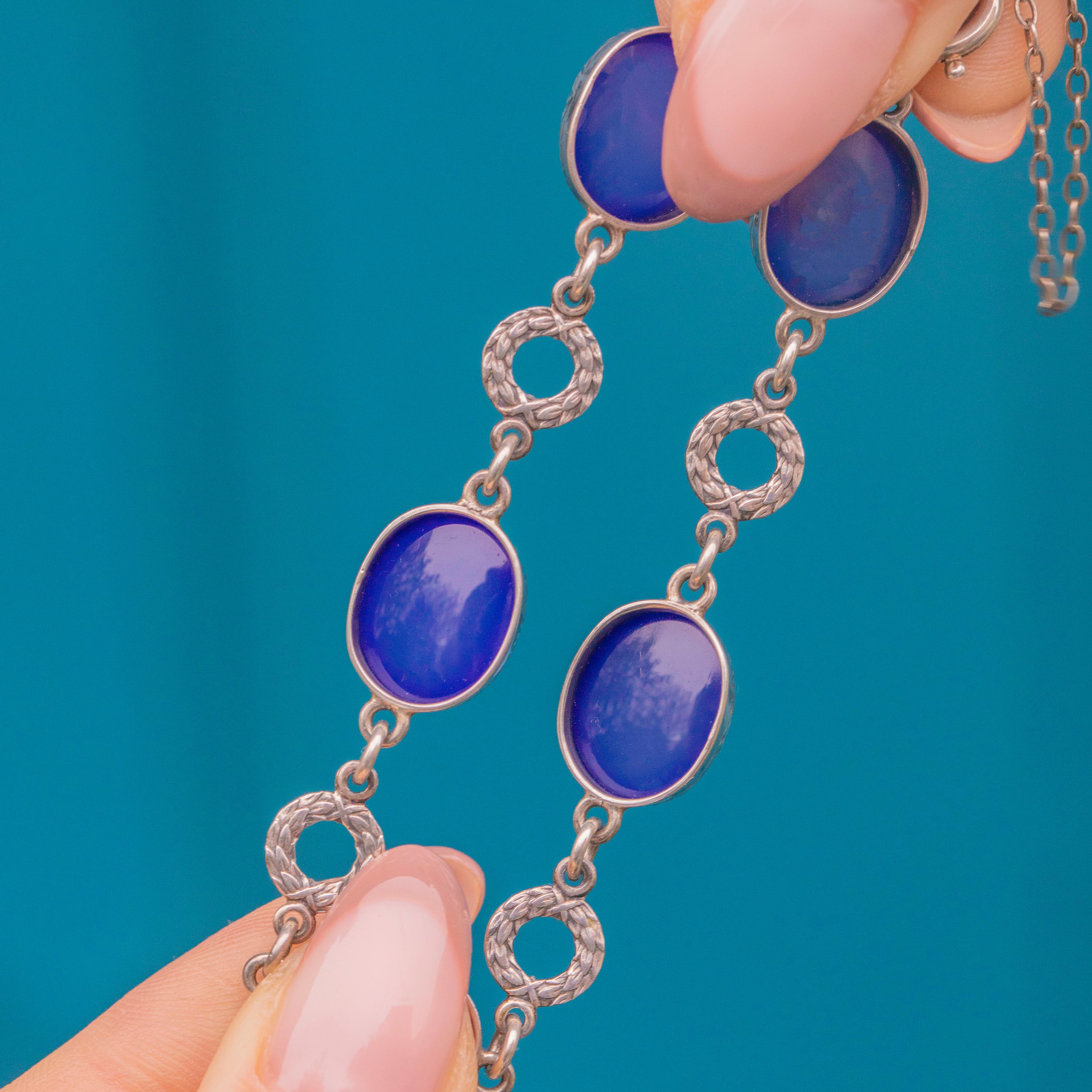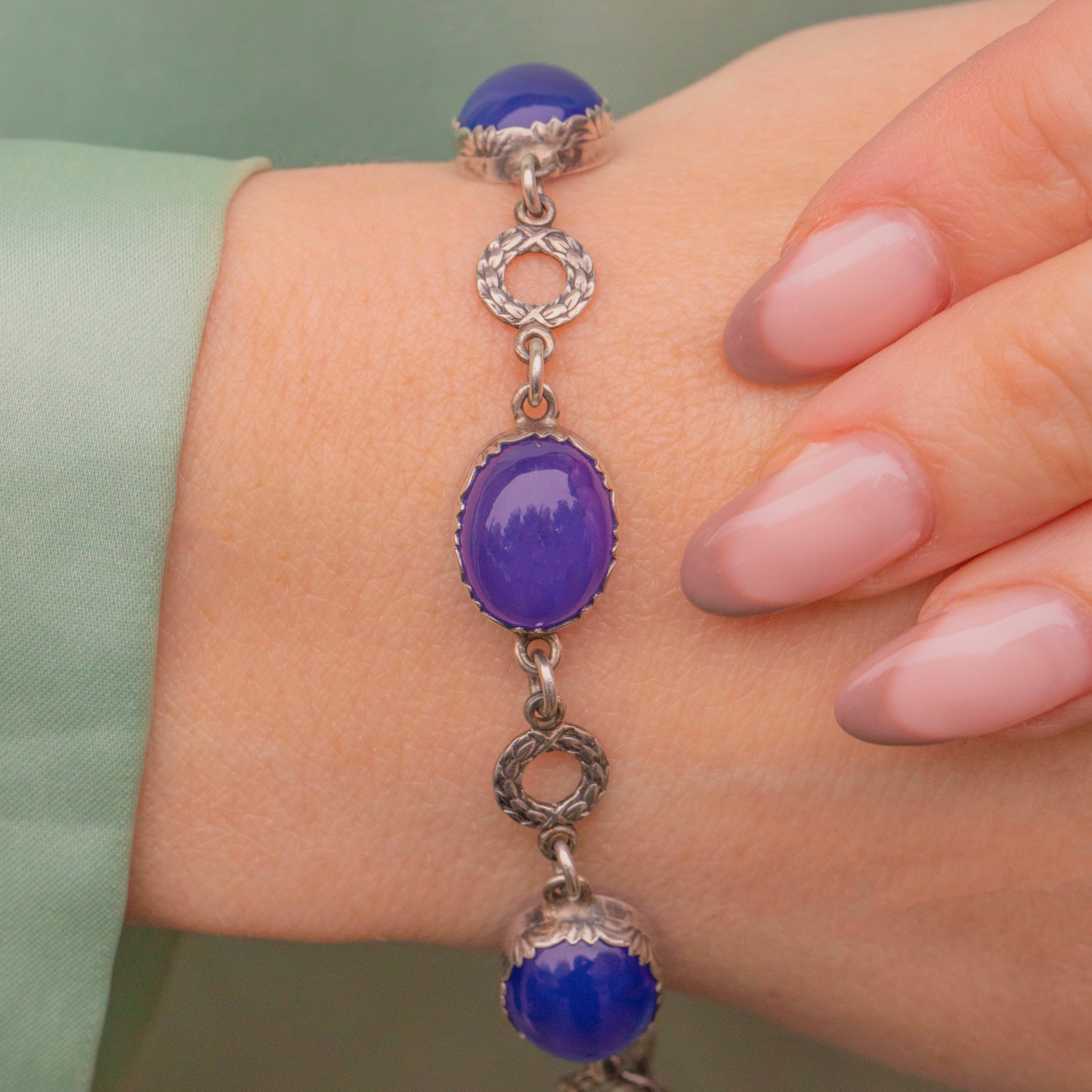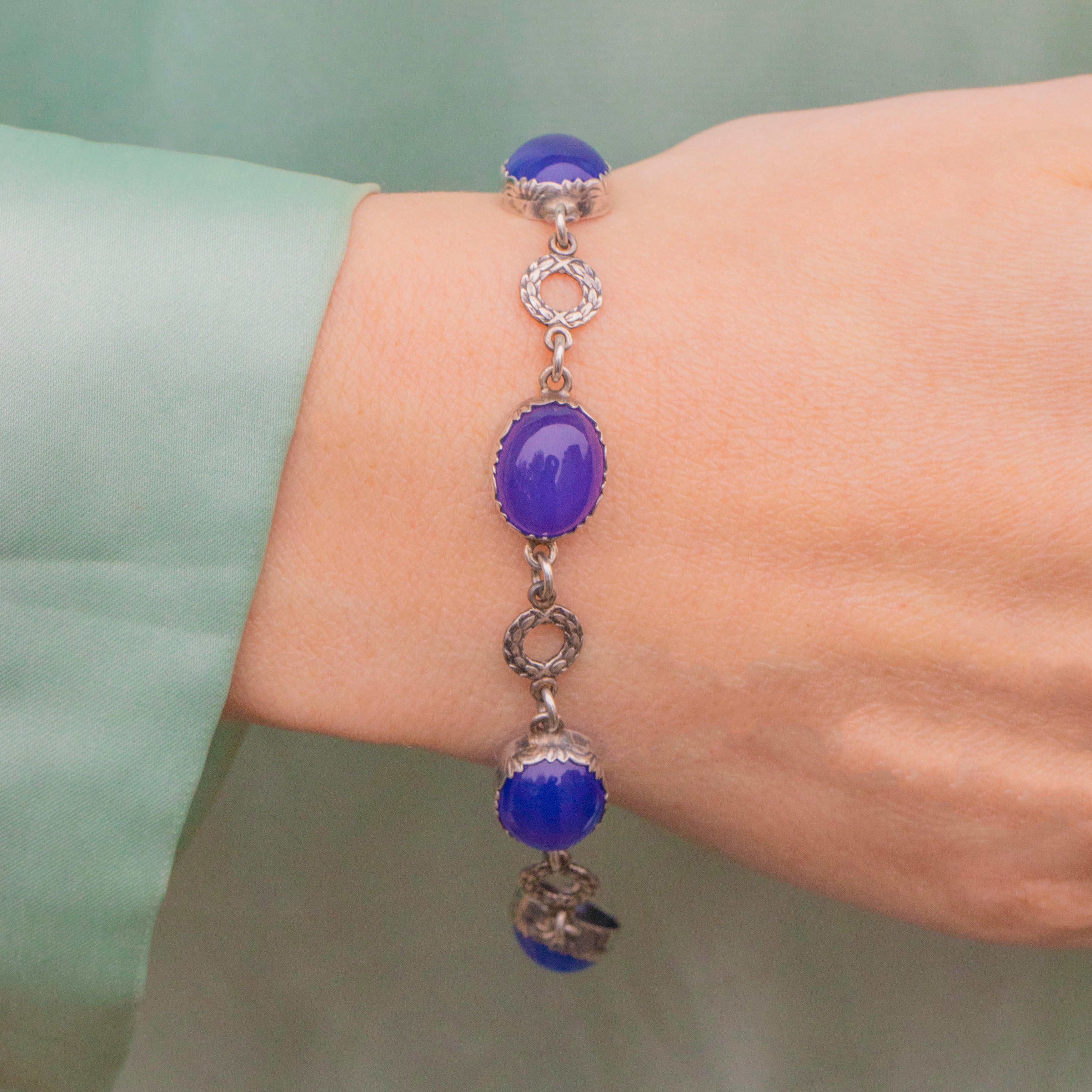 アーツ&クラフツ シルバー ブルー カルセドニー ブレスレット、17.40ct