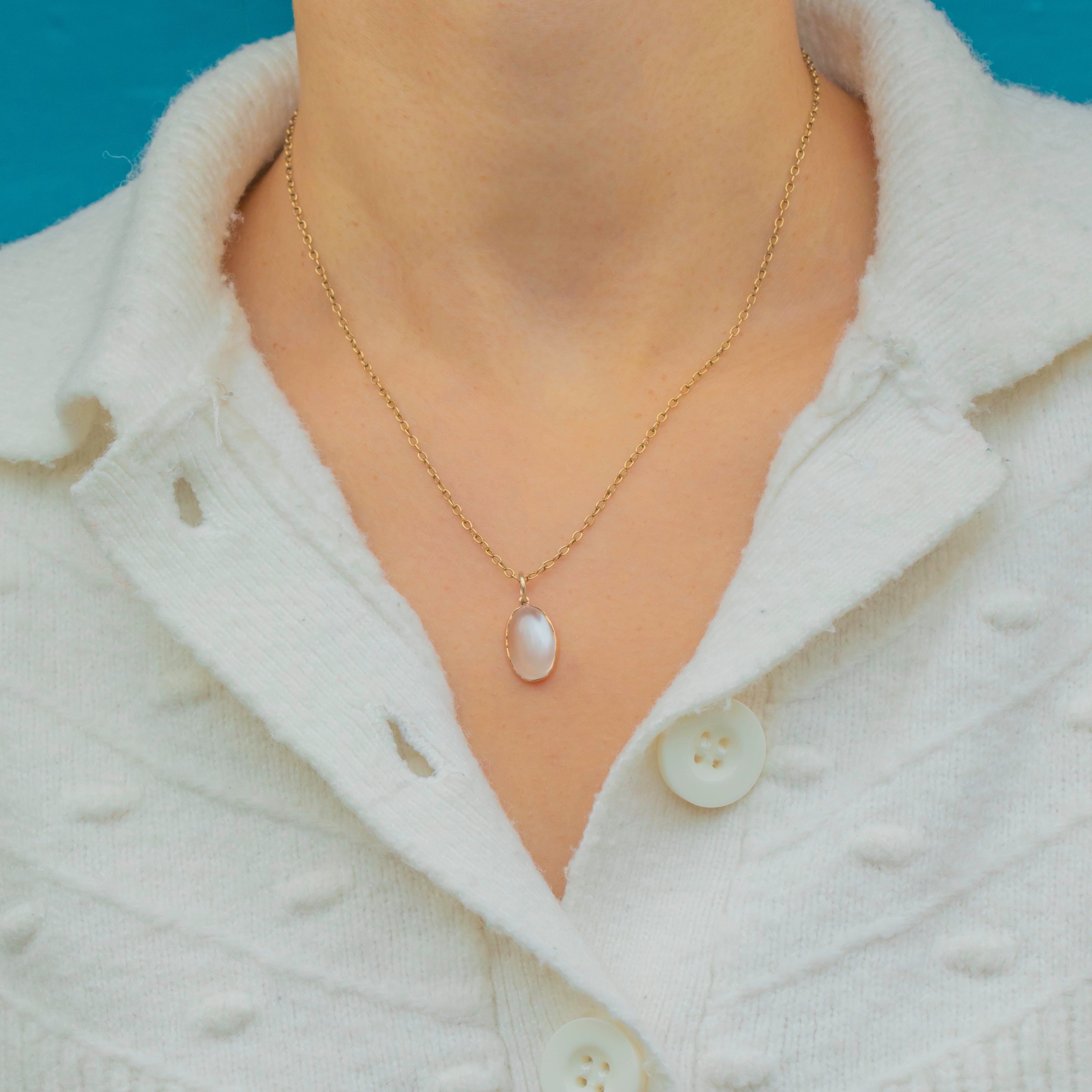 Beaming Antique Oval 9ct Gold Moonstone Charm