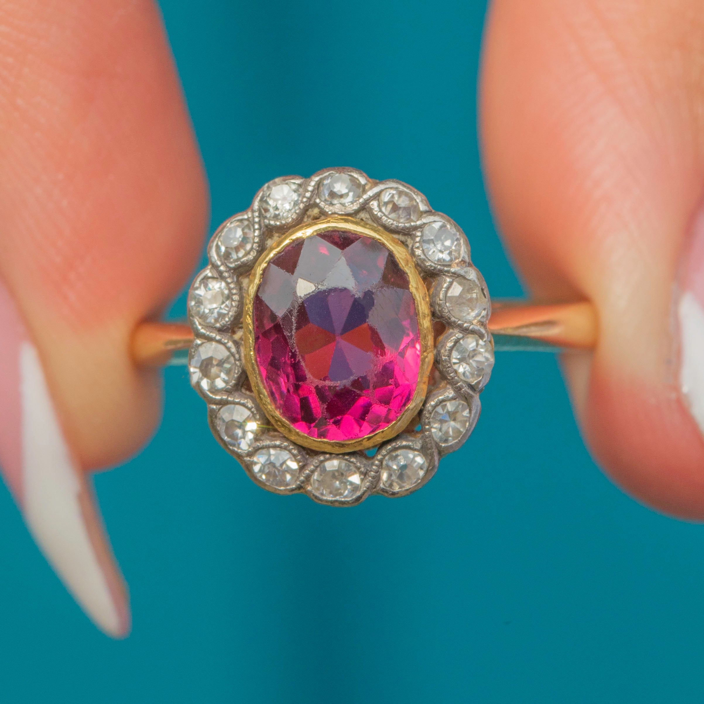 Belle Époque 18ct Gold Pink Tourmaline & Diamond Cluster Ring c.1910