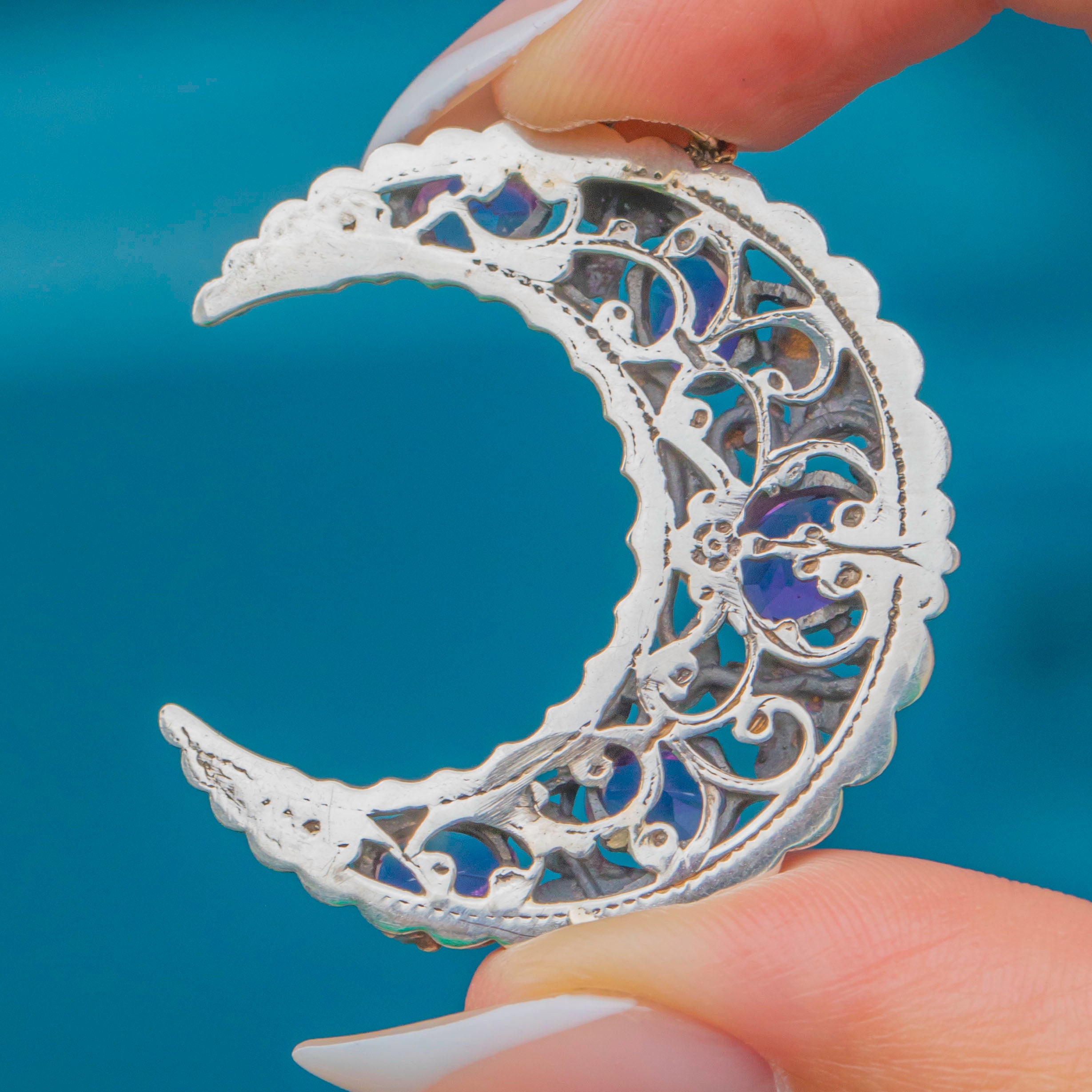 Bernard Instone Silver Amethyst Crescent Moon Pendant, c.1930