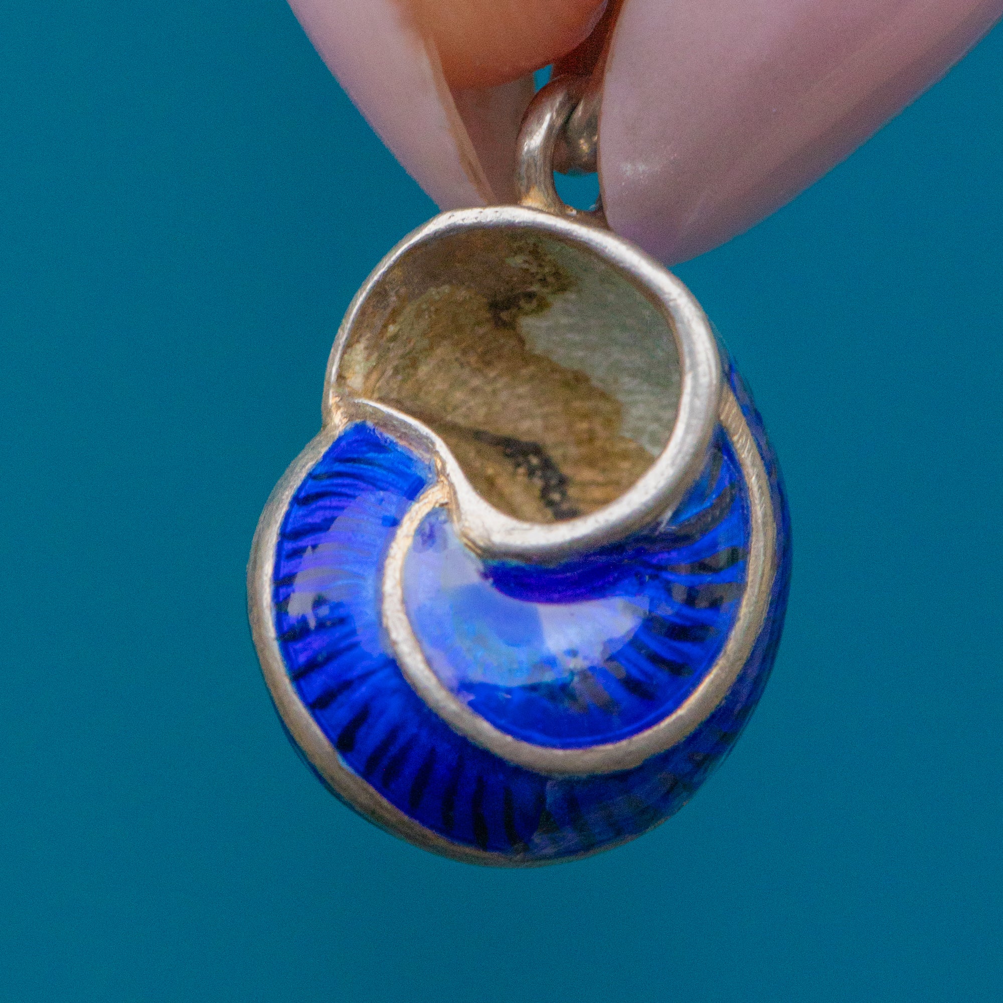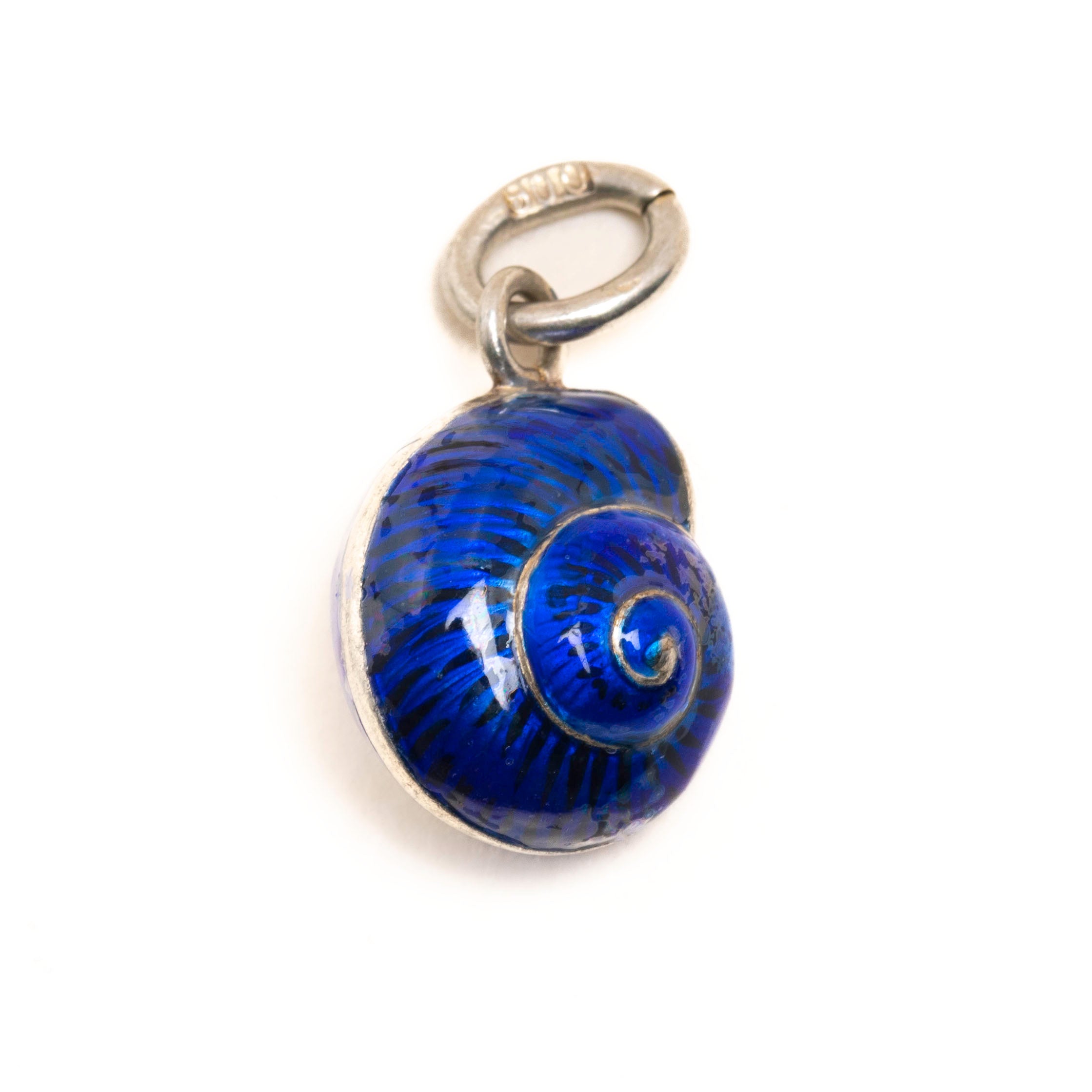 EXCELLENT This blue Enamel shell charm is in excellent condition. The dark blue Enamel remains vibrant showing no significant chips or cracks. Her Silver has developed a light patina on her jump ring, creating a delectable Vintage look. She is an absolute dream come true!