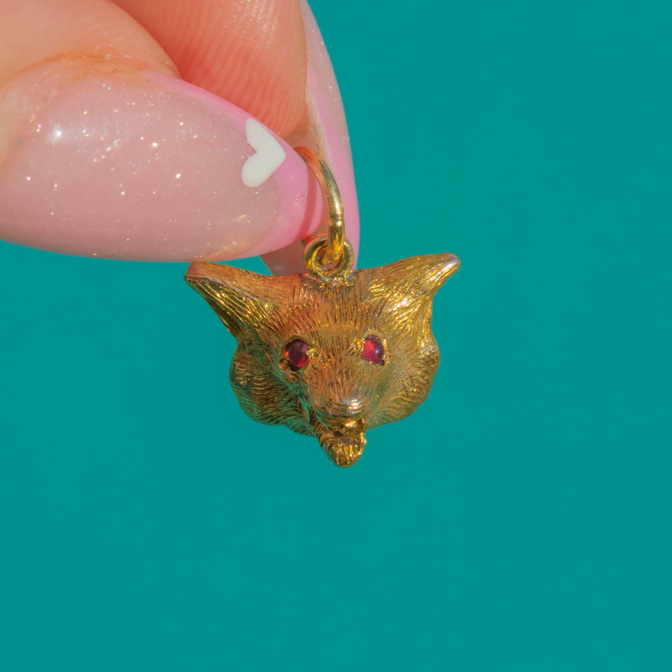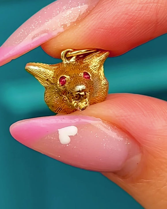 Charming 10ct Gold Fox Charm, Red Paste Cabochon Eyes