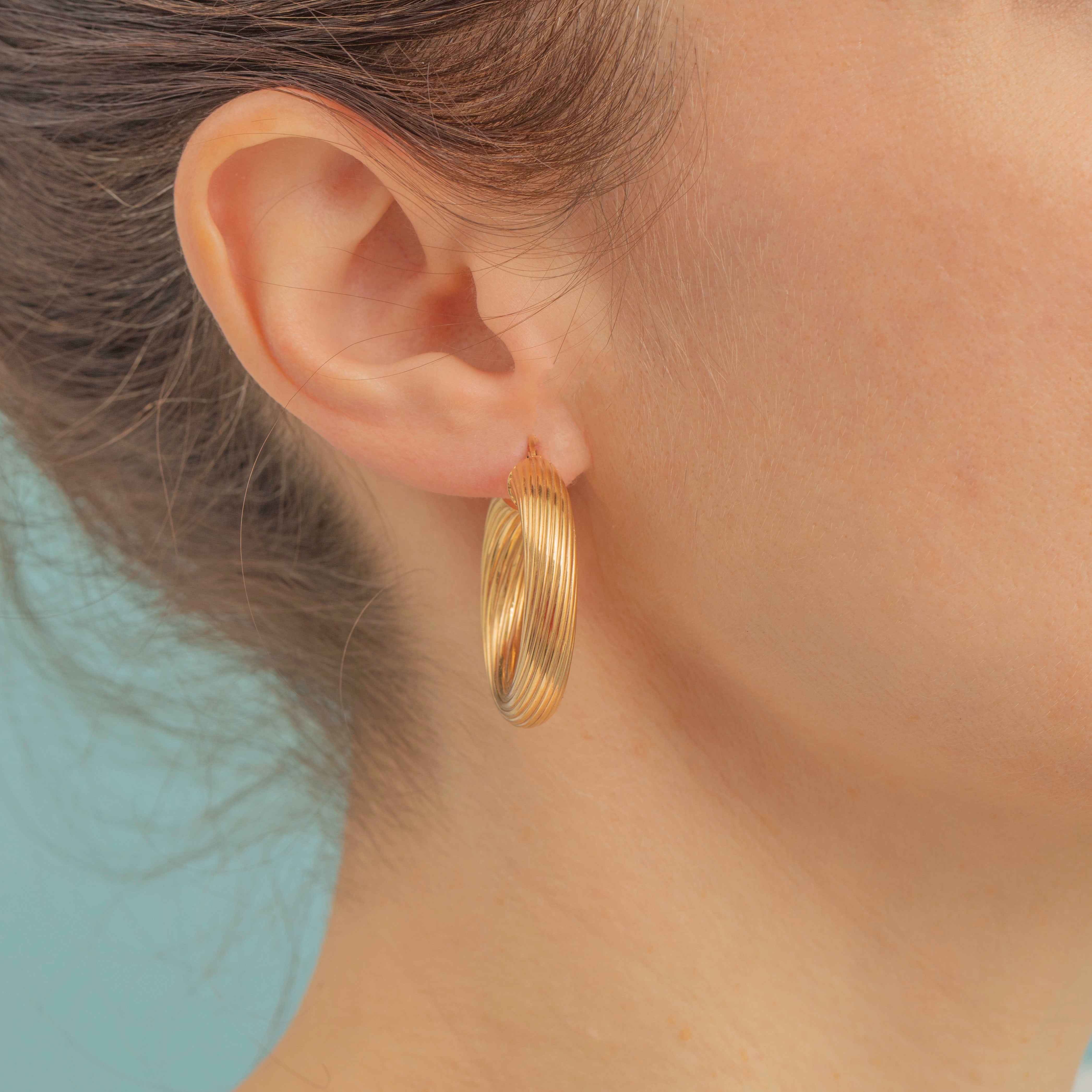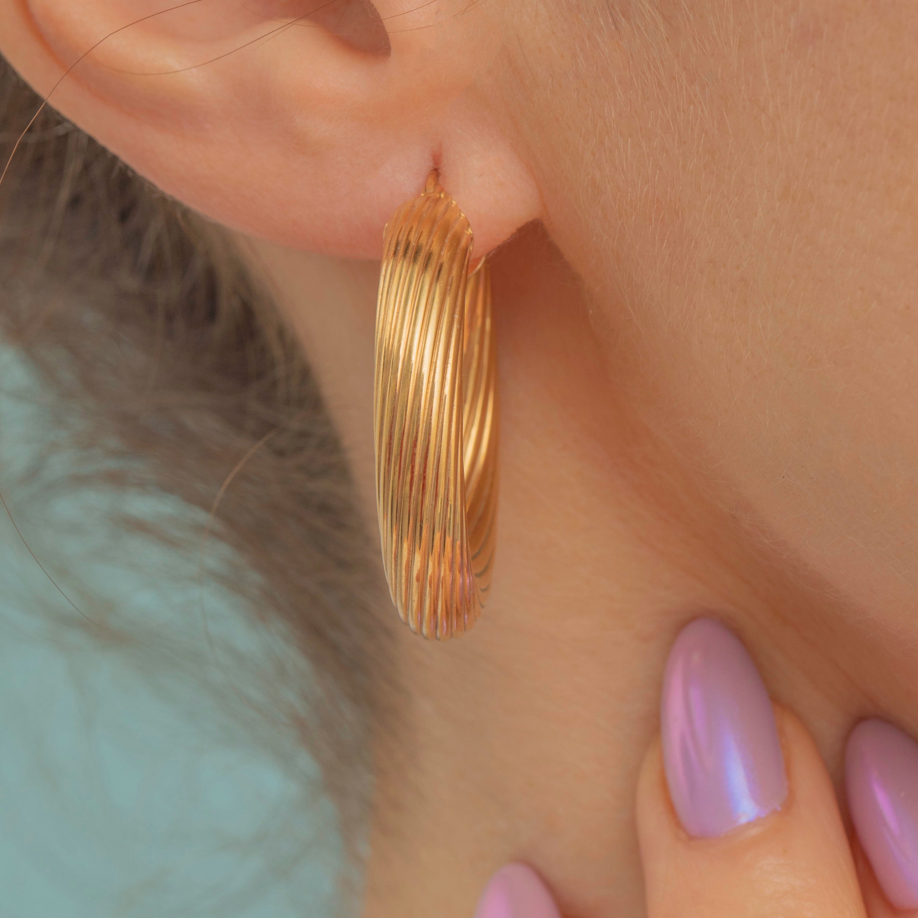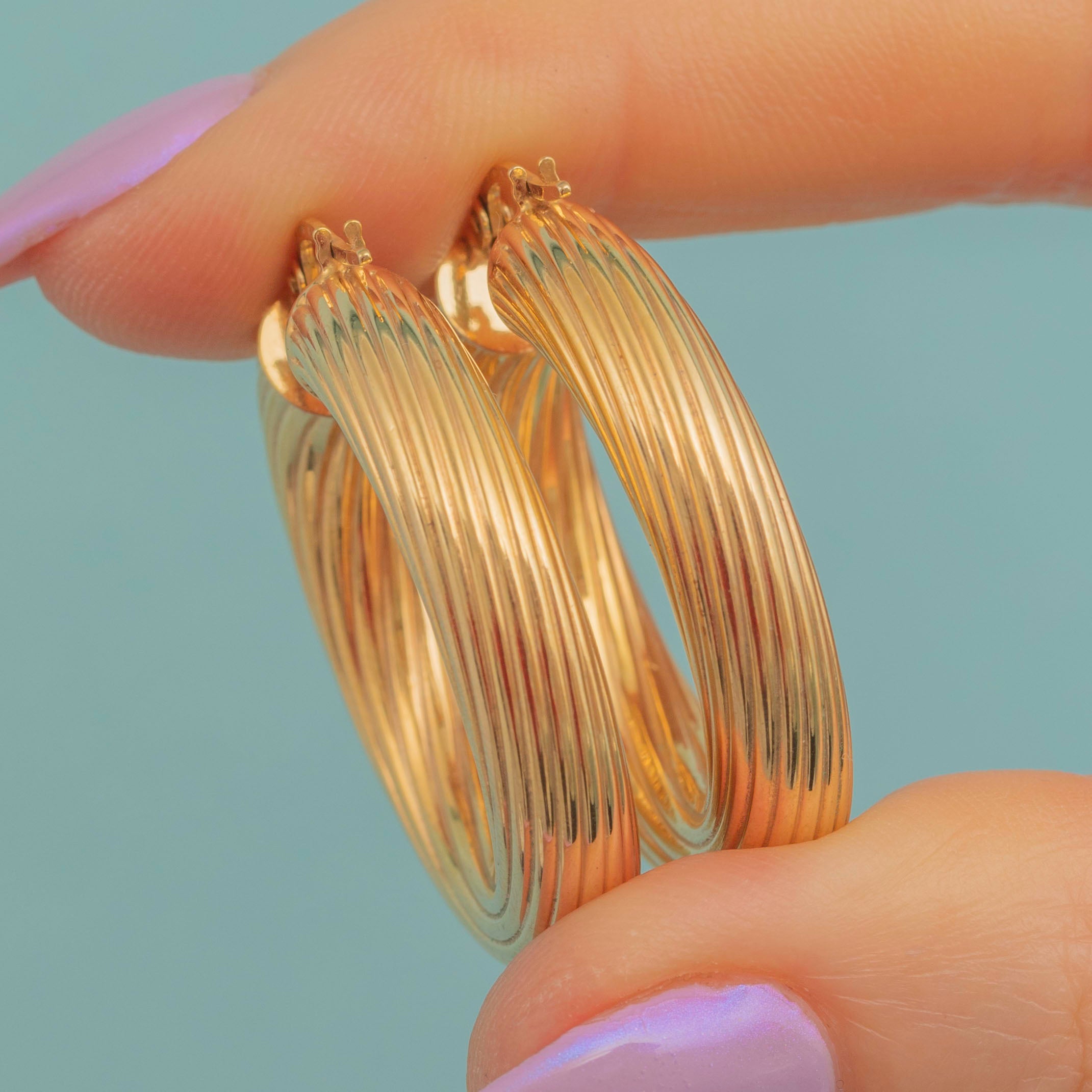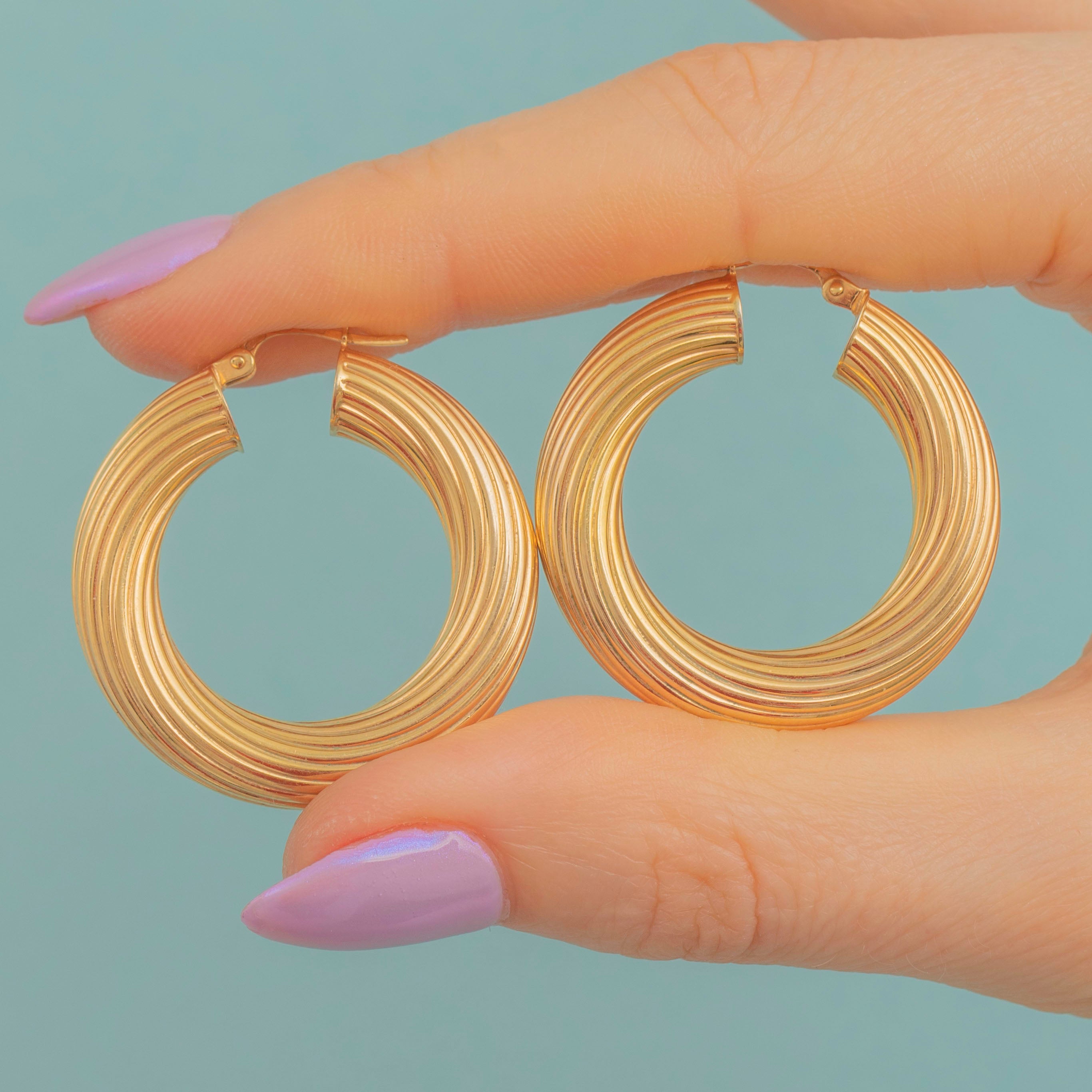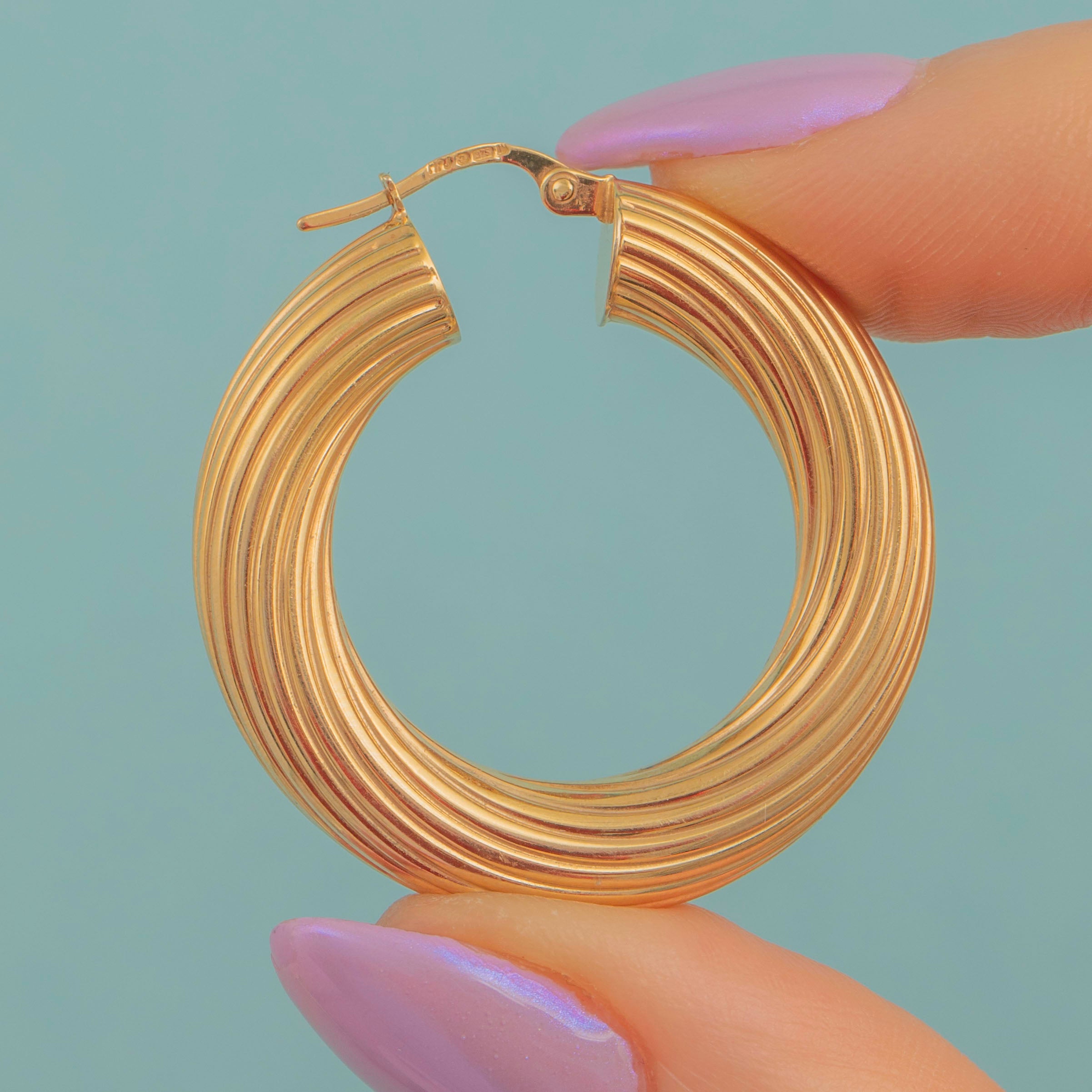 These elegant 9ct Gold chunky hoop earrings exude timeless sophistication. The enduring allure of these hoops lies in their versatility, effortlessly transitioning from casual daytime chic to evening elegance.