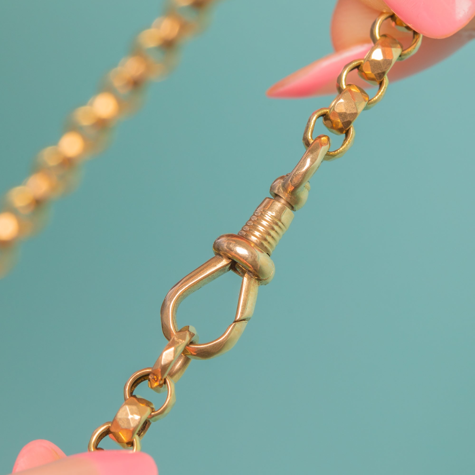 Complete with an adorable antique dog-clip for you to suspend your charms, this Victorian Gold chain is a must-have piece!