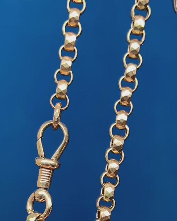 Chunky Antique 16" 9ct Gold Faceted Belcher Chain with Dog-Clip
