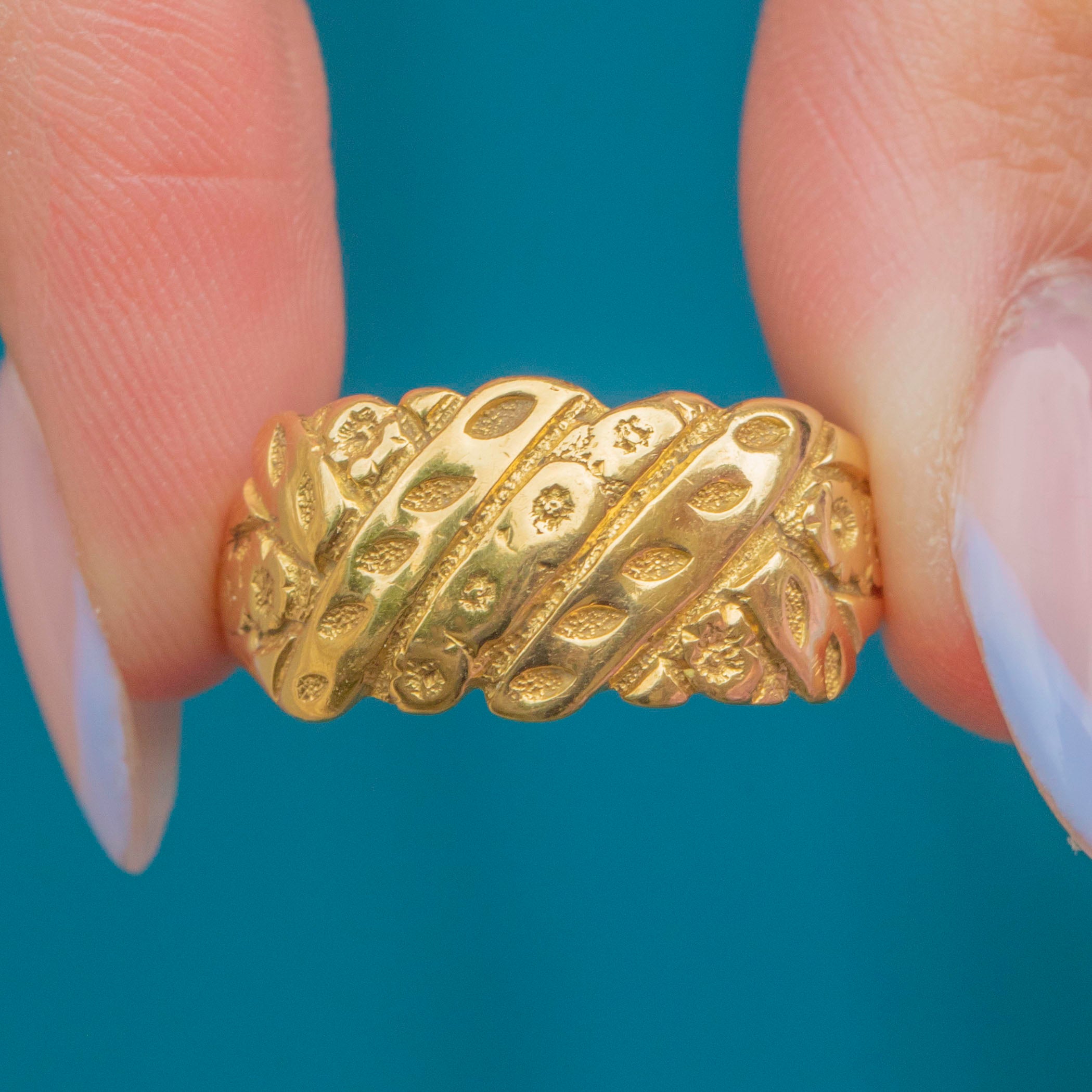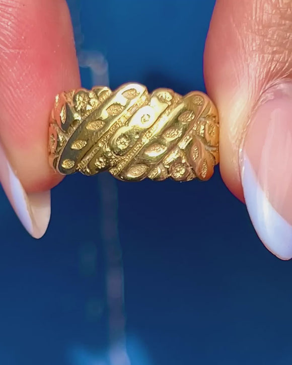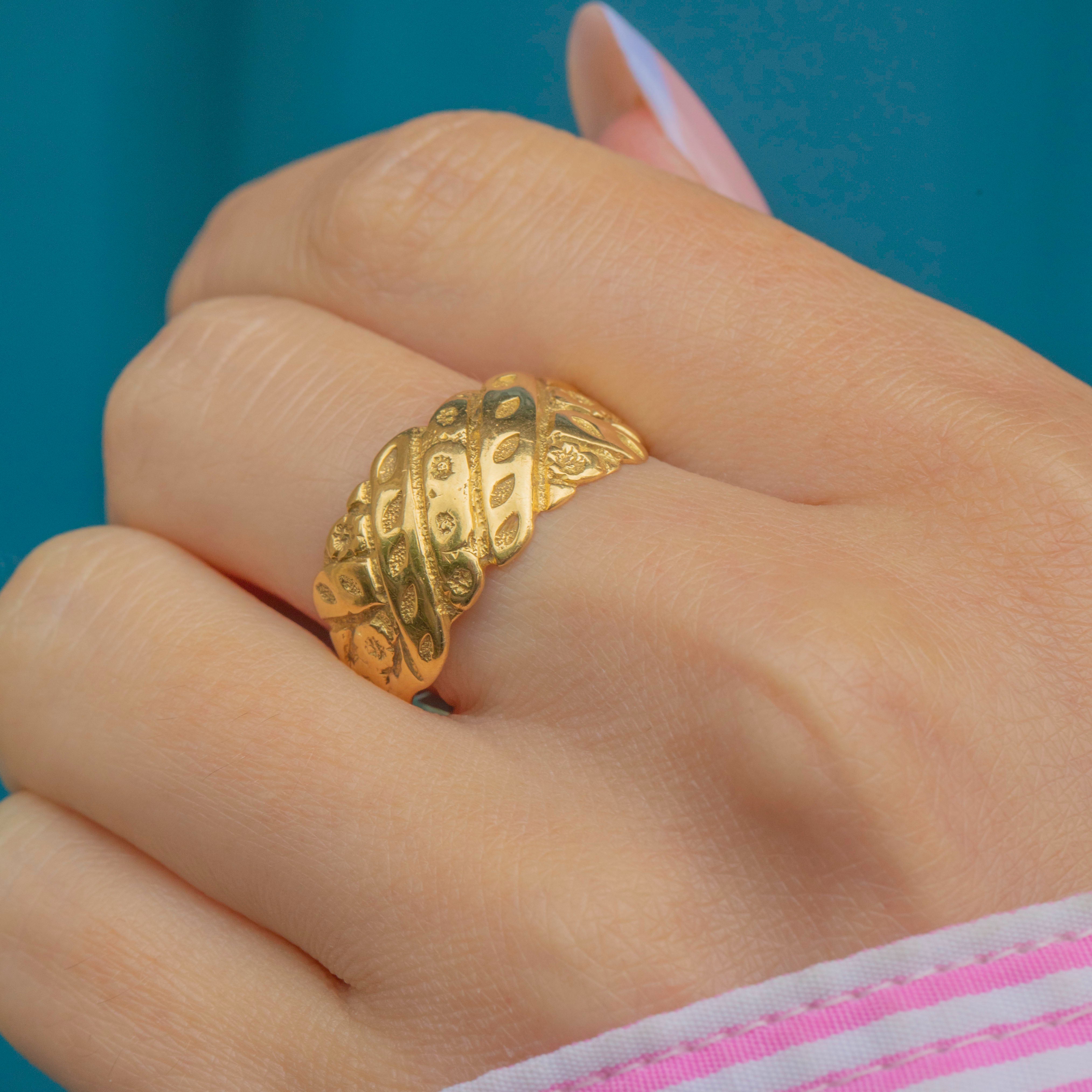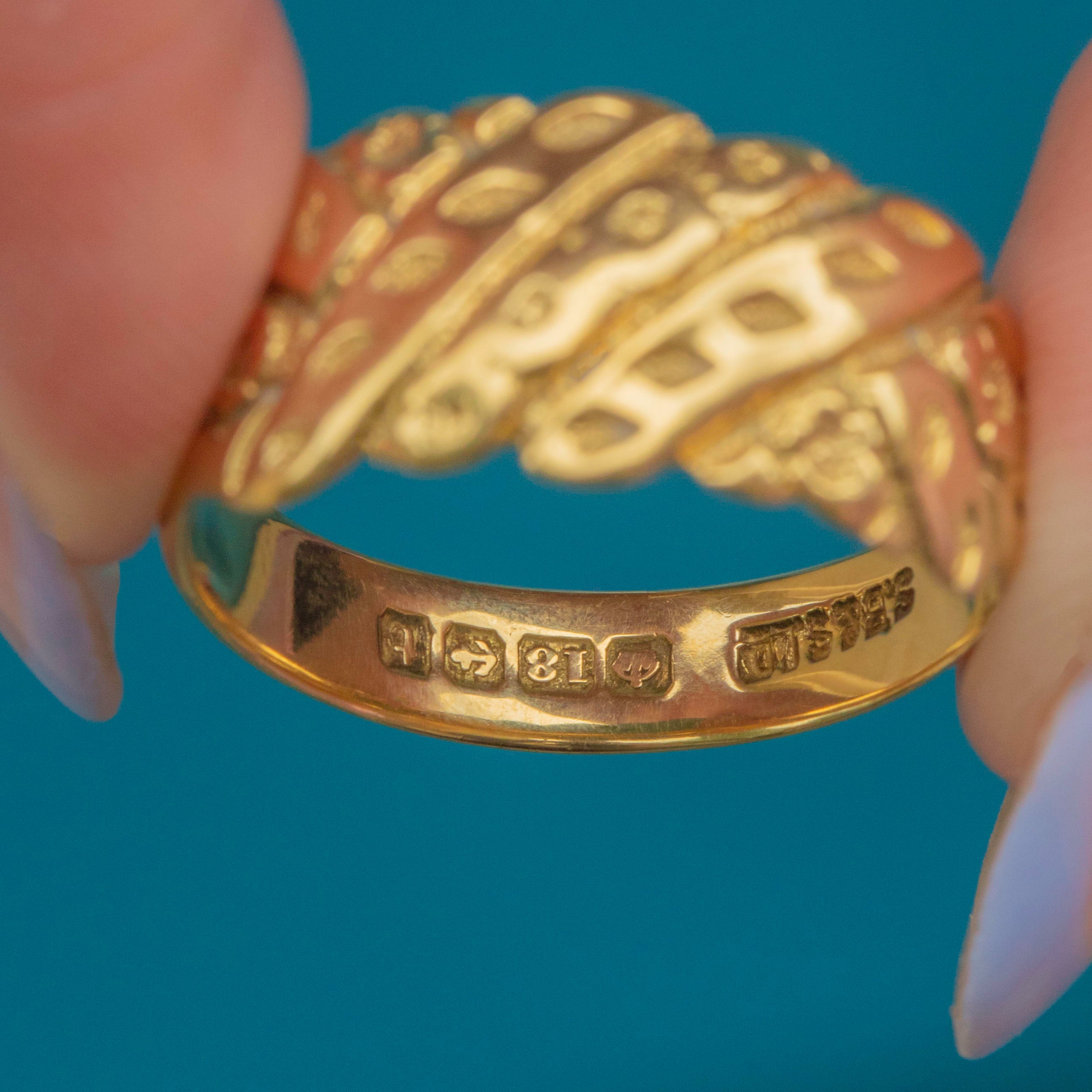 Chunky Antique 18ct Gold Floral Engraved Ring, c.1918