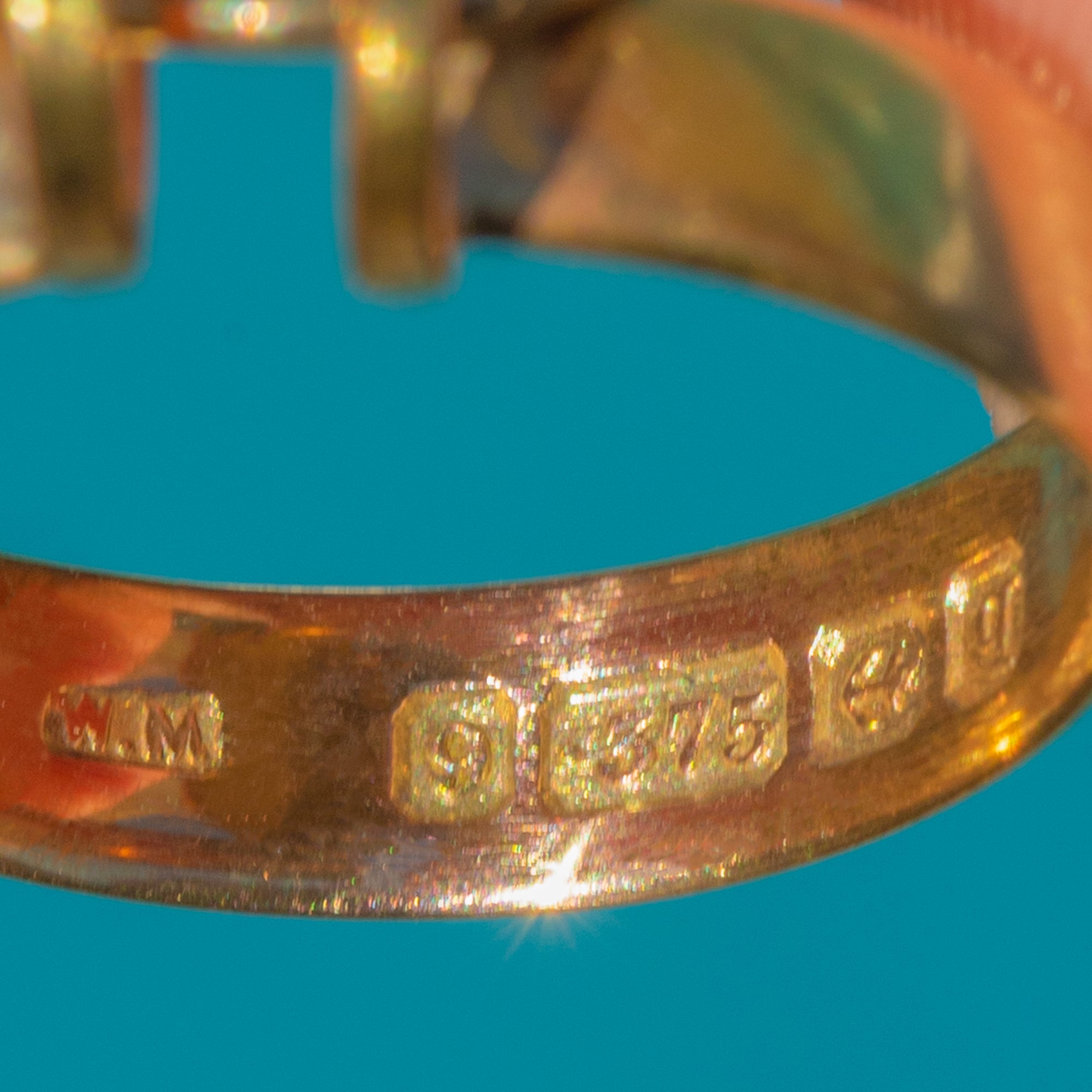 HALLMARKS: 9, .375, Birmingham Anchor, date letter “q” for 1915, maker’s mark WM.