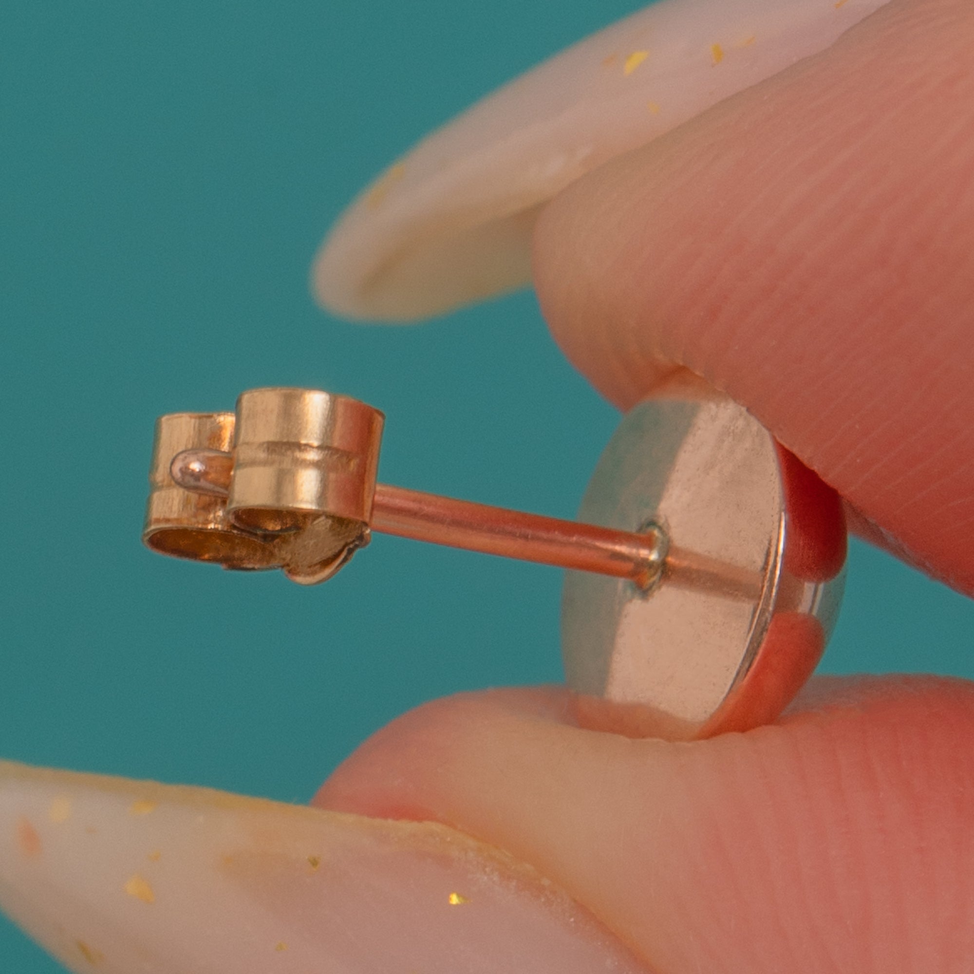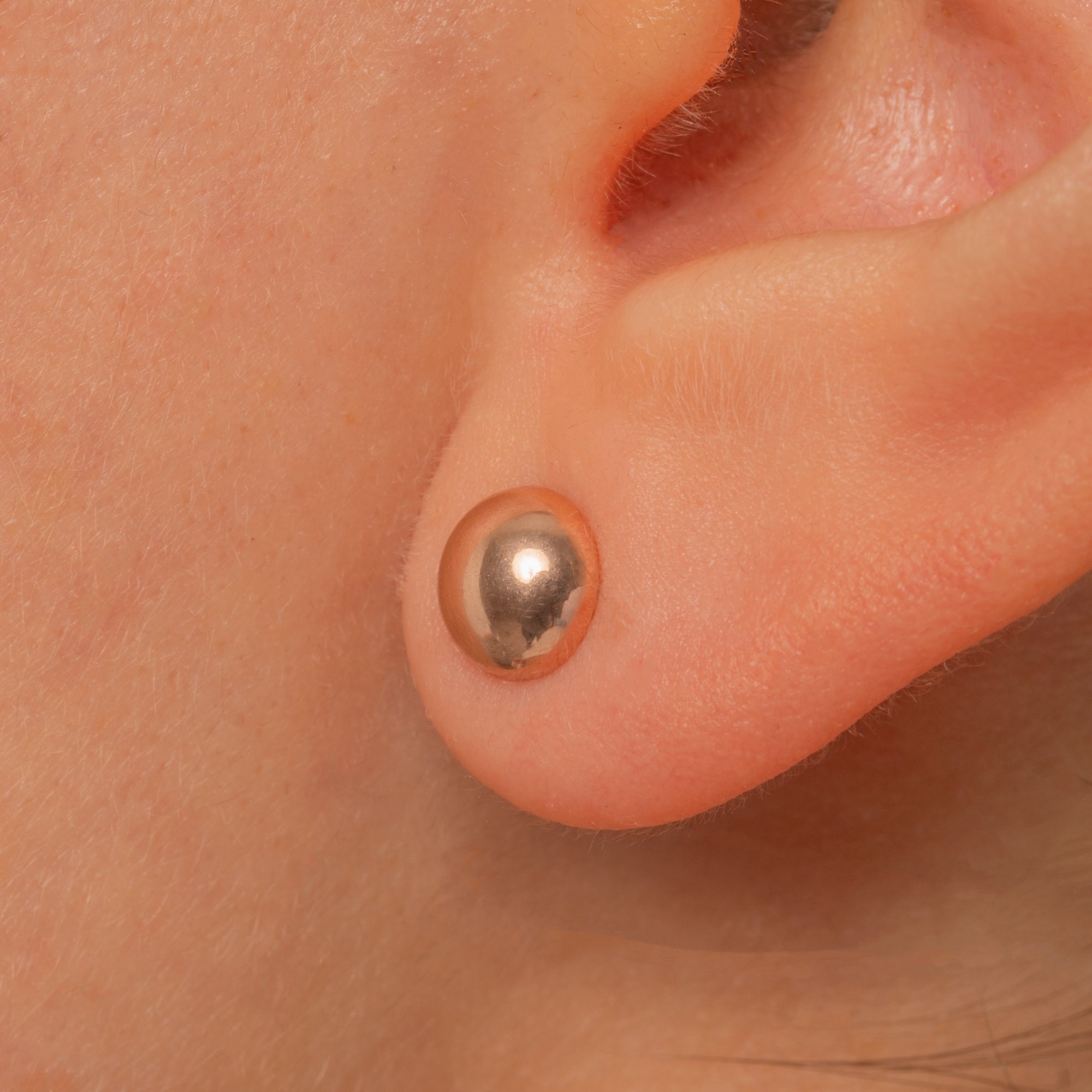 Understated and irresistibly classic, these vintage 9ct Rose Gold stud earrings are plump, softly domed buttons with a mirror-bright polish. Their smooth, minimalist silhouette captures the sleek elegance of mid-century design in a timeless, easy-to-wear form.