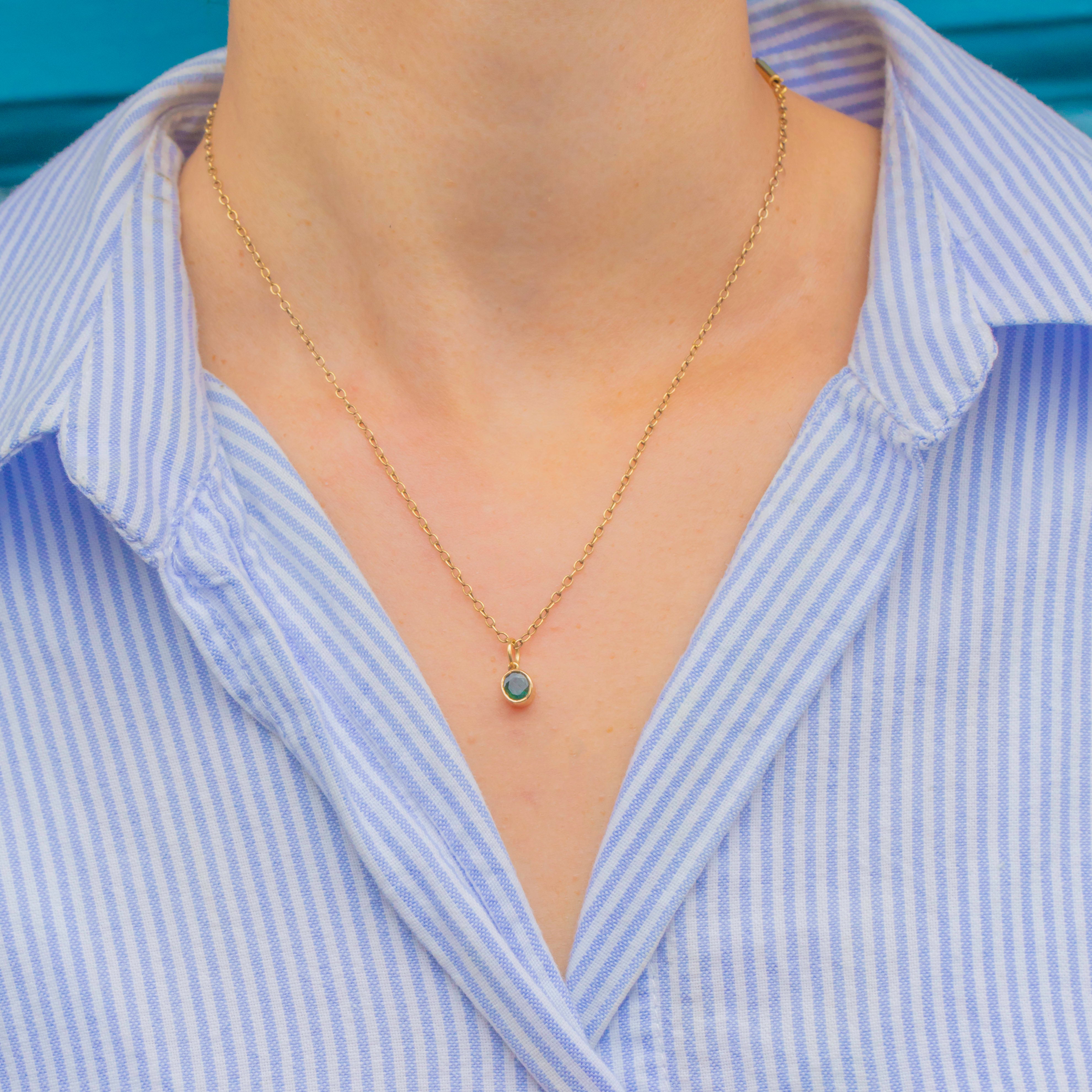 Dainty 14ct Gold Natural Teal Sapphire Charm