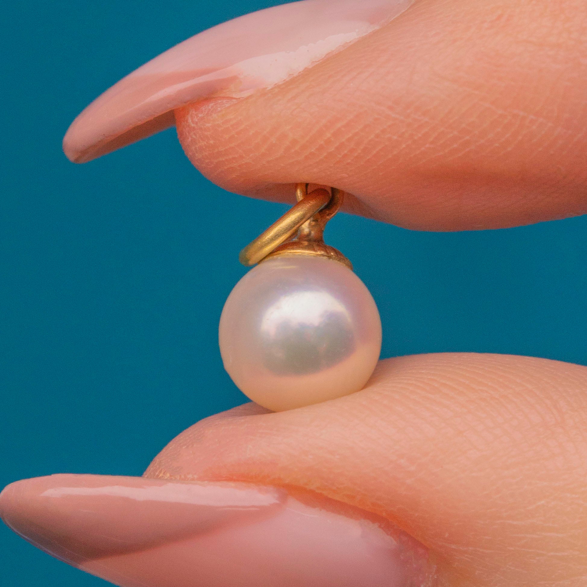 EXCELLENT. With very little to report, this dainty 15ct Gold Pearl charm is in pristine condition. Her Pearl has the most exuberant opalescent glow and is free from any chips or scuffs. Her 15ct Gold is luxurious and bright. All in all, the sweetest little dinky treat for your antique jewellery collection!