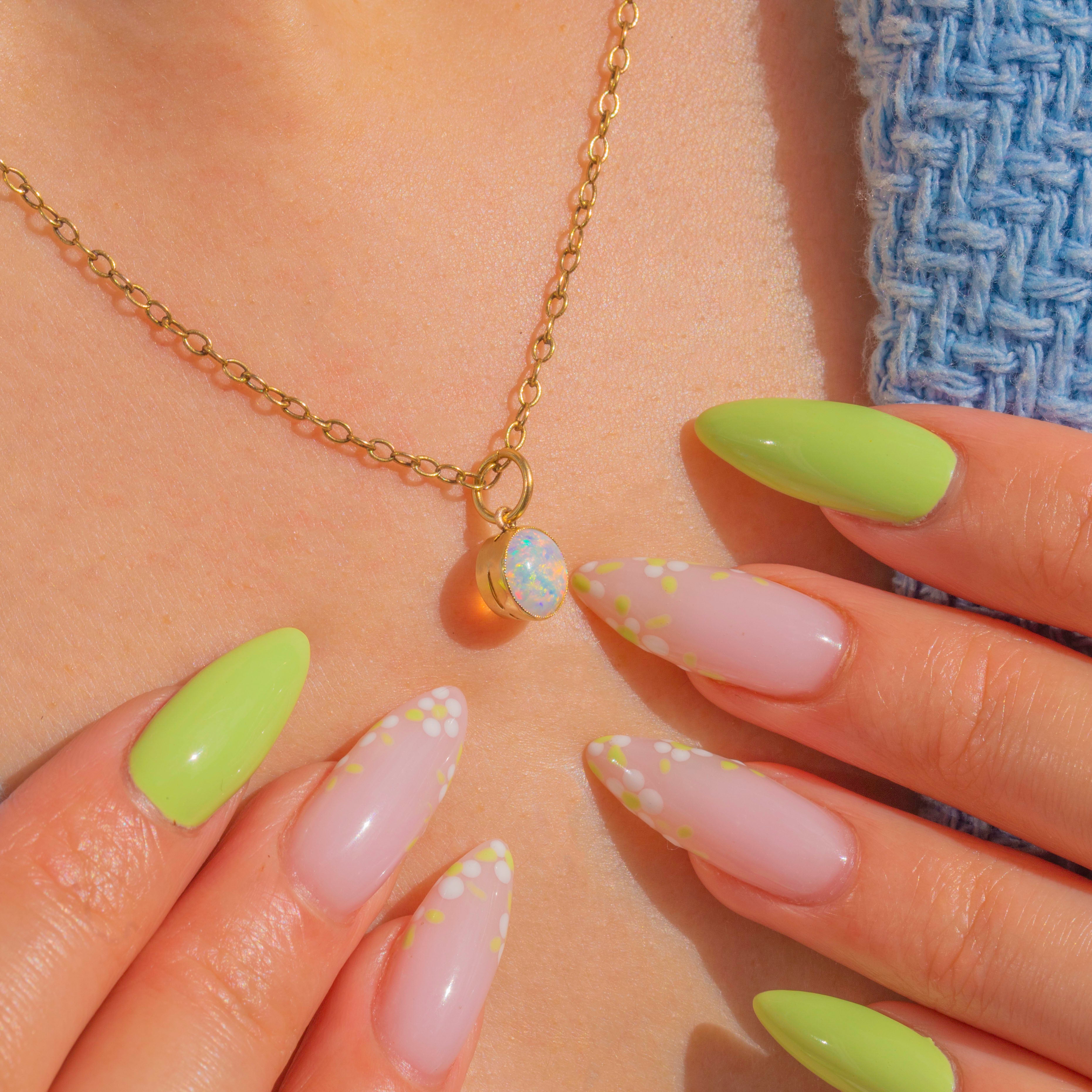 繊細な18ctゴールド ベゼルセッティング オパールチャーム