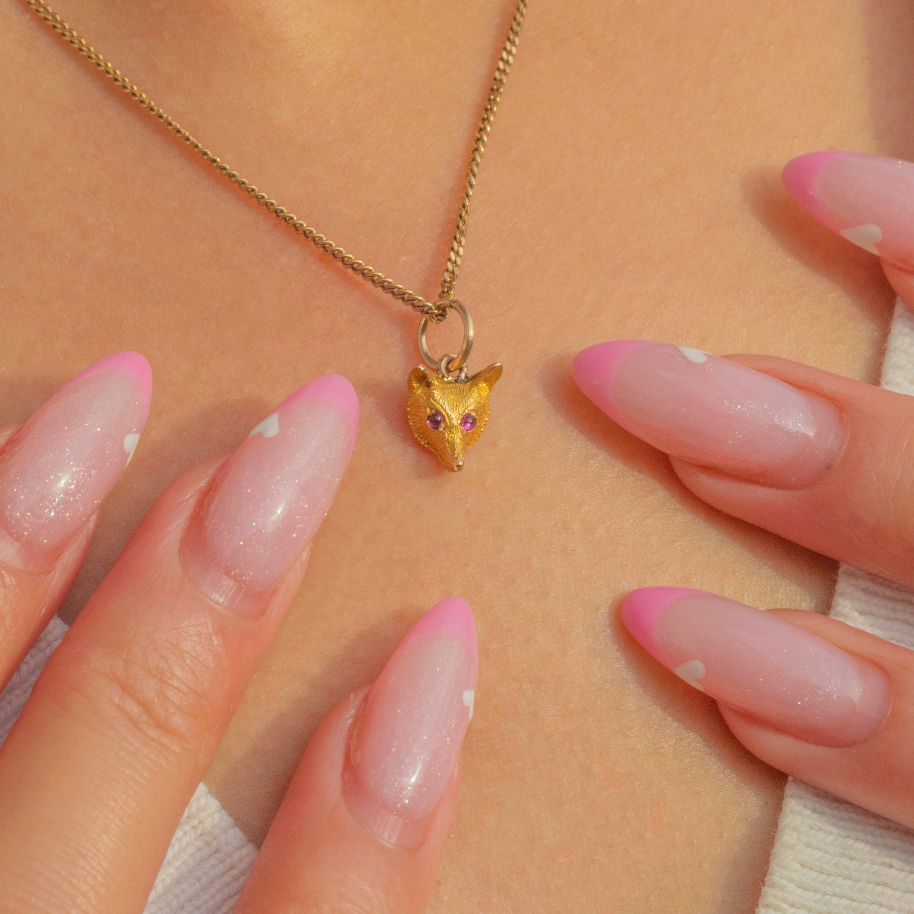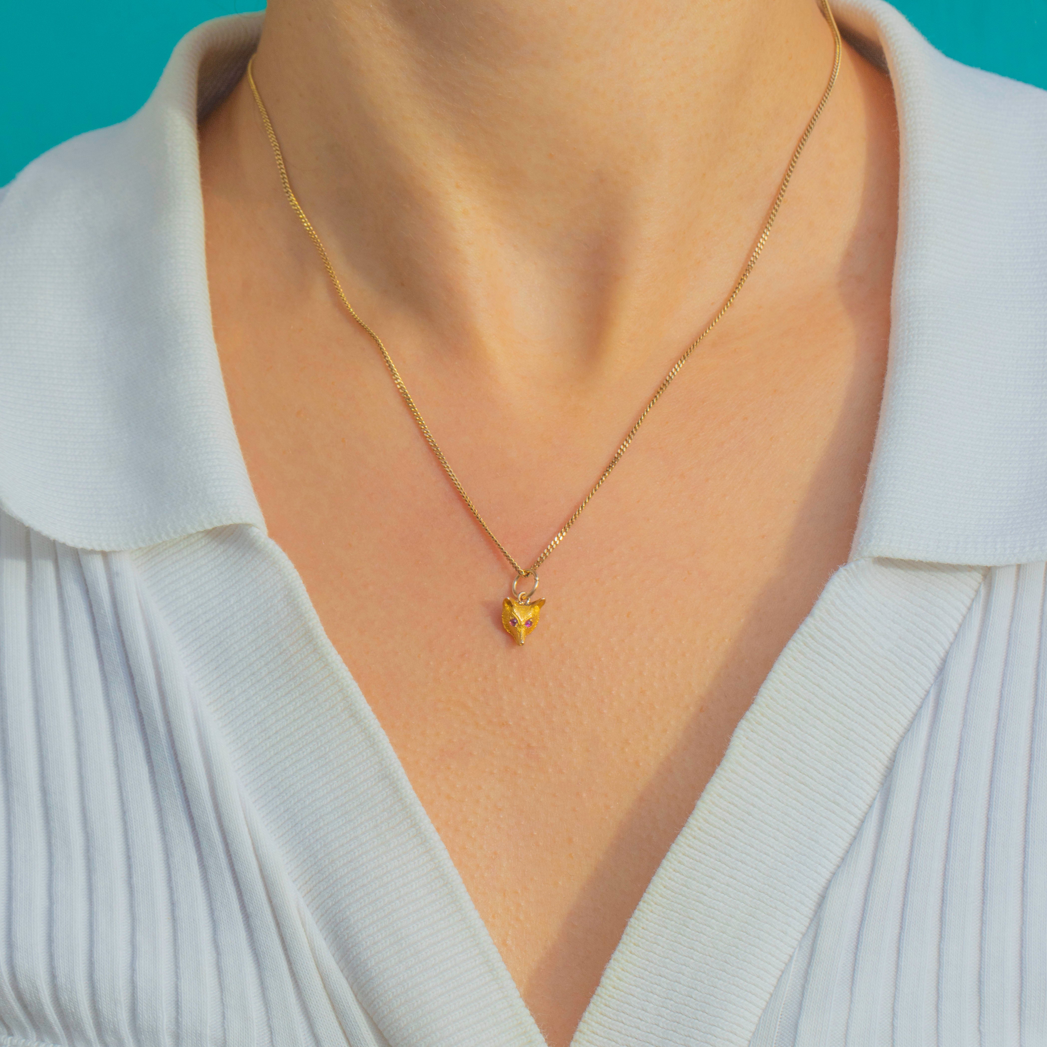 Dainty 18ct Gold Fox Charm, Ruby Eyes