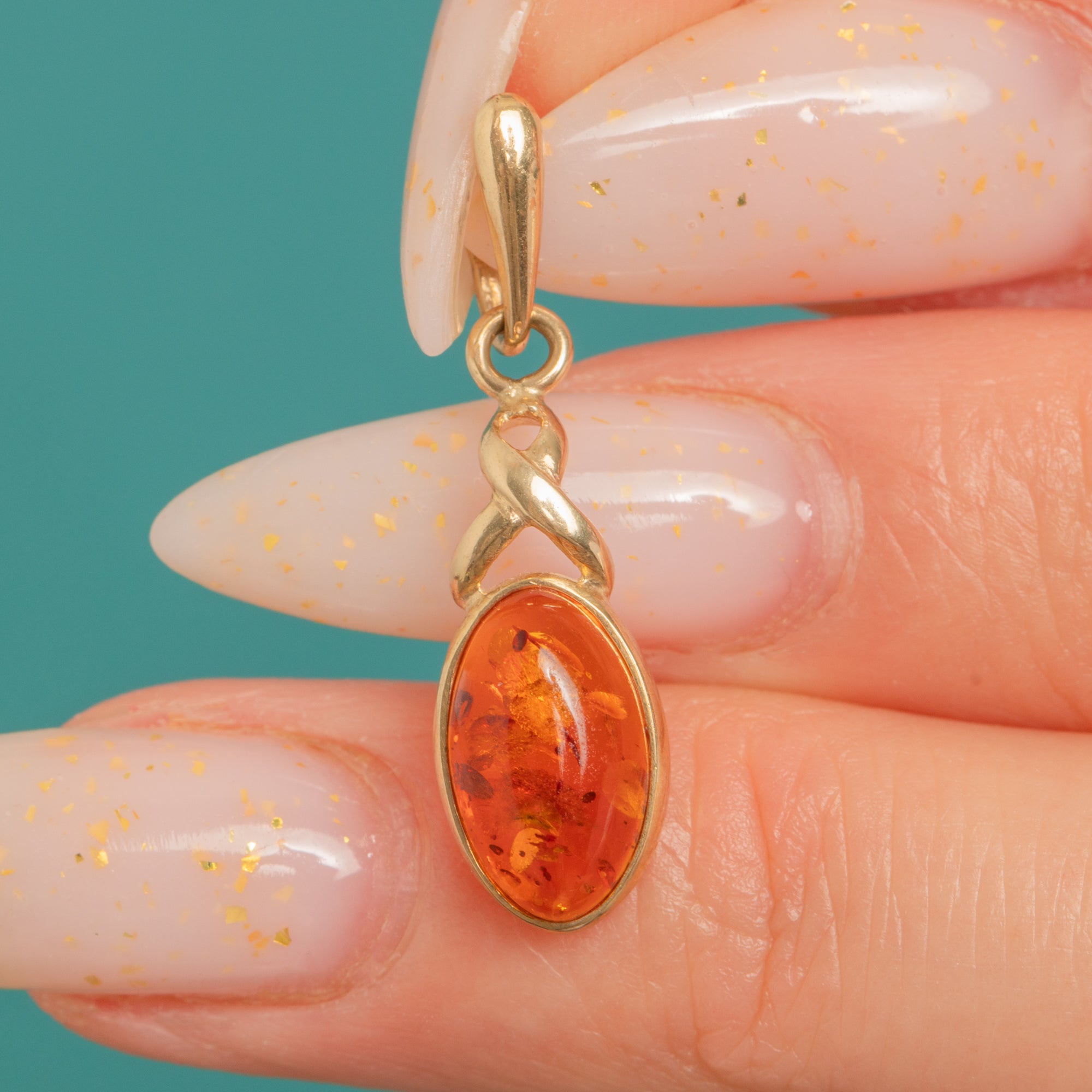 A dainty Vintage charm celebrating the warm glow of Amber, this petite drop showcases a honey‑orange oval cabochon cradled in a smooth 9ct Gold bezel. The cabochon’s gentle translucency and natural inclusions are beautifully highlighted by the simple droplet silhouette, with a neat tapered bale for effortless wear.