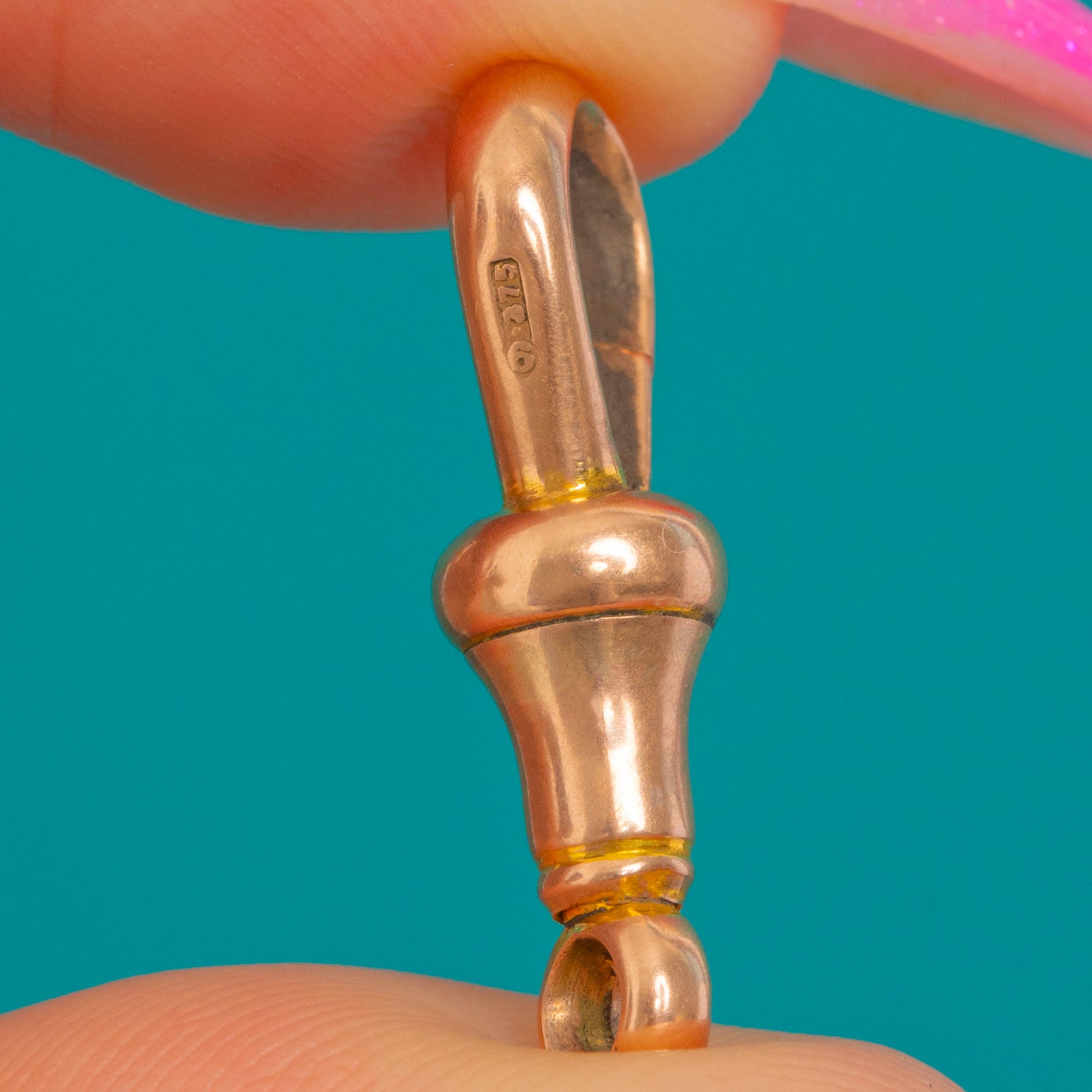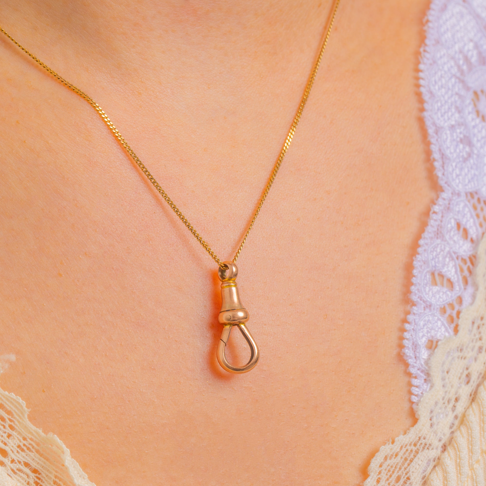 小ぶりながらも精巧に作られたこのアンティークのVictorian ドッグクリップ留め具は、温かみのある桃色がかった薔薇色の輝きを持つ、無垢の9金で仕立てられています。流れるような涙型の輪郭と磨き上げられた仕上げが、気品と実用性を見事に調和させ、お気に入りのチェーンを格調高く引き立て、チャームやロケット、フォブを優雅に、しっかりと飾ることができます。