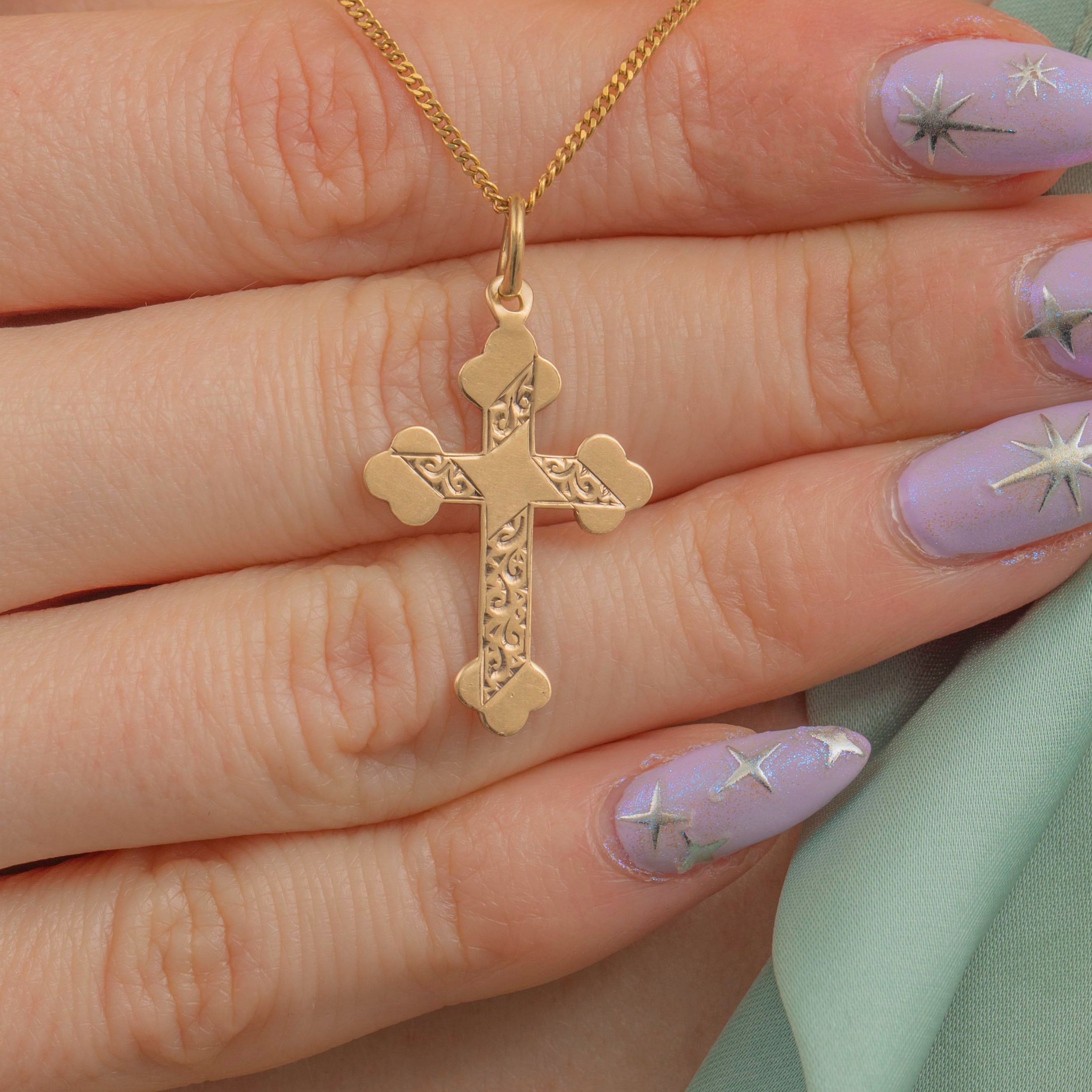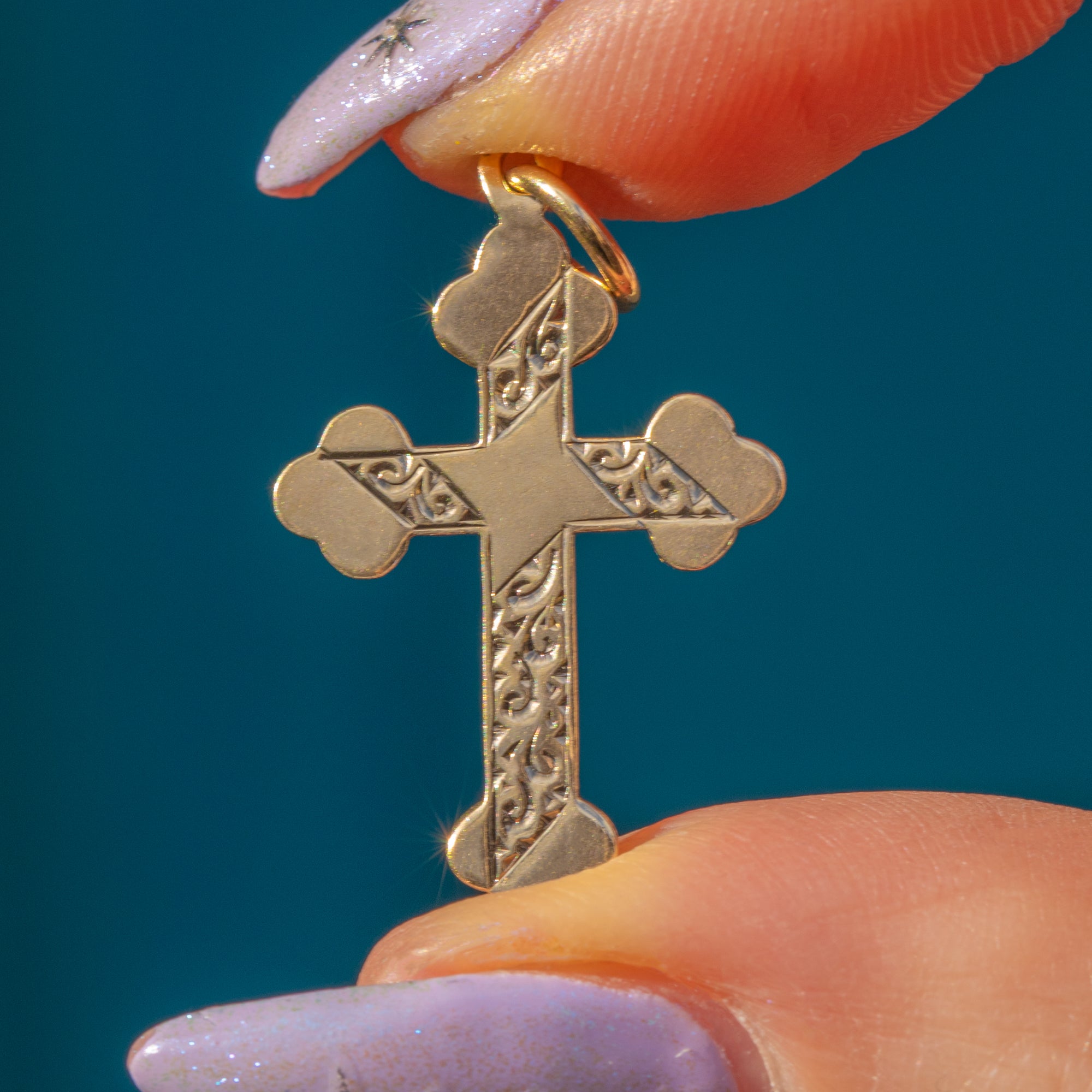 EXCELLENT: This antique 9ct Gold engraved cross pendant is in excellent condition. The Gold is bright and the engraved details have remained crisp with no signs of wear, and is fully hallmarked to 1979. You can enjoy this 9ct Gold cross pendant for years to come!