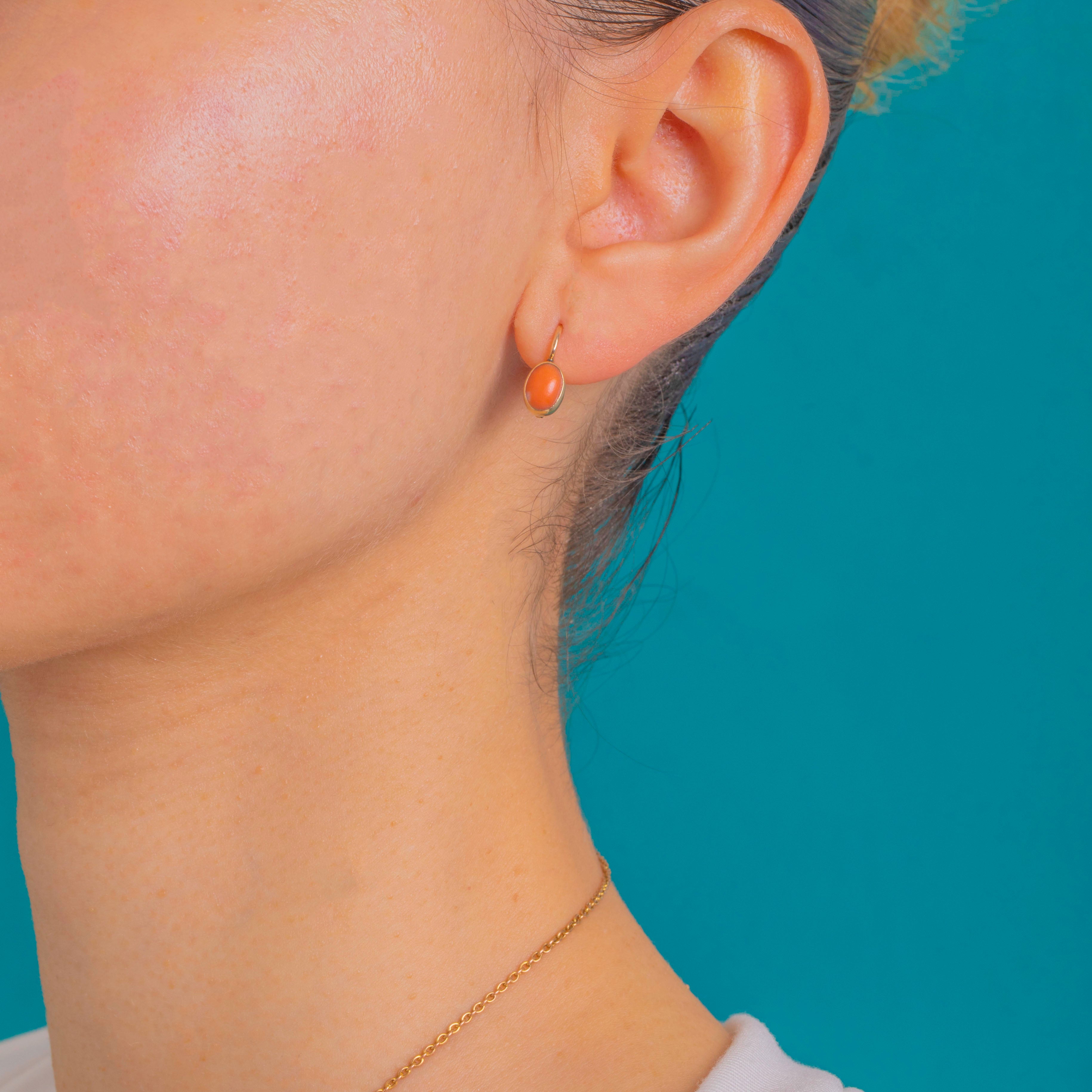 小ぶりで時代を超えた美しさを持つこちらのVictorianドロップイヤリングは、艶やかなオーバル型のコーラルカボションを、洗練された14ctゴールドのベゼルで縁取っています。カボションは滑らかでドーム状のプロファイルを持ち、光を美しく反射します。細身のレバーバック金具により、繊細で揺れるような動きをお楽しみいただけます。