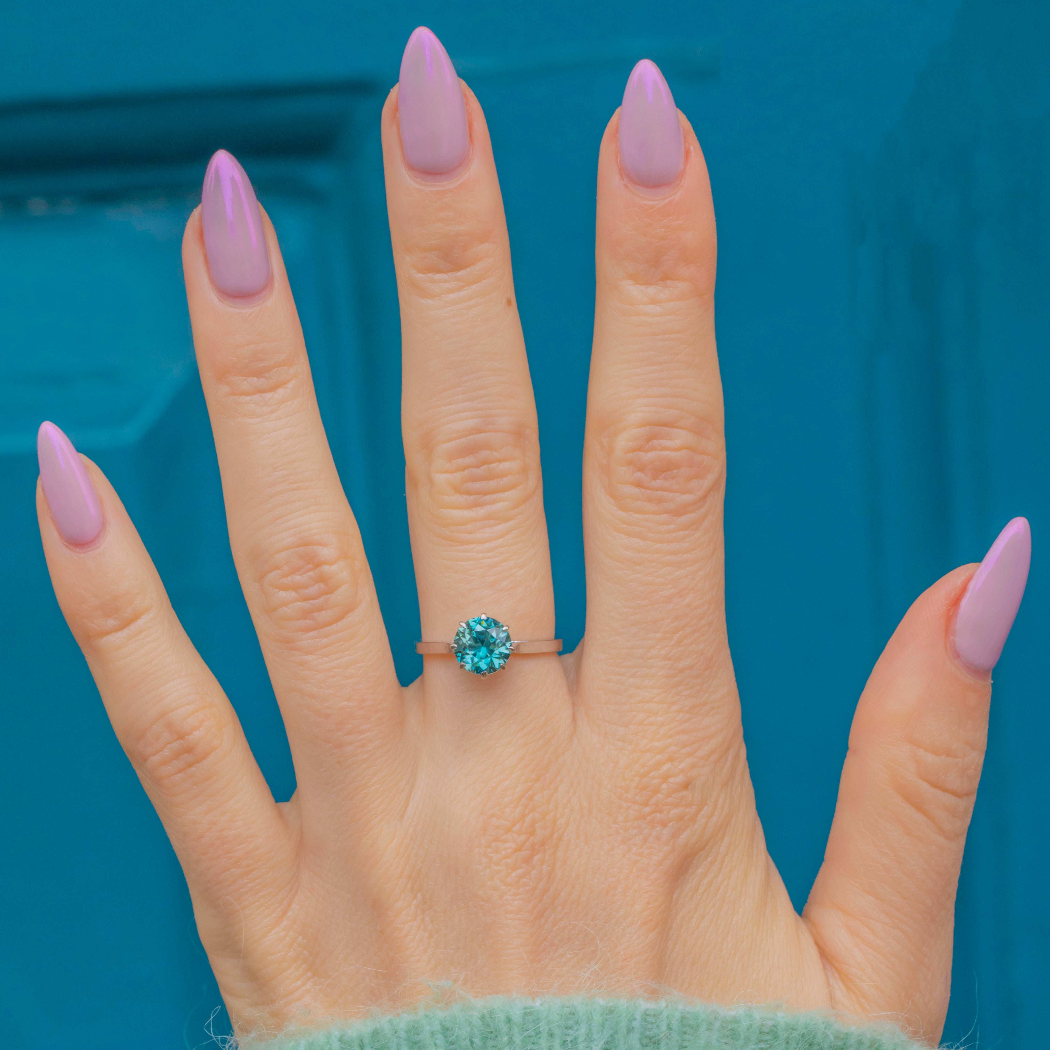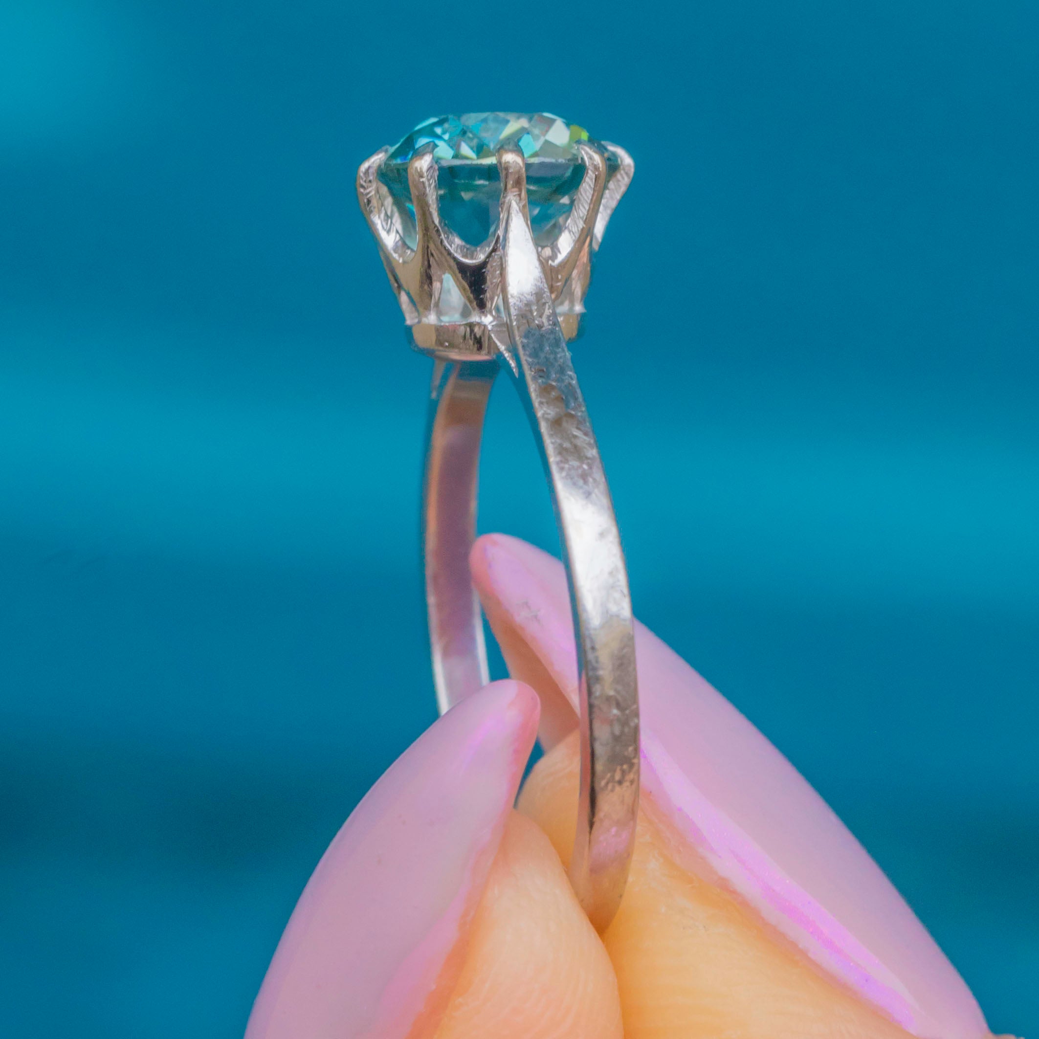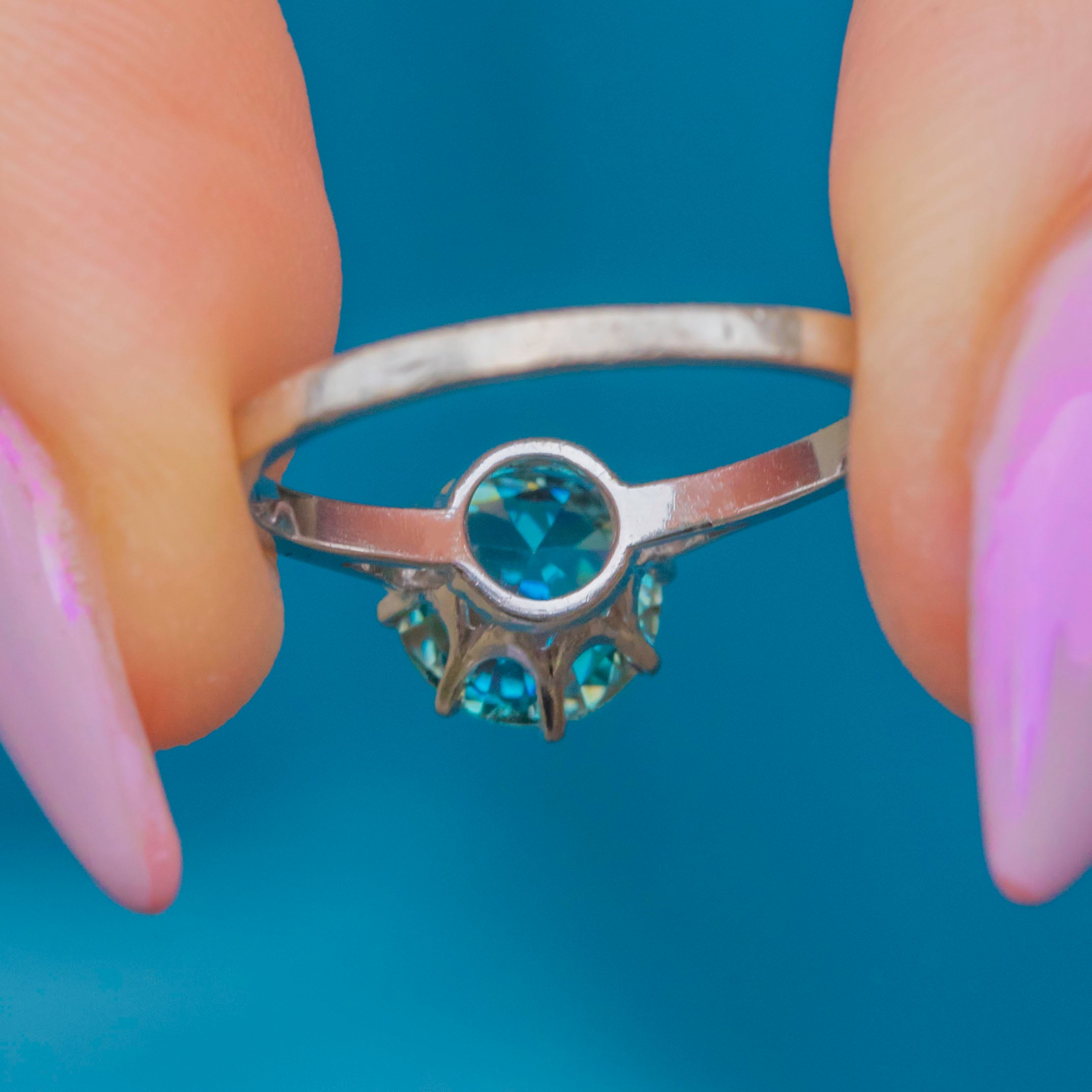 This elegant Art Deco ring is crafted in solid 18ct White Gold and set with a vivid blue 1.00ct Zircon, prized for its dazzling brilliance and rich colour. The Zircon’s radiant sparkle and cool hue are beautifully complemented by the sleek simplicity of the White Gold mount — an effortlessly sophisticated design from the 1930s.