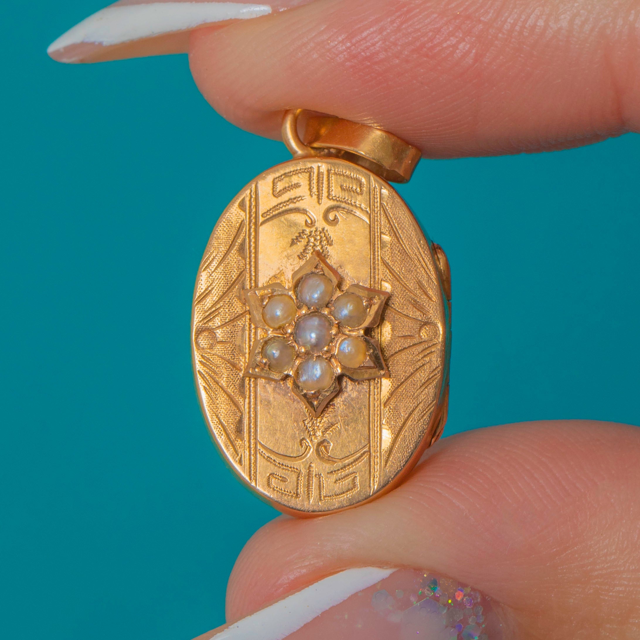 繊細なフランス製18ctゴールド パール フラワー ロケット