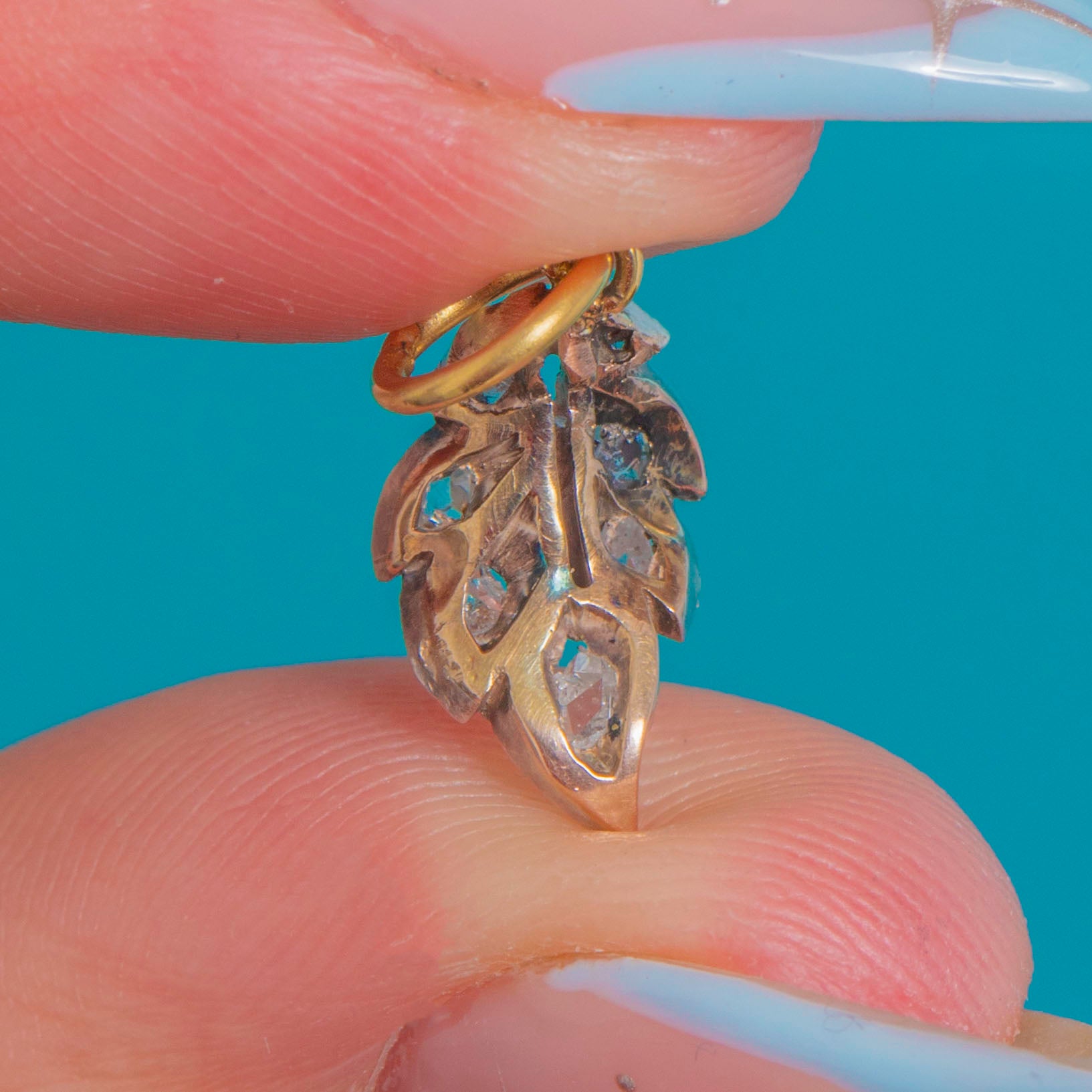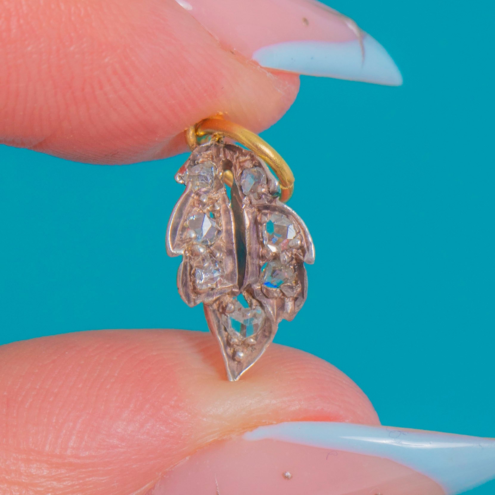 Dainty Rose-Cut Diamond Leaf Charm