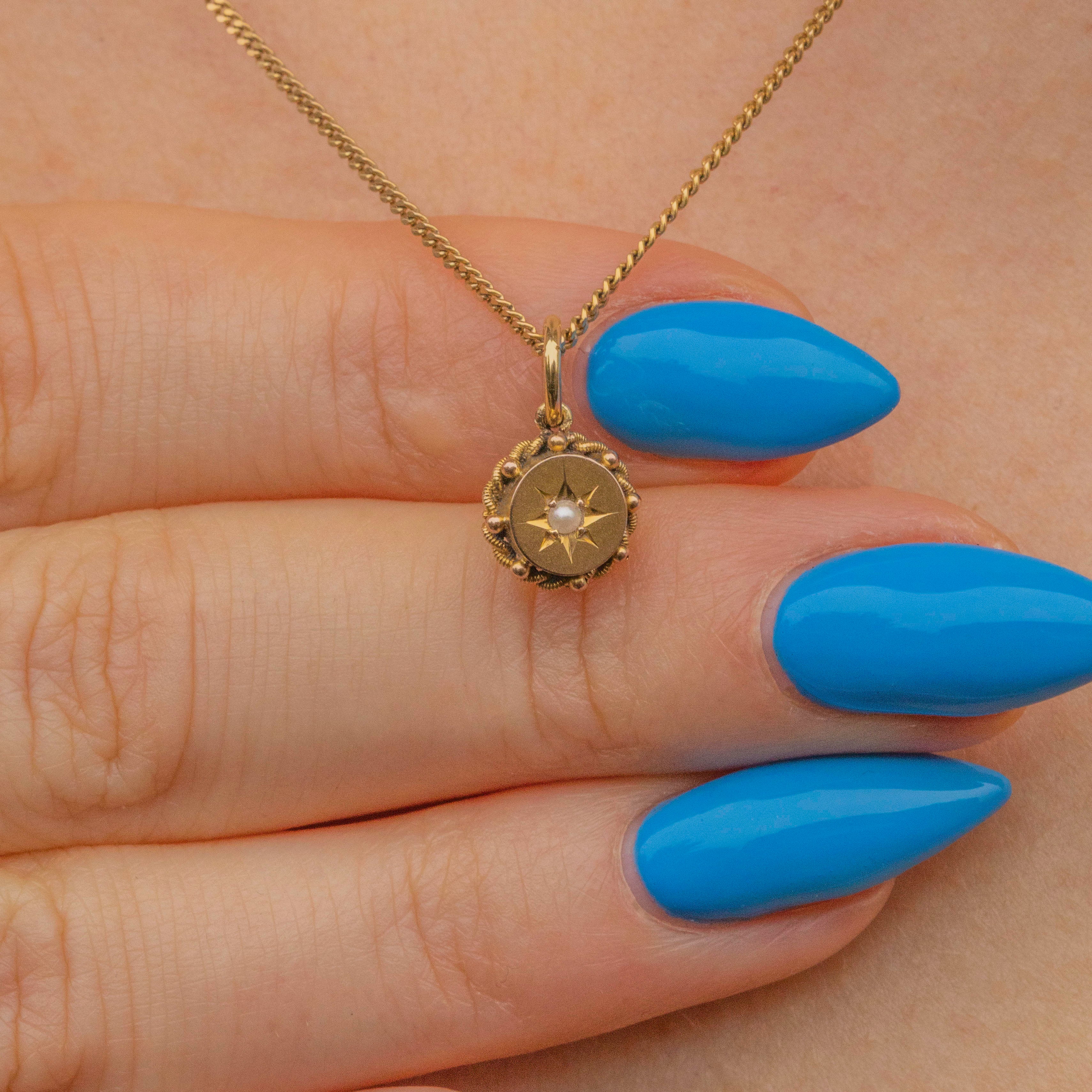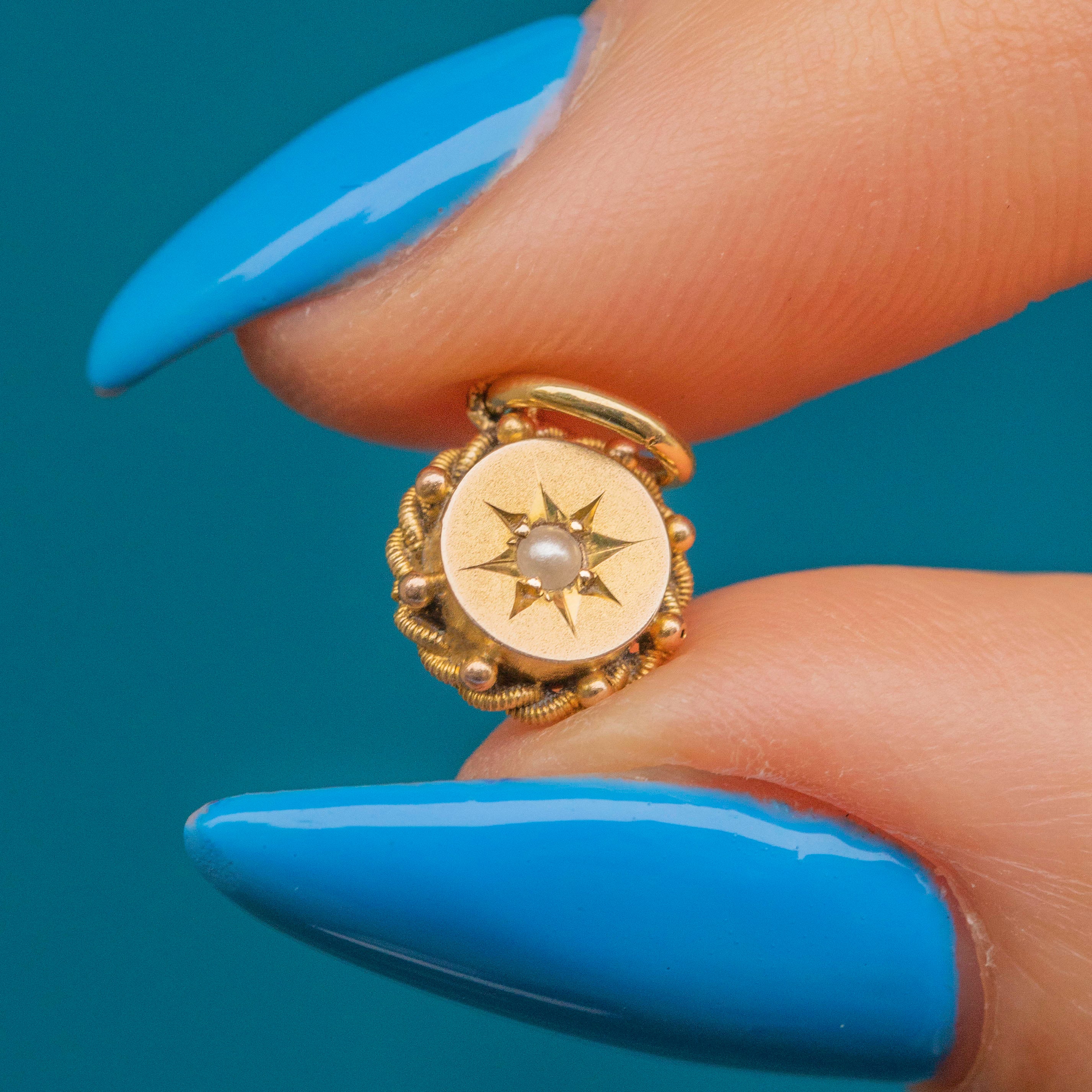 EXCELLENT. This dainty Victorian 9ct Gold Pearl star-set charm is in excellent condition. Her iridescent Pearl reflects the light beautifully, sitting securely within her warm, saturated 9ct Gold setting. This Victorian charm is free from any visible signs of wear and, paired with her secure jump ring, would look wonderful suspended from a fine chain.