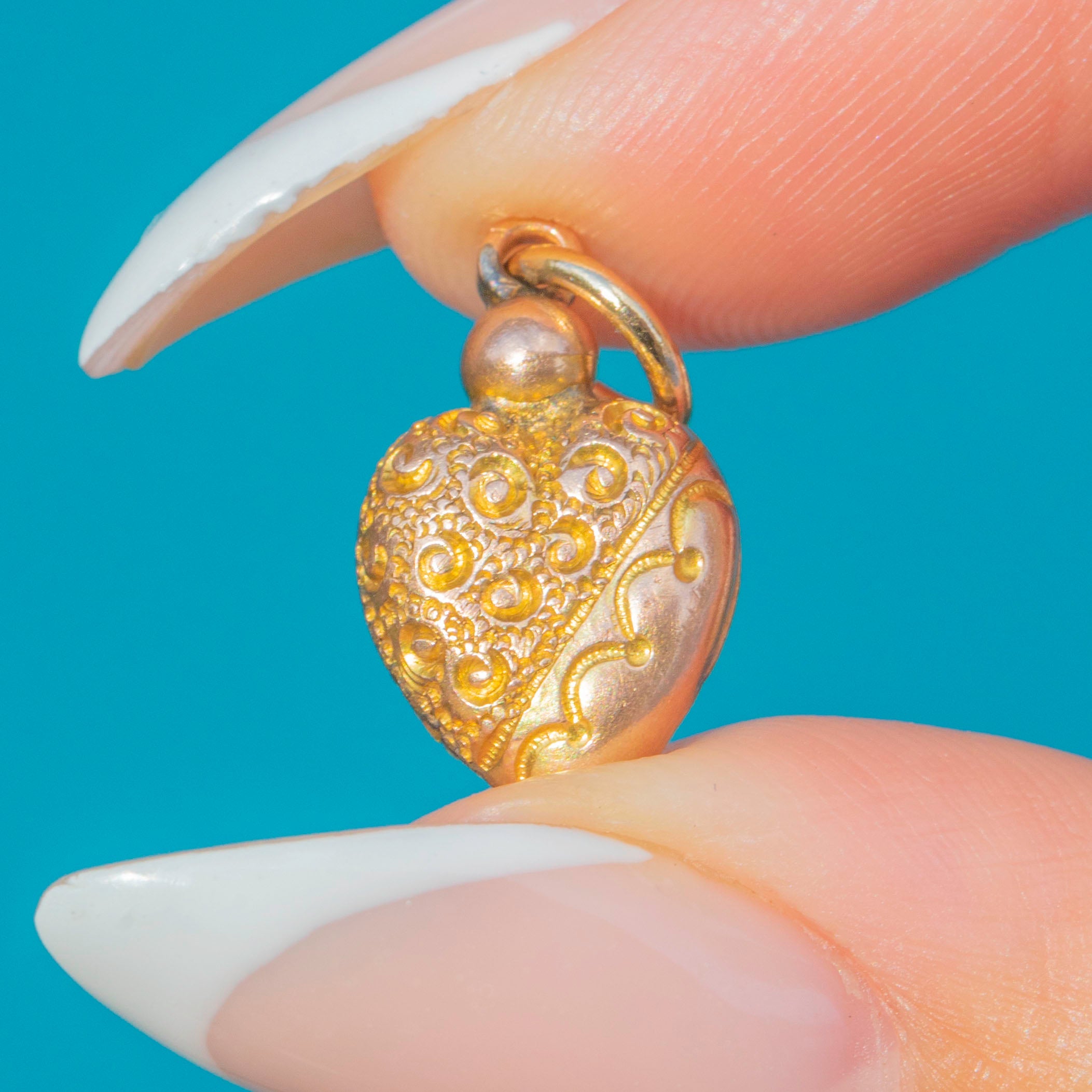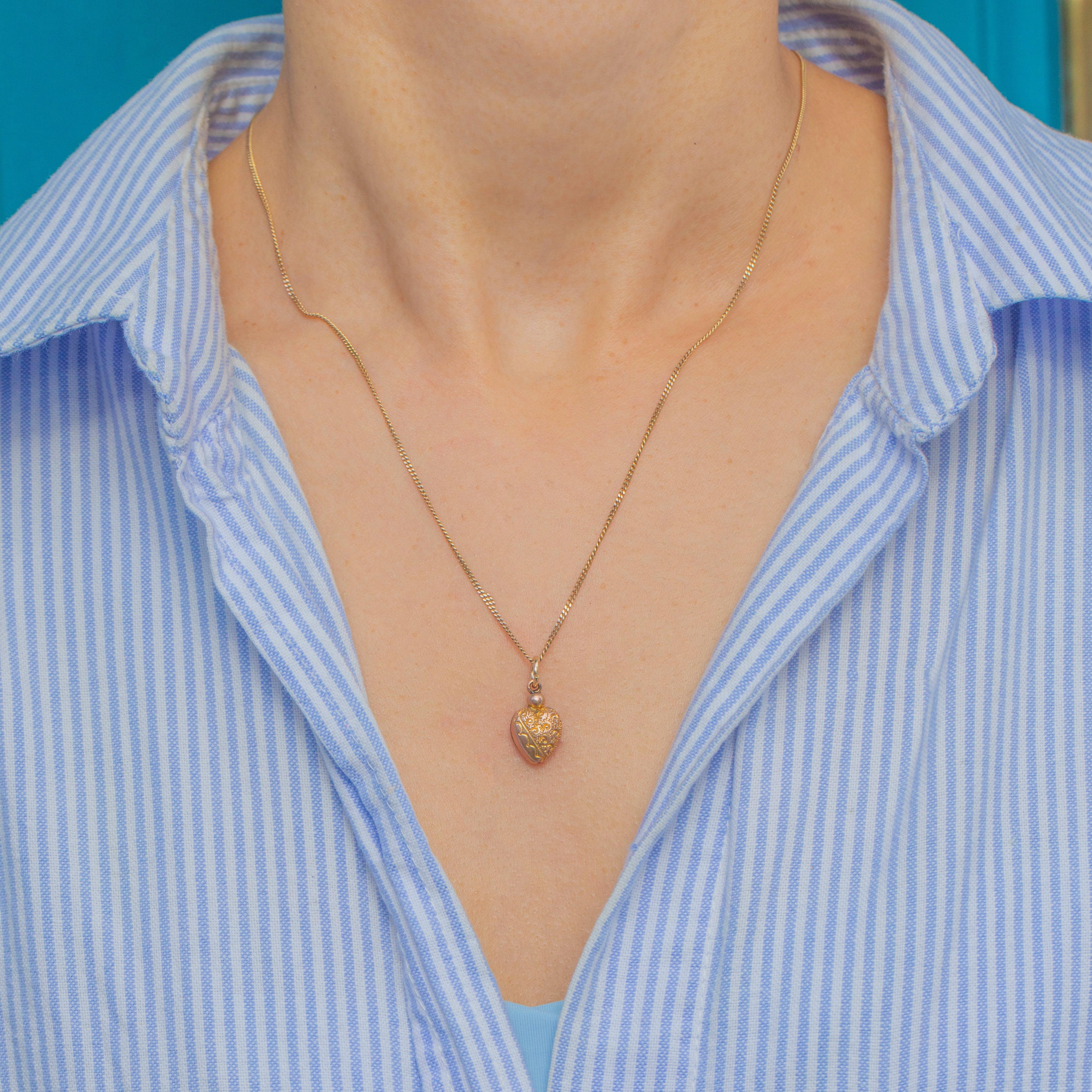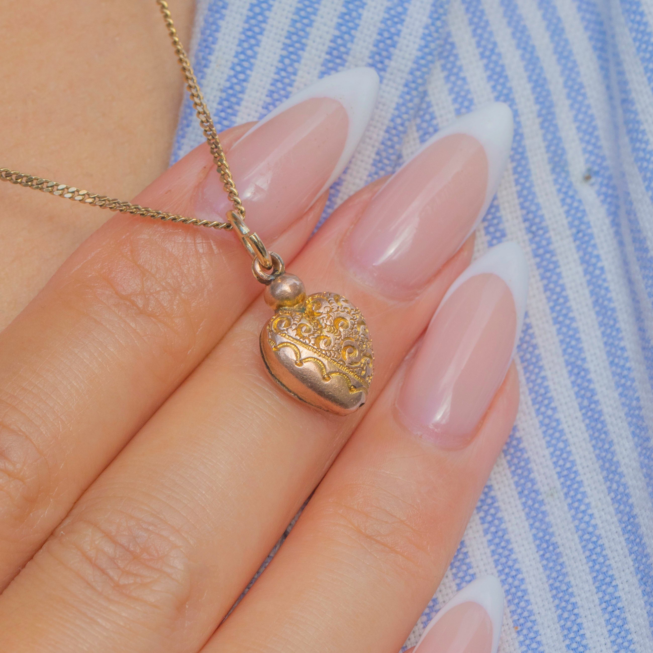 繊細な Victorian 9ct ゴールド レポッセ ハート ペンダント