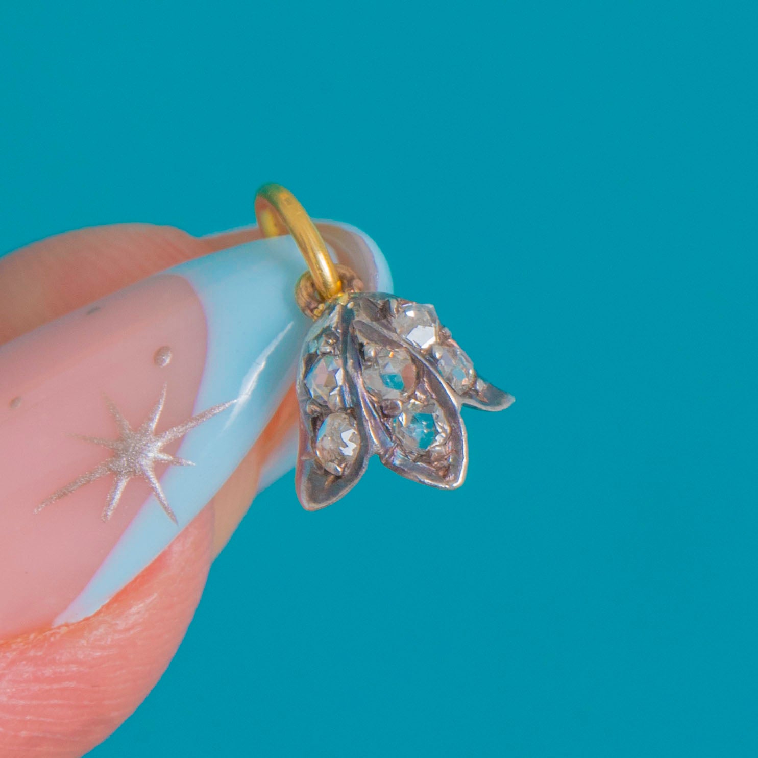 Dainty Victorian Rose-Cut Diamond Flower Charm