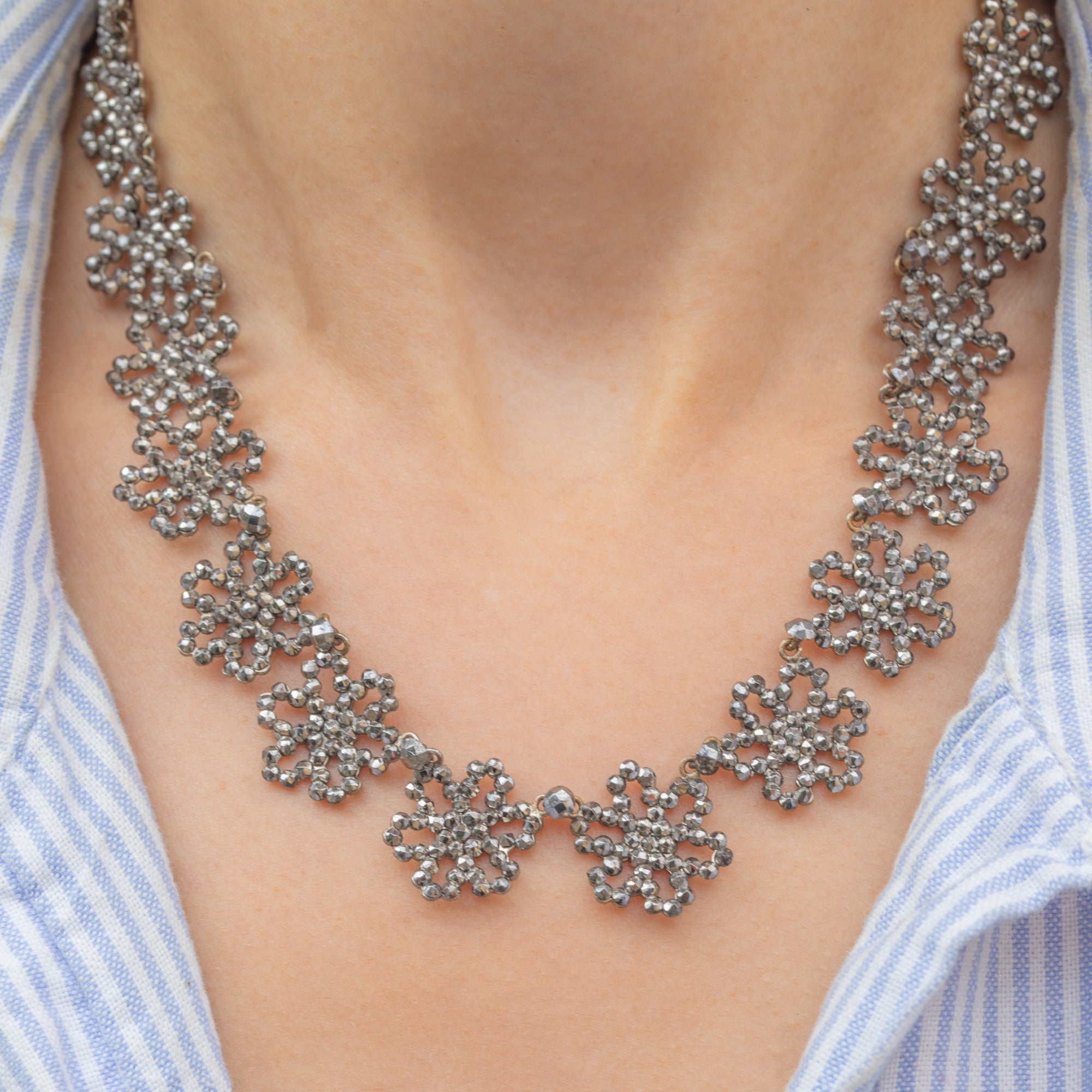 Early 19th Century Georgian Cut Steel Flower Riviere Necklace