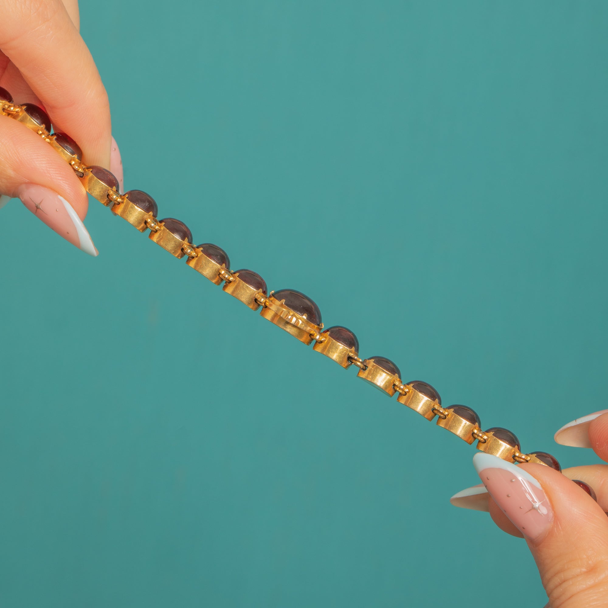 Early Victorian 18ct Gold Garnet Cabochon Bracelet c.1840-1850